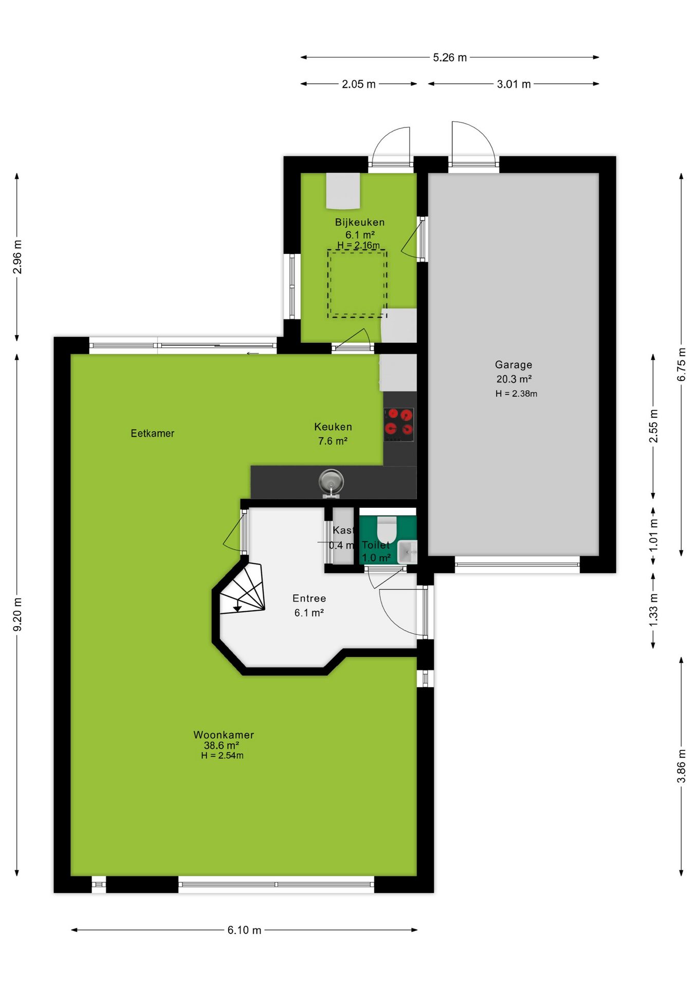 - Garage met voorgelegen eigen oprit