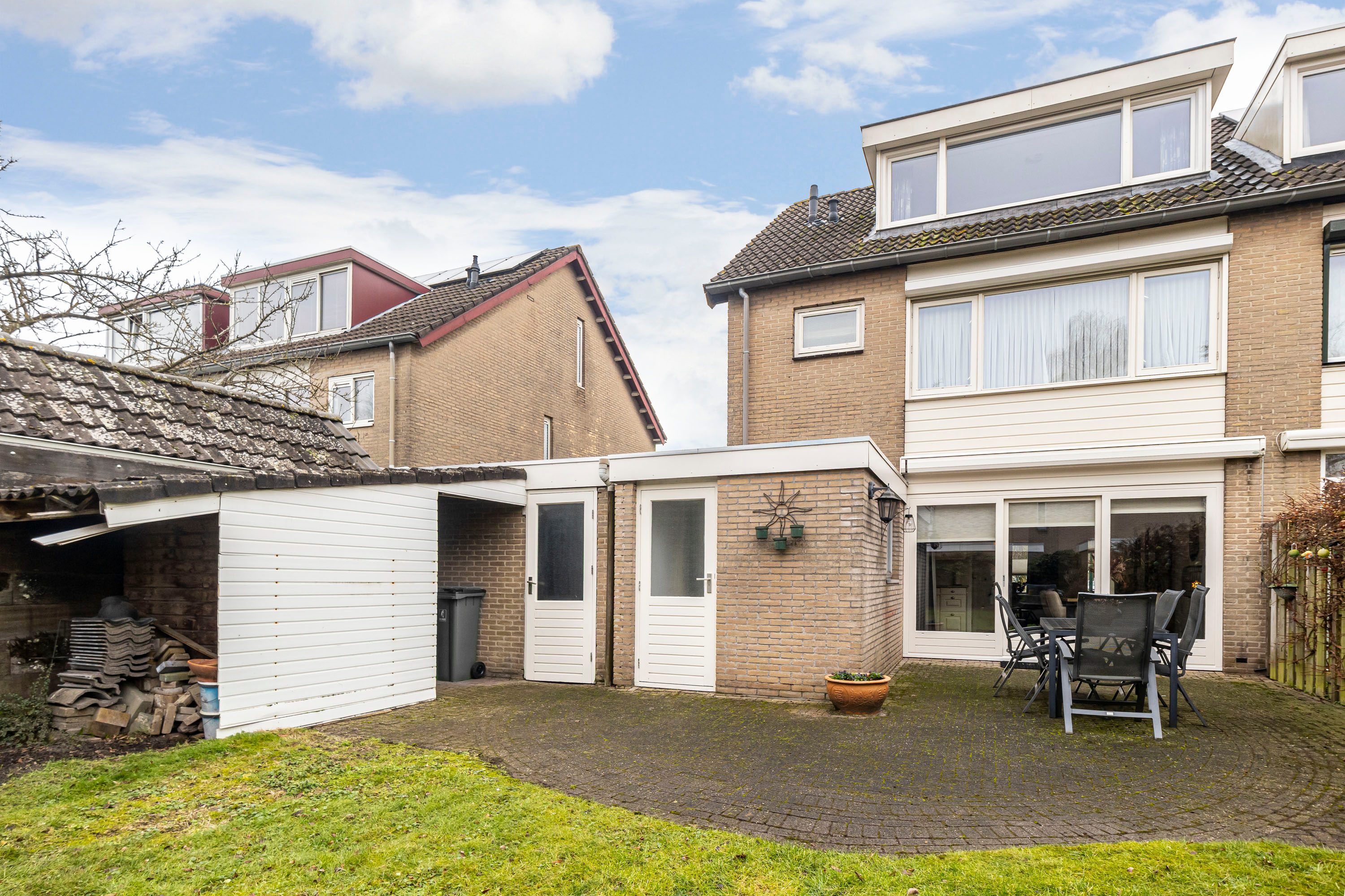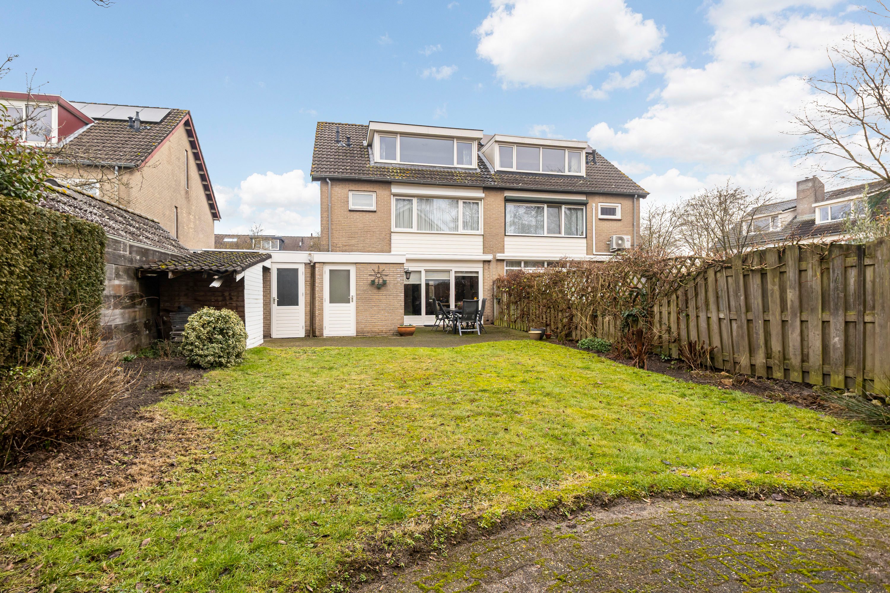 De diepe en zonnige achtertuin, welke op het westen gelegen is, biedt volop mogelijkheden voor meerdere zithoekjes en een fijne speelplek voor kinderen. Vanuit de tuin is de garage van 20,3 m² bereikbaar, ideaal voor het stallen van fietsen of extra opslag. Daarnaast is er een aangebouwde berging, perfect voor tuingereedschap en containers.