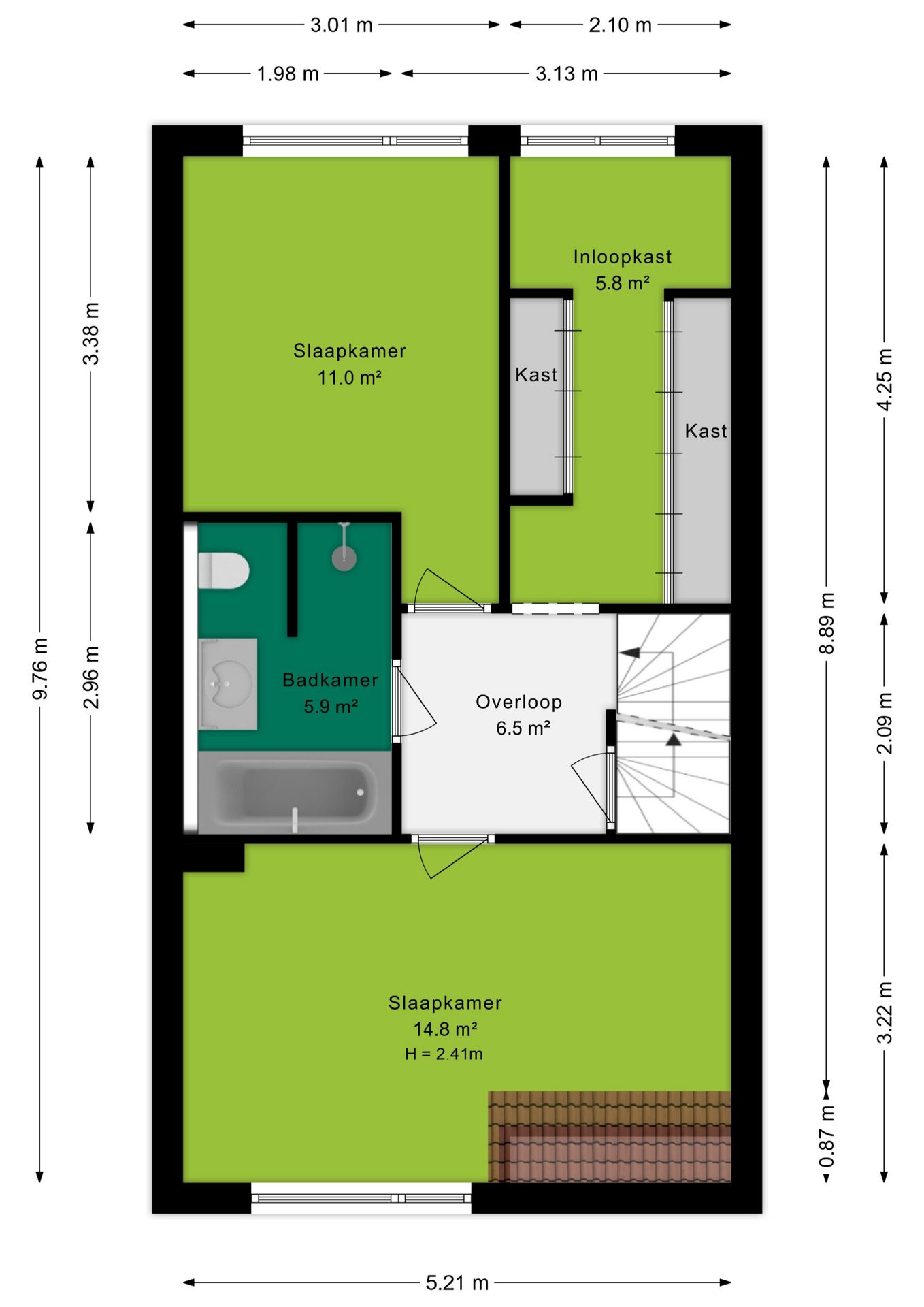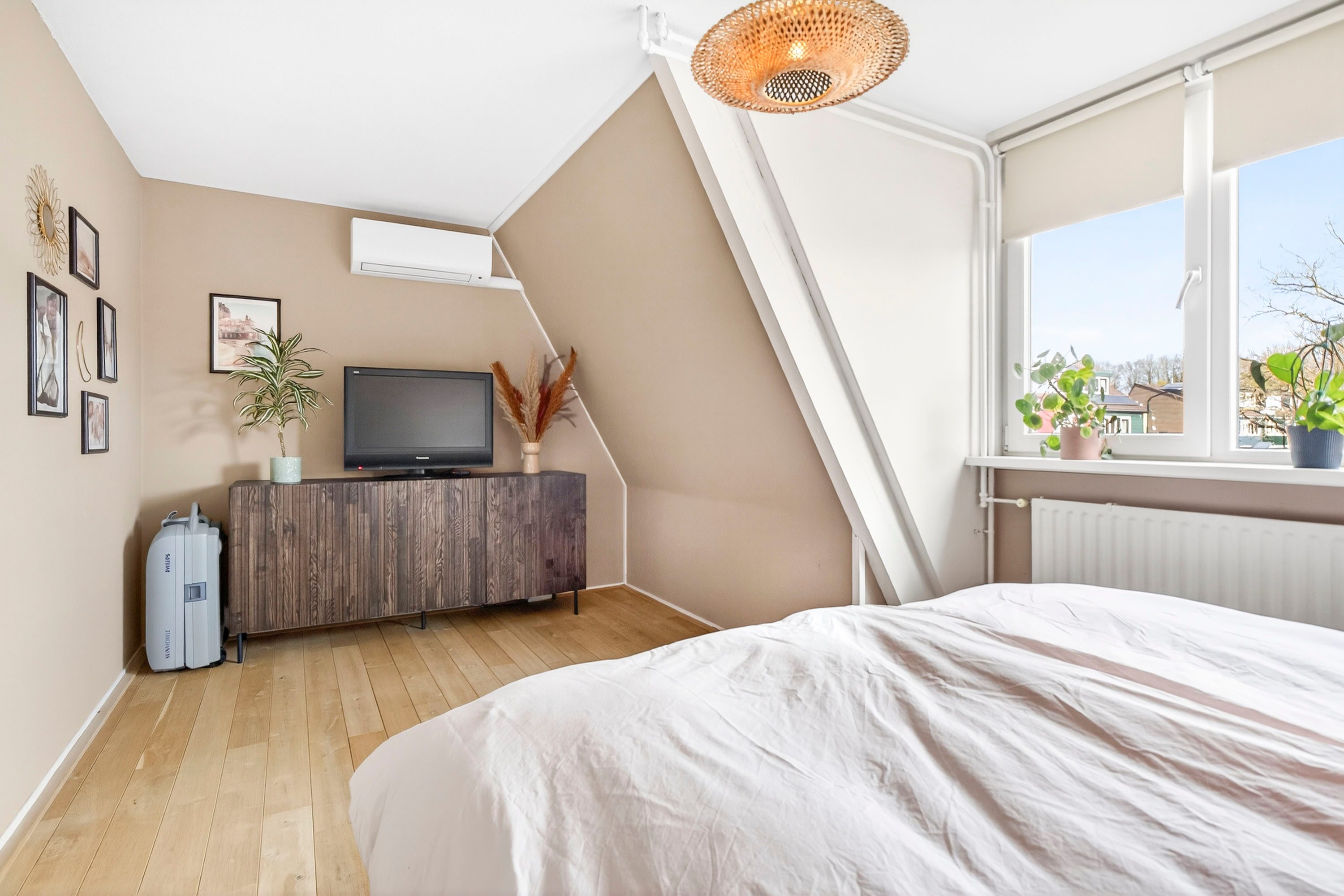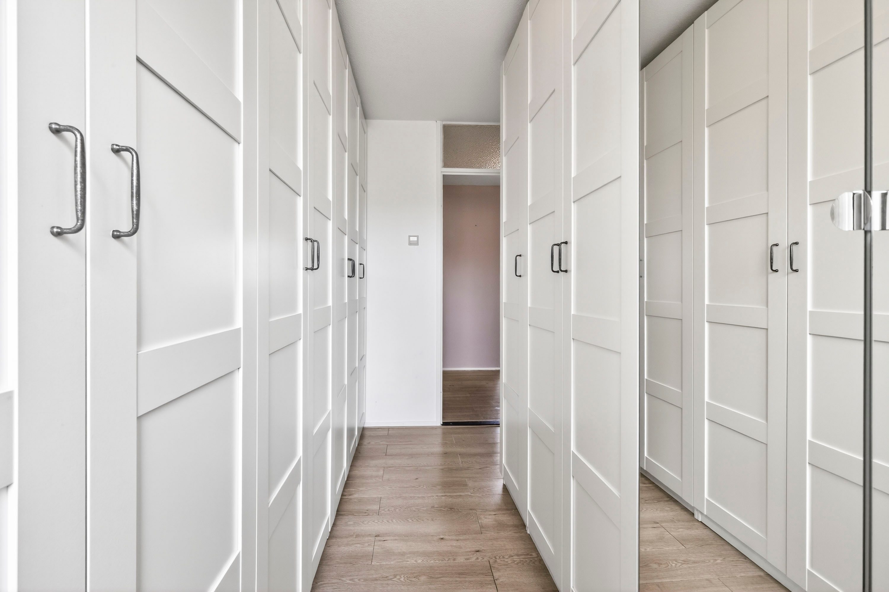 Op de eerste verdieping is de indeling slim aangepast voor maximaal comfort. De hoofdslaapkamer aan de voorzijde is ruim en sfeervol. Wat deze kamer echt bijzonder maakt, is de directe toegang tot de luxe walk-in closet. Deze is voorzien van vaste kastenwanden, waardoor al je kleding en schoenen een eigen plek krijgen. Aan de achterzijde ligt de tweede slaapkamer, een lichte ruimte die perfect te gebruiken is als kinder- of werkkamer.