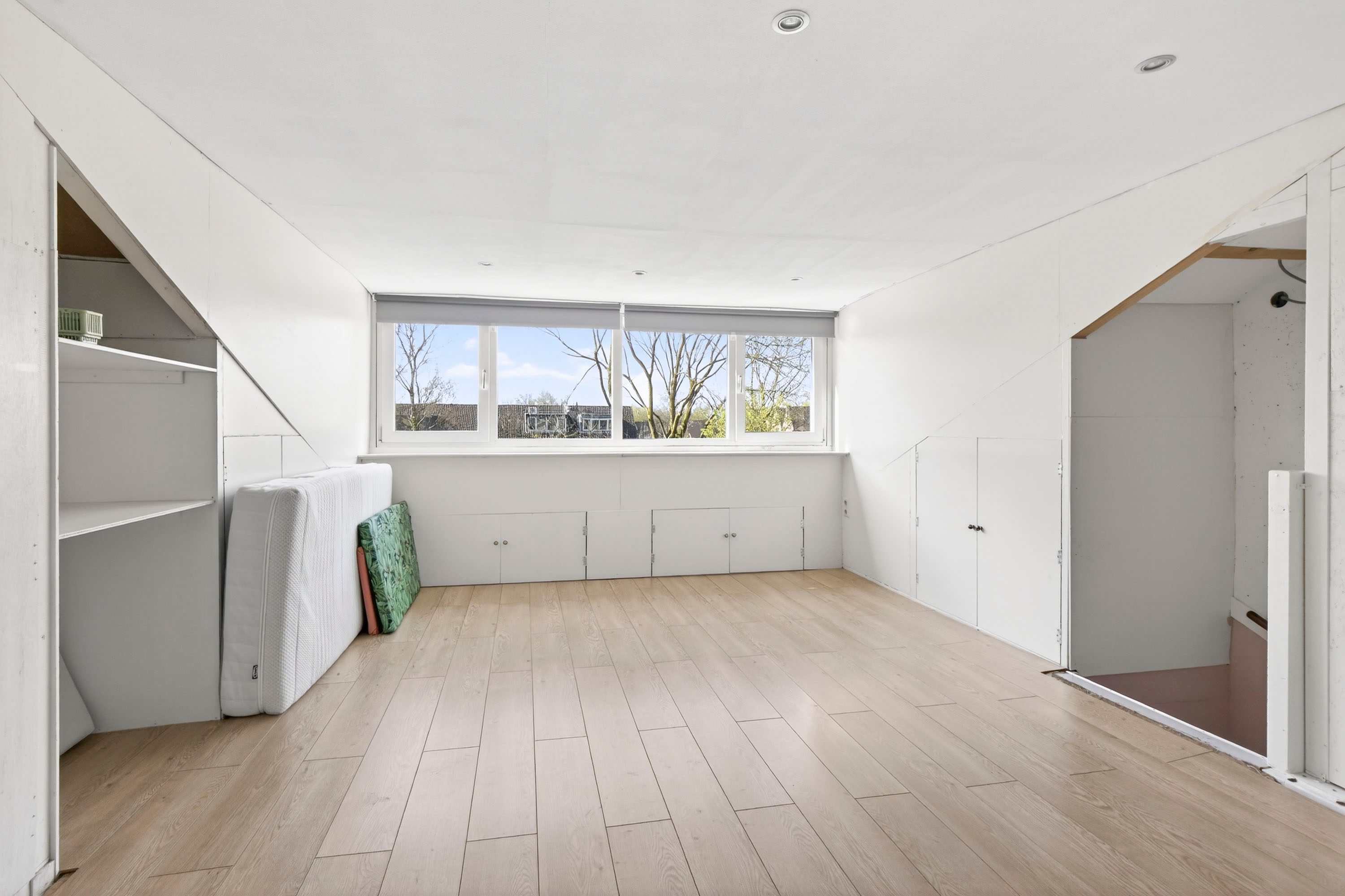 Via een vaste trap bereik je de tweede verdieping. Dit is nu een grote, open ruimte die door de grote raampartij aan de achterzijde verrassend licht is. De mogelijkheden hier zijn eindeloos: je kunt hier eenvoudig één of zelfs twee extra slaapkamers creëren, maar het is ook een fantastische plek voor een thuiskantoor of een eigen sportruimte. De wasmachine en droger staan praktisch opgesteld en zijn netjes weggewerkt achter vaste kastruimte. Onder de schuine kap is bovendien nog veel extra bergruimte aanwezig.