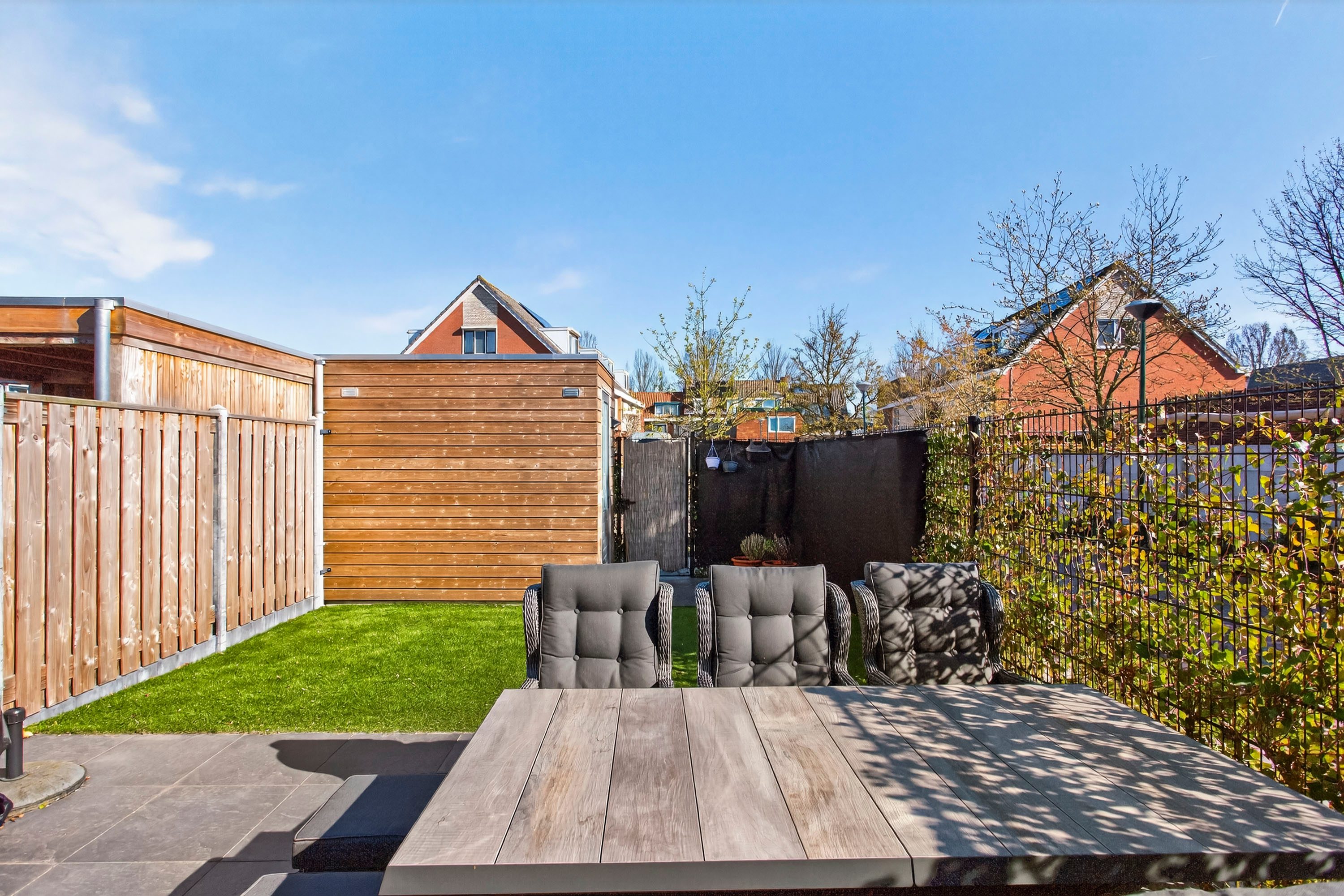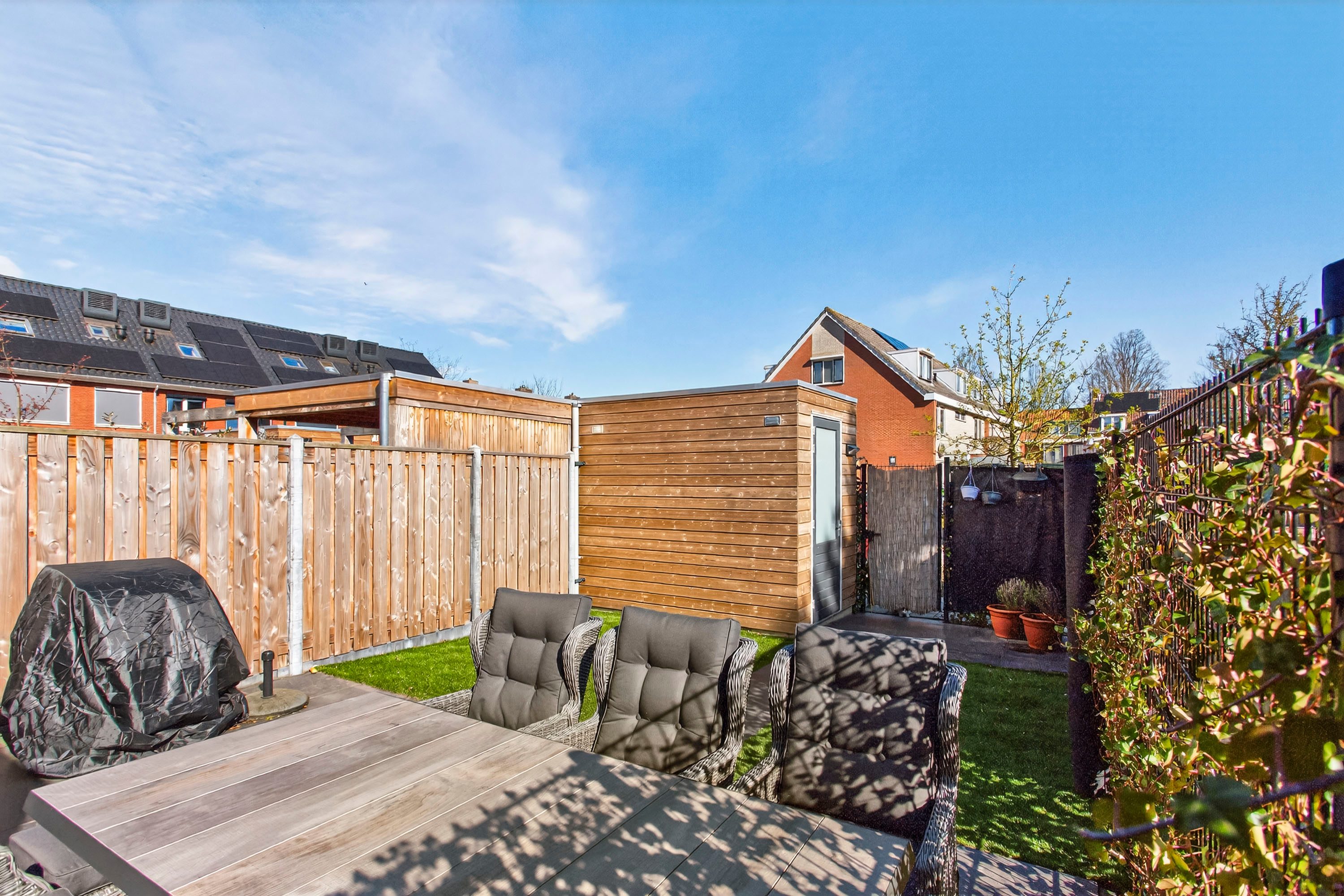 De achtertuin ligt op het noorden. Dat klinkt misschien schaduwrijk, maar door de diepte van de tuin heb je hier gedurende de dag altijd wel een zonnige plek. De tuin is keurig aangelegd en voorzien van een achterom en een praktische berging van circa 5 m² voor de fietsen.
