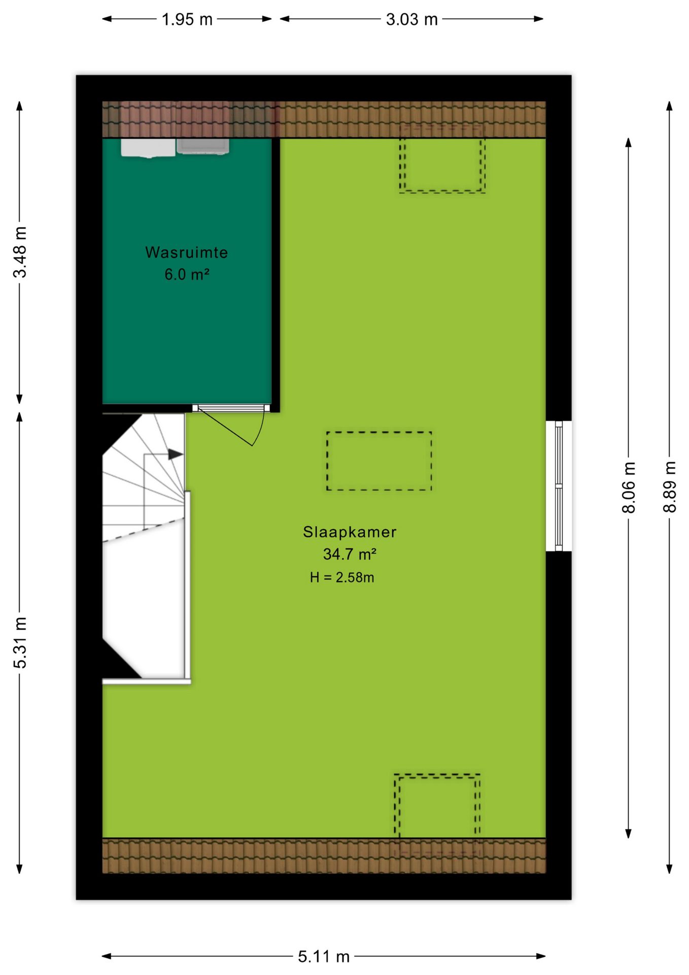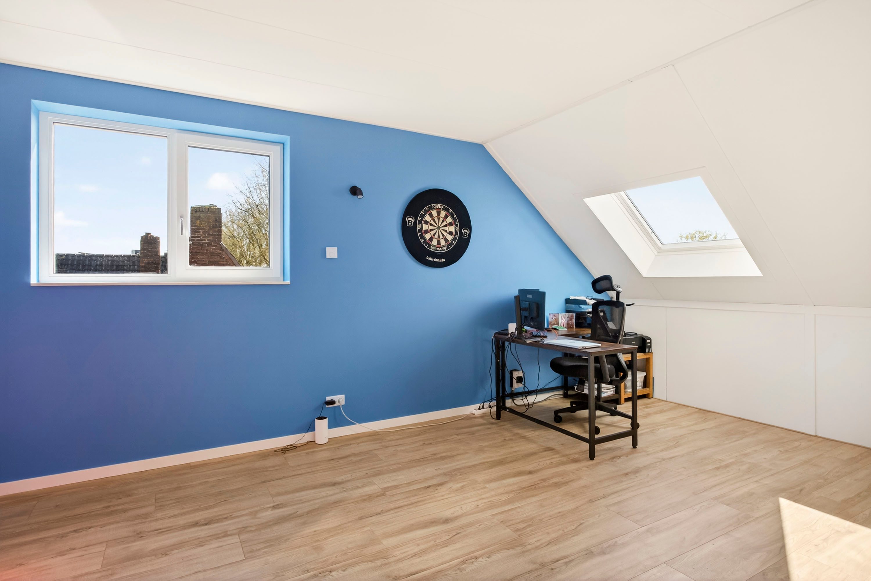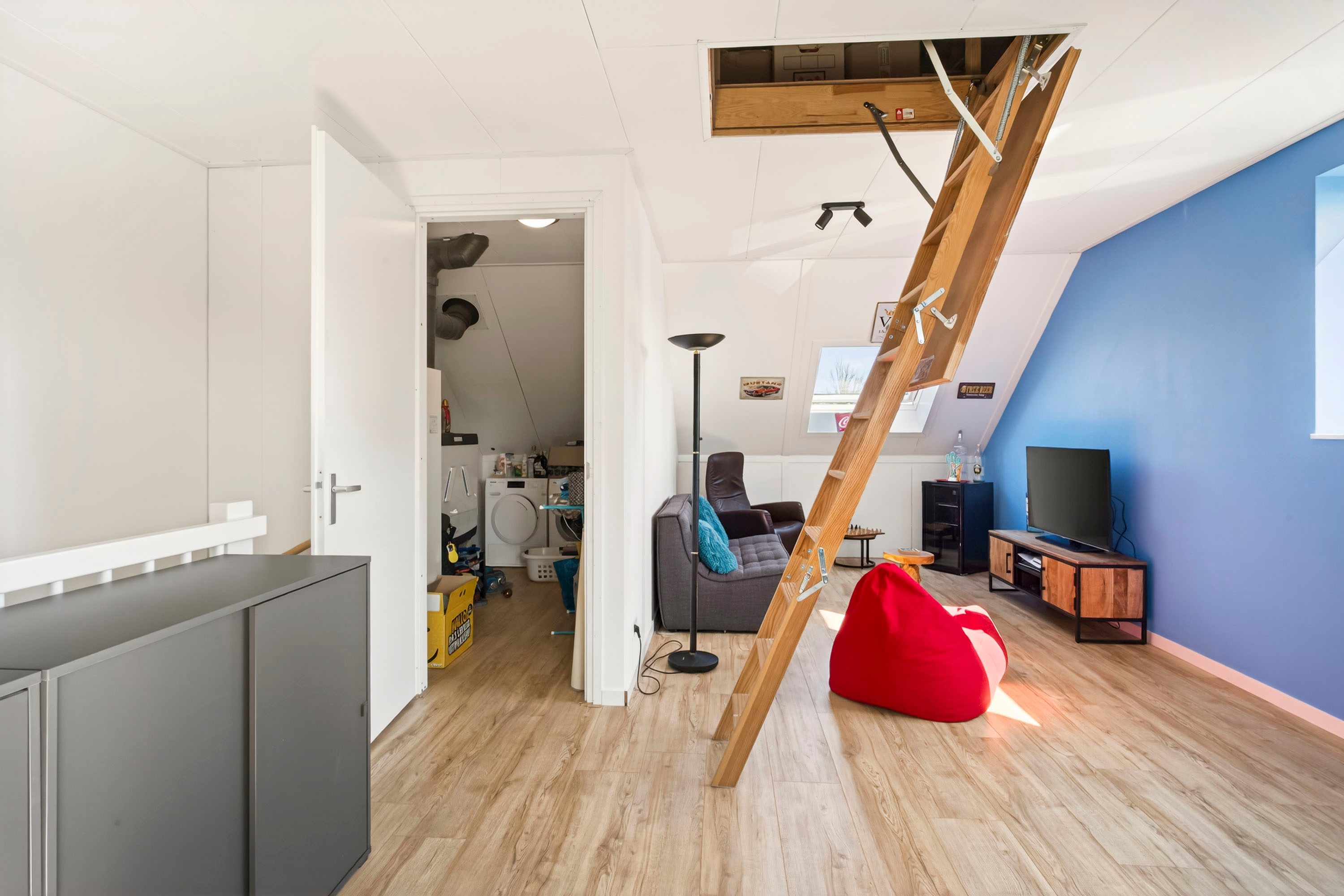 De tweede verdieping is verrassend ruim. Hier vind je een enorme vierde slaapkamer van circa 35 m². Een ideale ruimte voor een master bedroom of een riante hobbykamer. Daarnaast is er een aparte ruimte voor de wasmachine en de technische installaties. Via een vlizotrap bereik je ook nog eens de vliering van circa 6 m², de perfecte plek voor je kerstspullen en koffers.