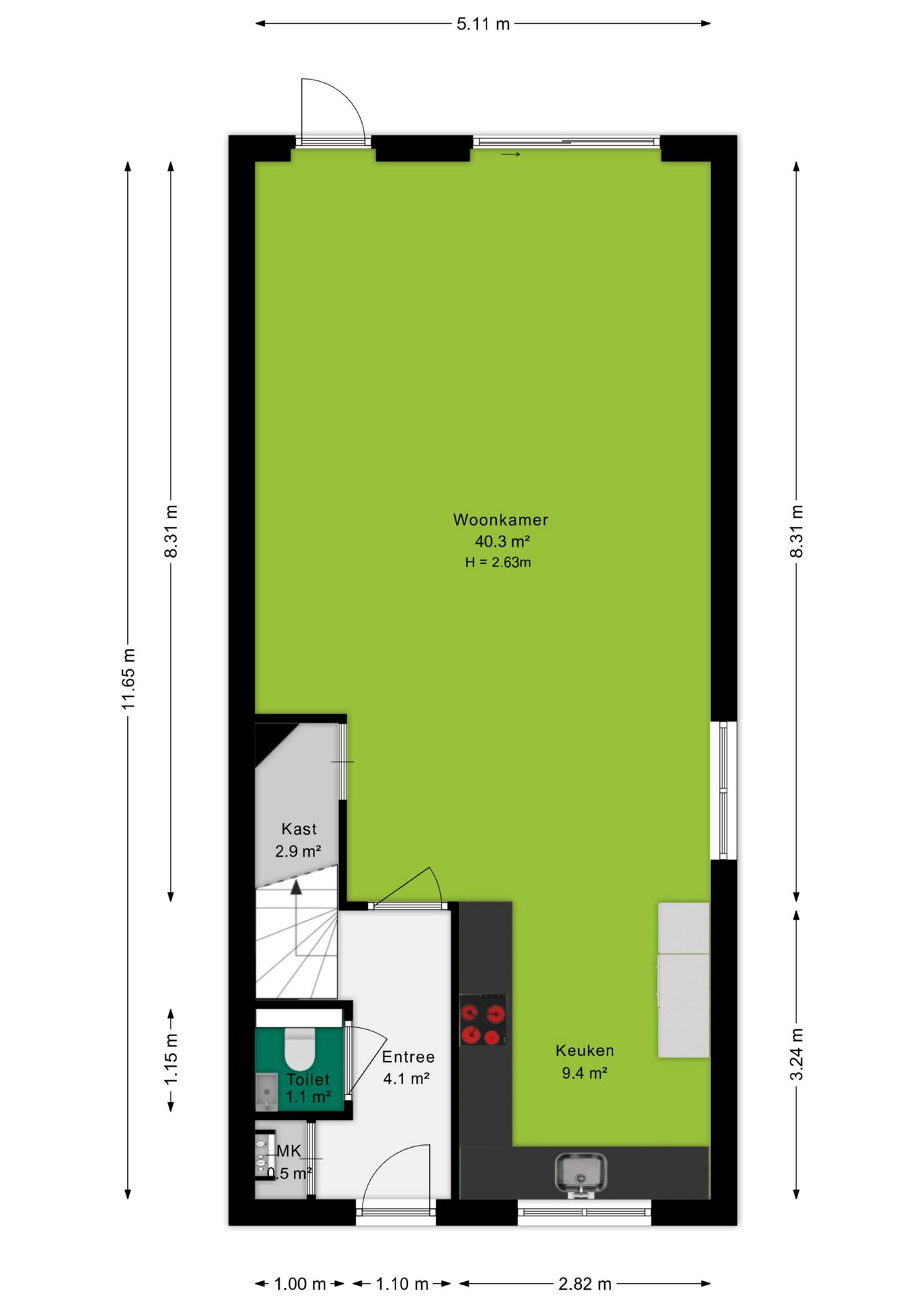 In de hal vind je de meterkast en een modern toilet. Zodra je de woonkamer binnenstapt, valt op hoe ruim en licht het hier is. Met een oppervlakte van zo’n 40 m² kun je hier alle kanten op met je inrichting. De grote schuifpui betrekt de tuin echt bij je woonkamer. Onder de trap zit een handige voorraadkast. Centraal gelegen is er ruimte voor een grote eettafel, ideaal voor het tafelen met familie of vrienden. De open keuken aan de voorzijde (2024) is strak uitgevoerd en voorzien van alle moderne inbouwapparatuur die je mag verwachten in een nieuwbouwhuis.