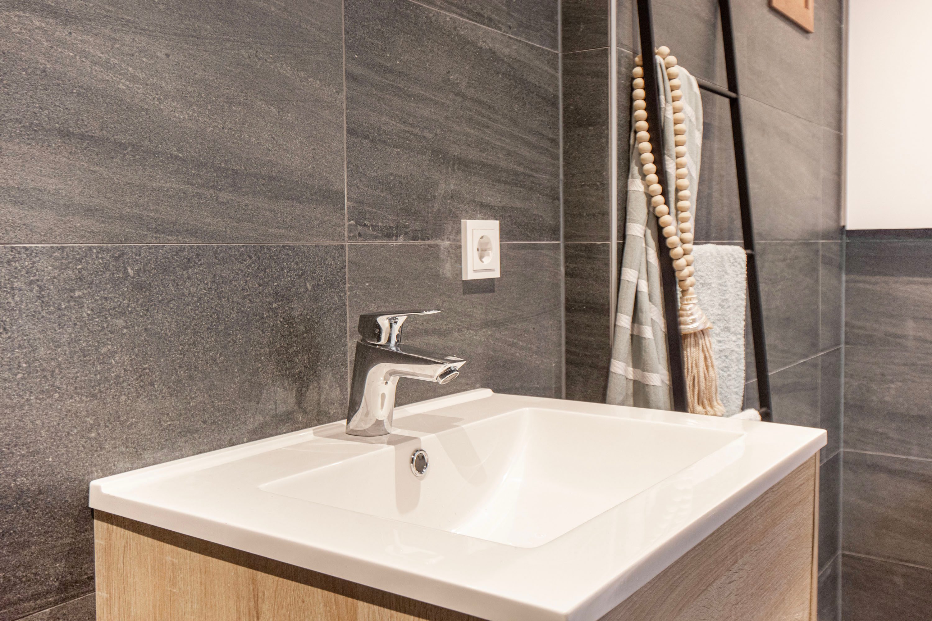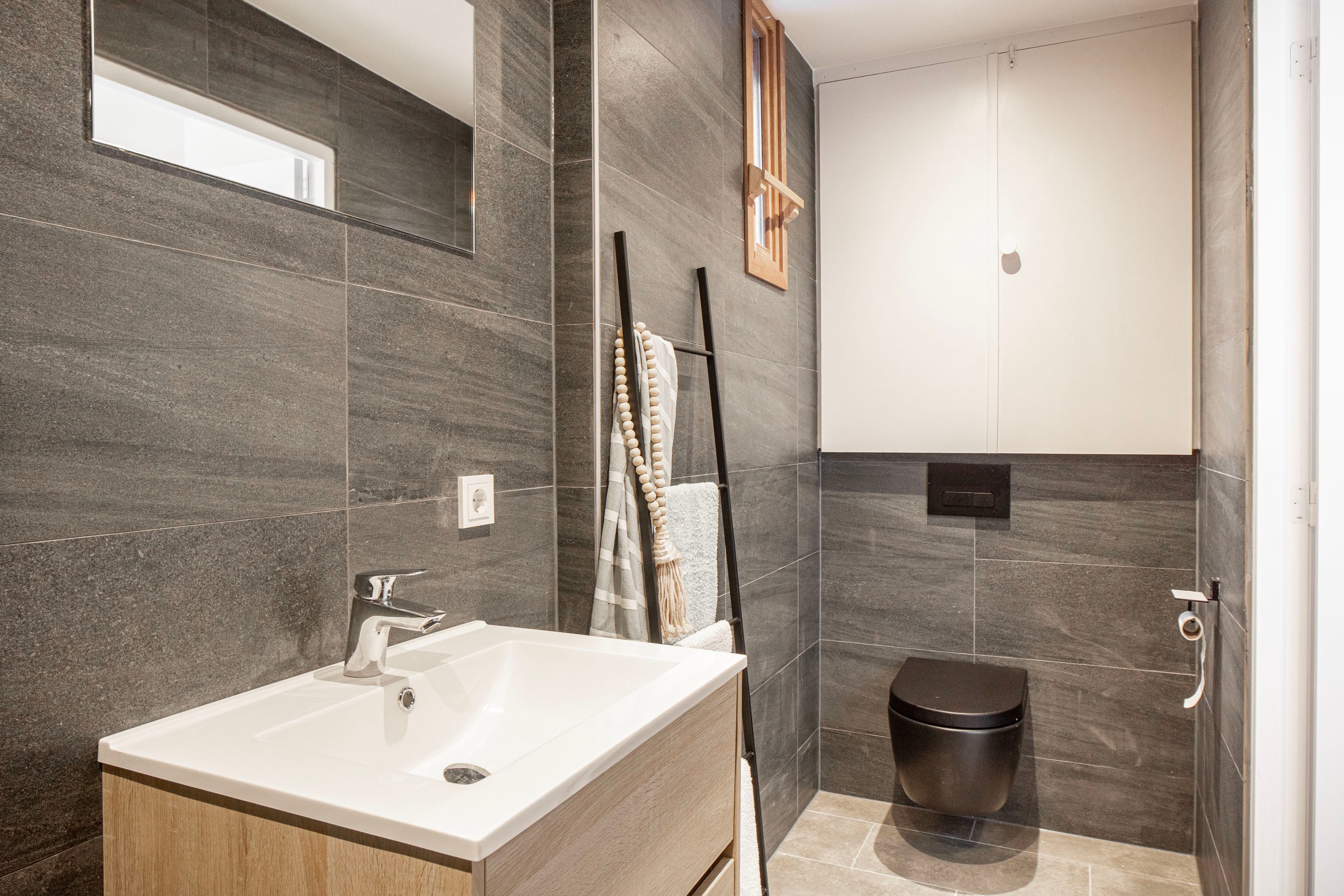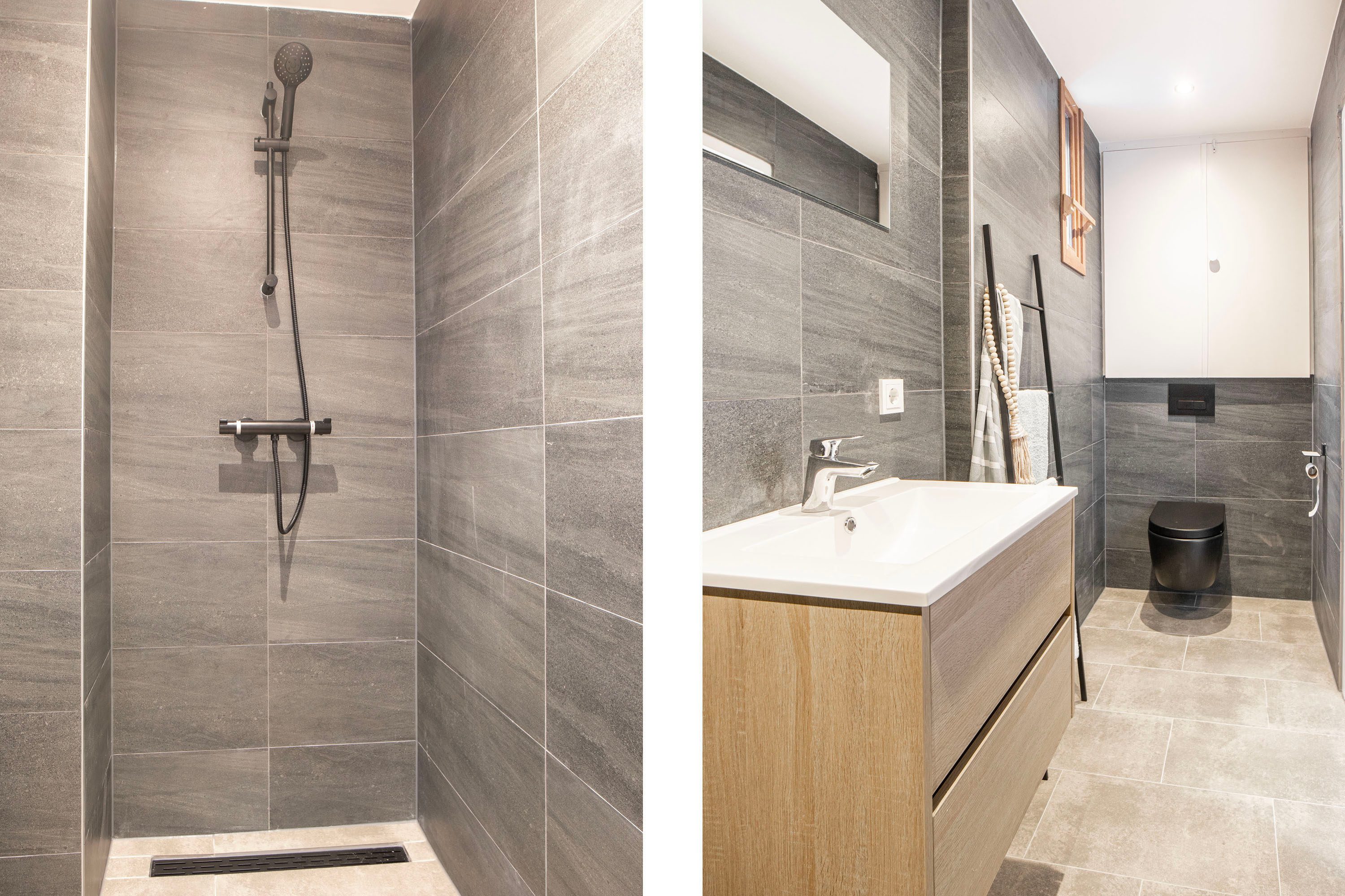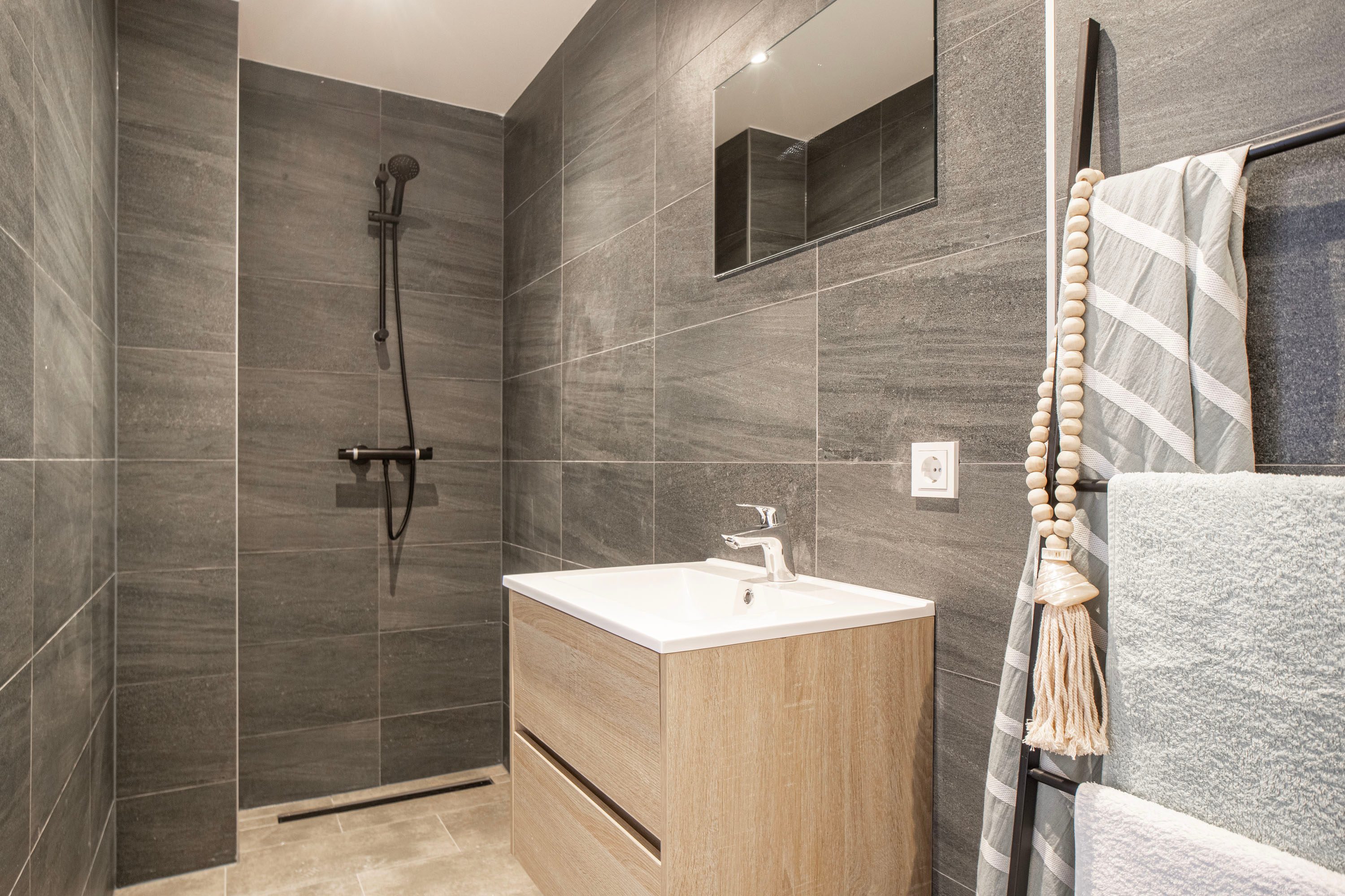 De badkamer, tevens vernieuwd in 2025, is vanuit de slaapkamer te bereiken en voorzien van een ruime inloopdouche, wastafelmeubel met enkele wastafel en het toilet. Het warme water is de badkamer is geregeld met een eigen boiler.