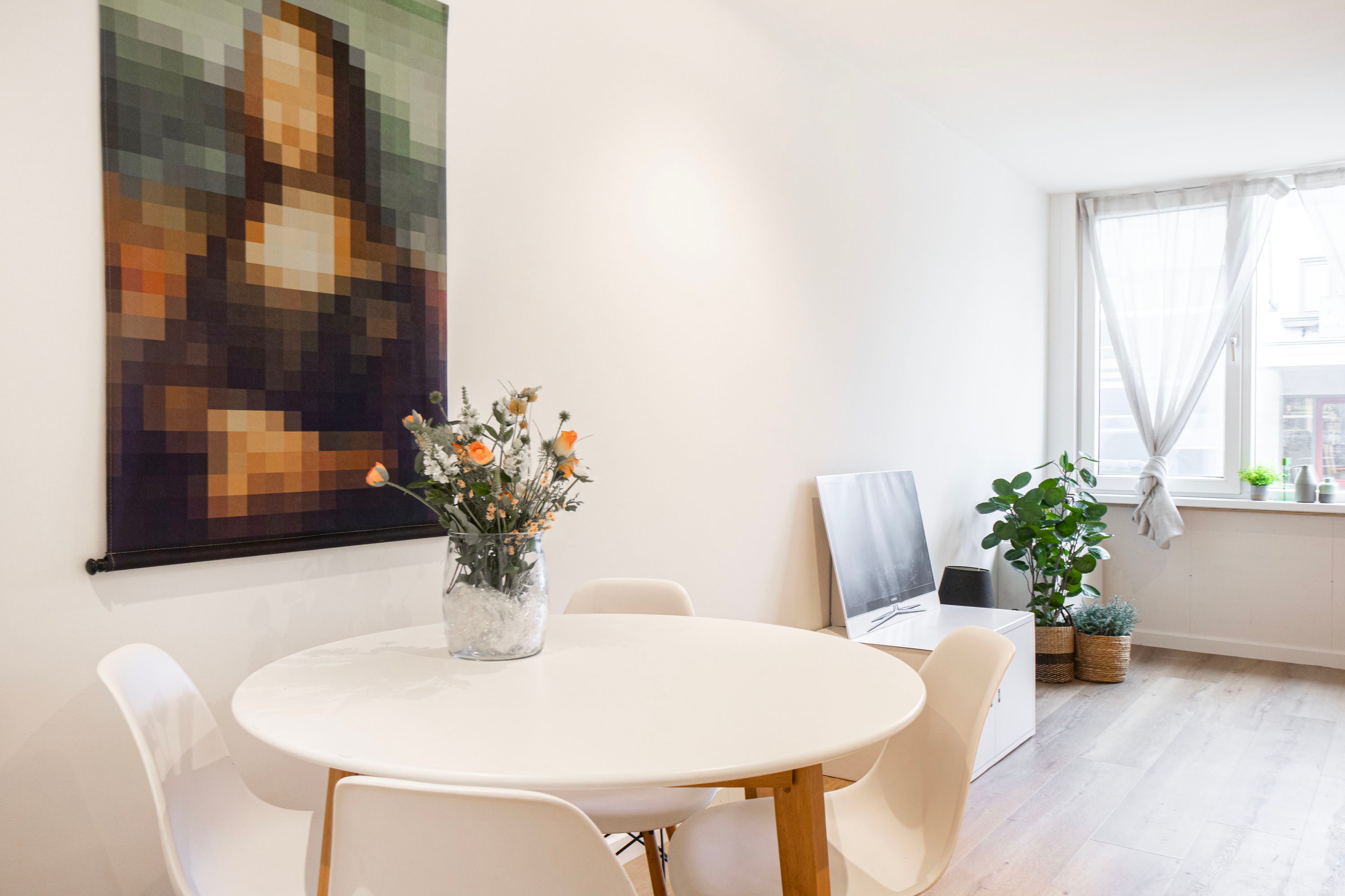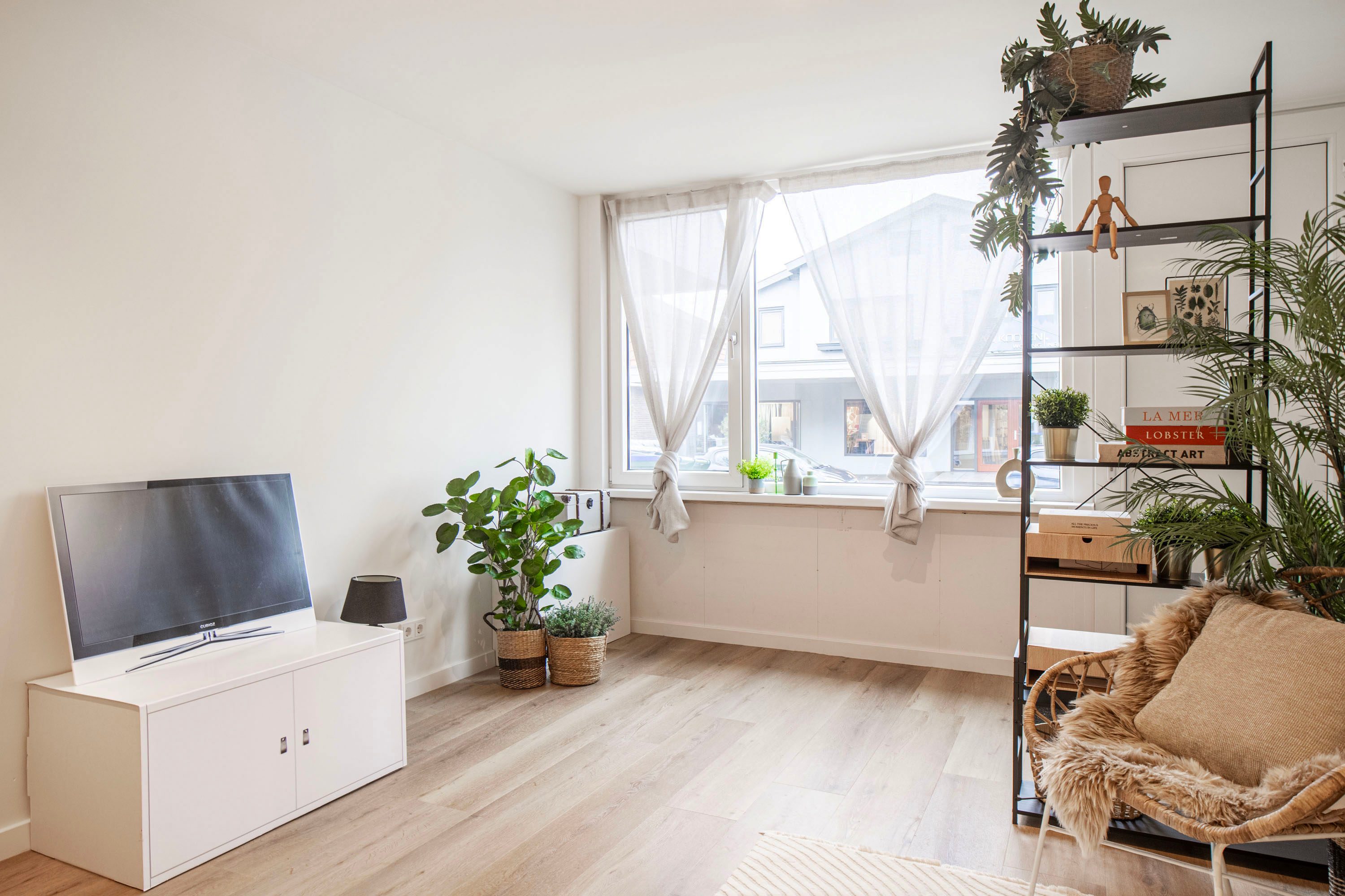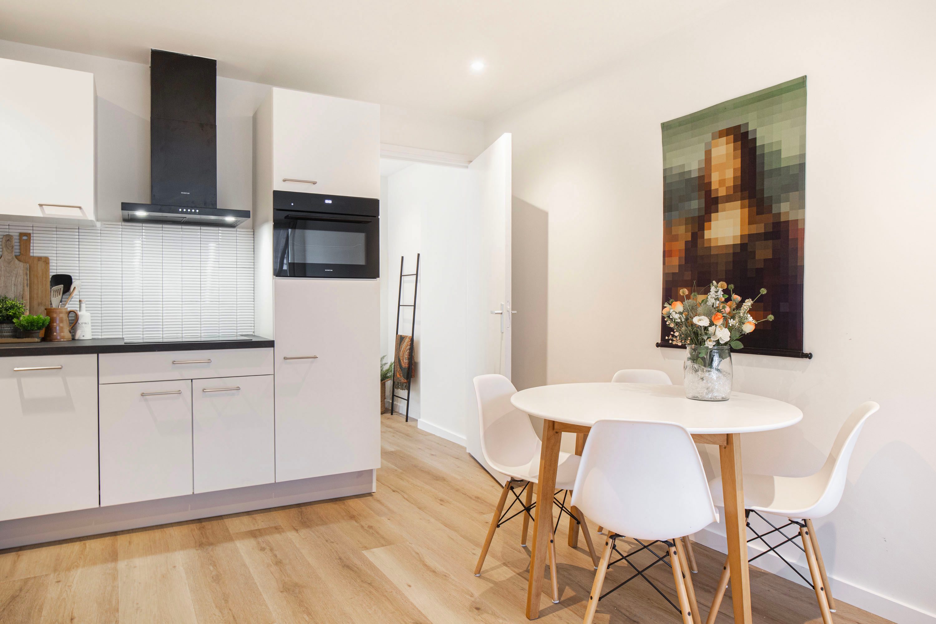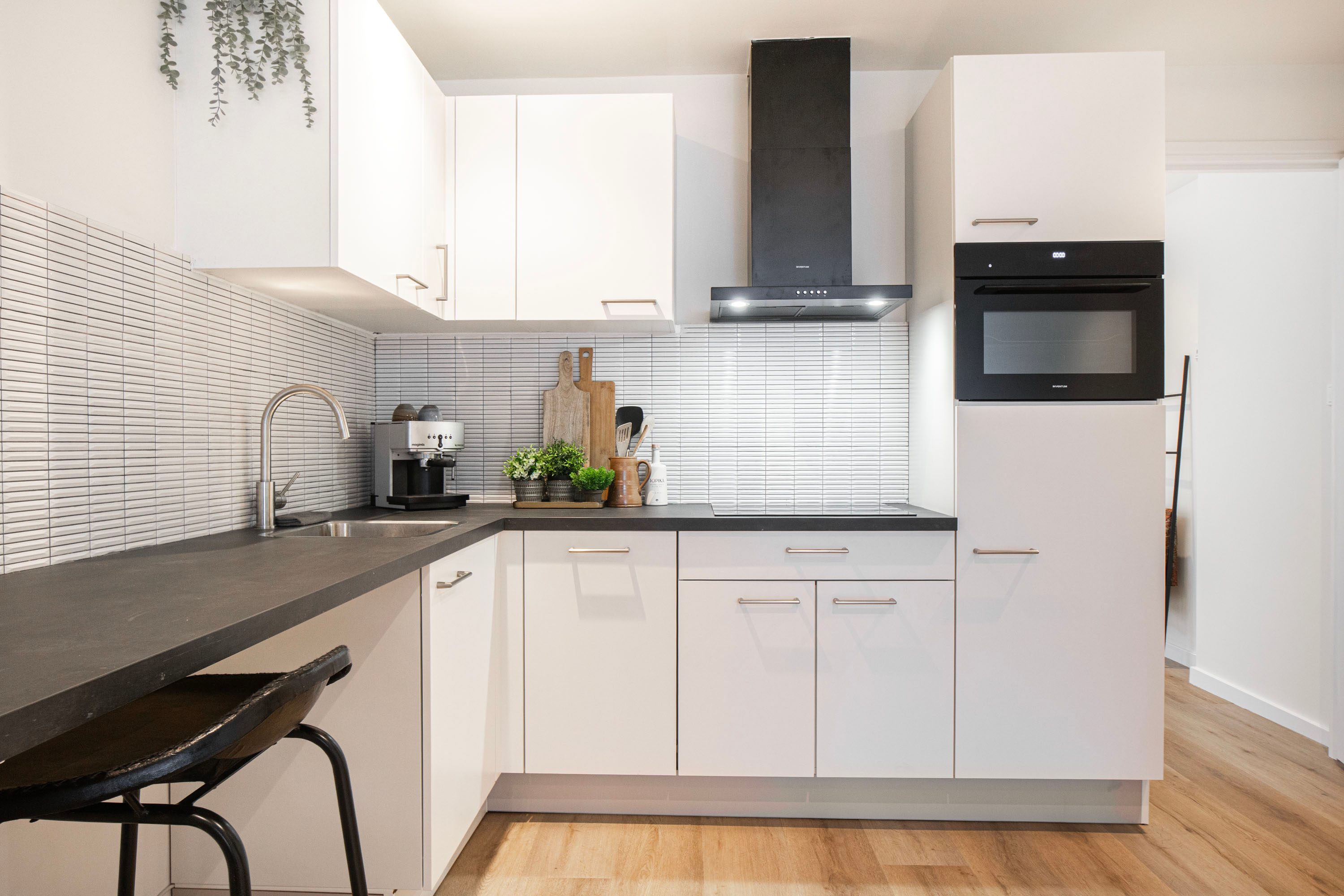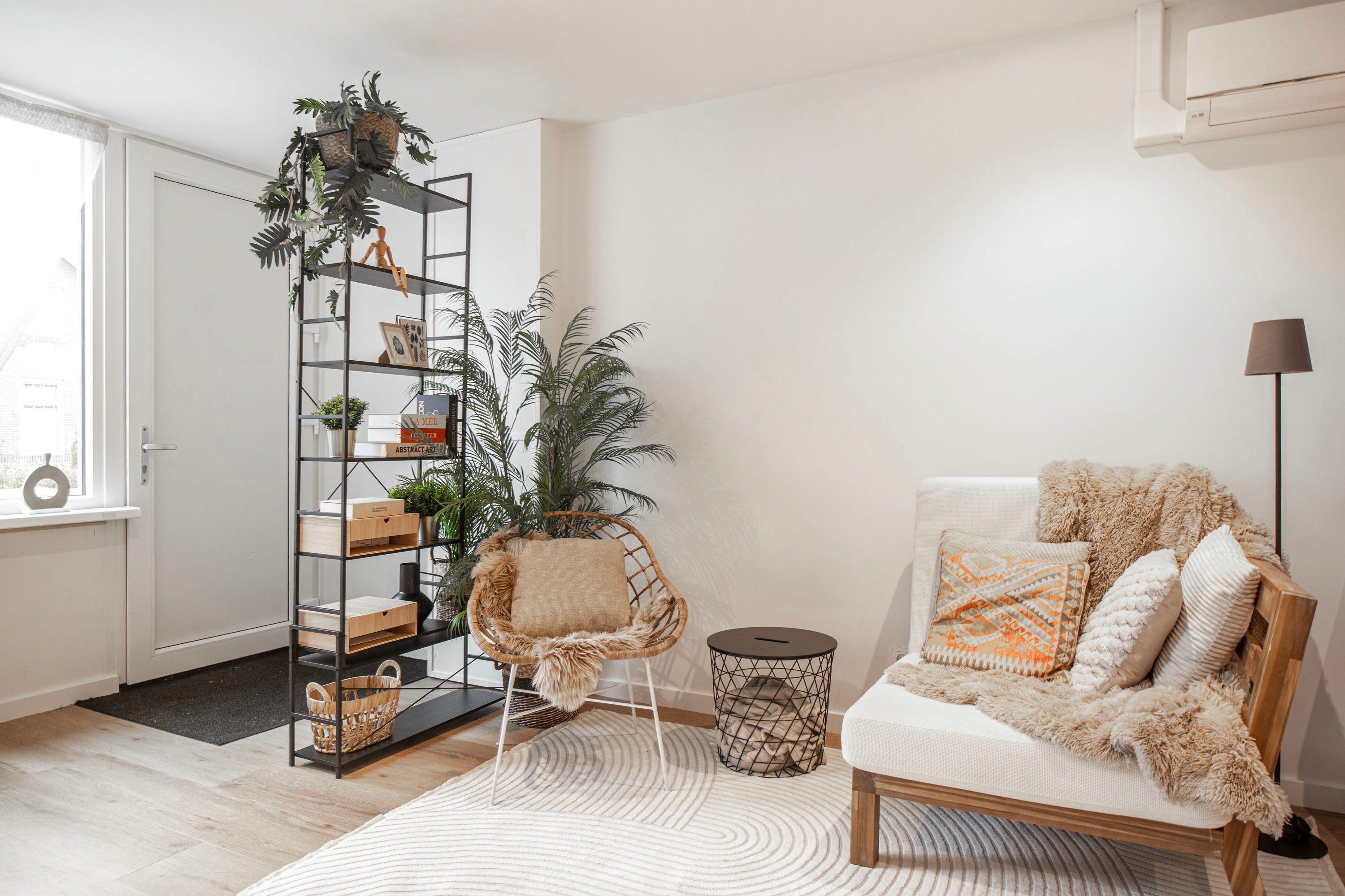 Via de entree kom je binnen in de hal met meterkast. Woonkamer is gelegen aan de voorzijde en wordt door een groot raampartij voorzien van veel daglicht. De open keuken is voorzien van witte fronten en een donker aanrechtblad en uitgevoerd met o.a. een inductiekookplaat met afzuigkap, een combi-oven en een close-in boiler. Voor verwarming en koeling kun je gebruik maken van airco unit.