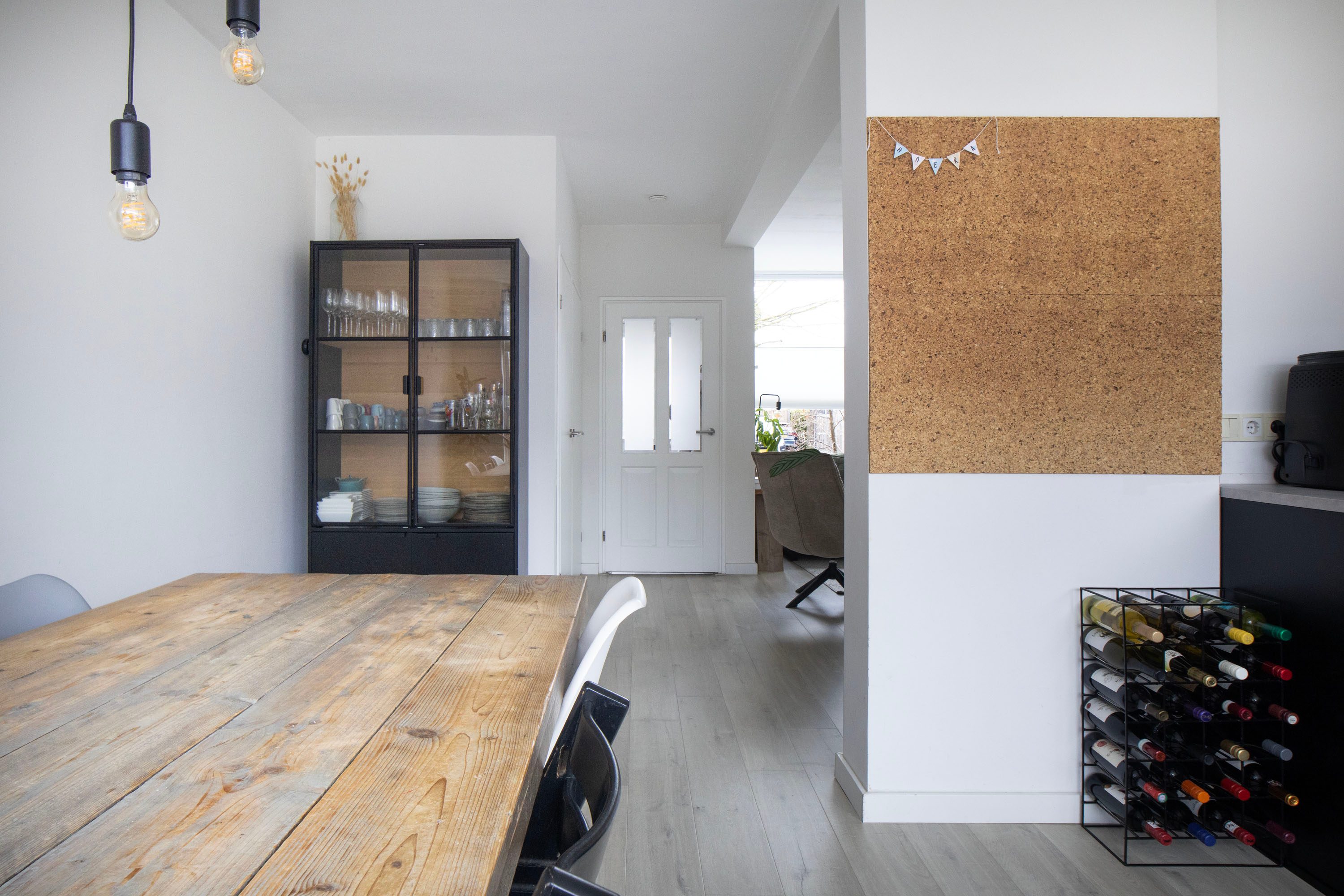 De sfeervolle Z-vormige woonkamer valt direct op door de grote raampartijen aan zowel de voor- als achterzijde, wat zorgt voor een prettige lichtinval gedurende de hele dag. De woonkamer is afgewerkt met een laminaat vloer en biedt volop ruimte voor een comfortabele zithoek aan de voorzijde en een royale eethoek aan de tuinzijde. Tussen beide zones is extra ruimte voor bijvoorbeeld een speelhoek of werkplek.