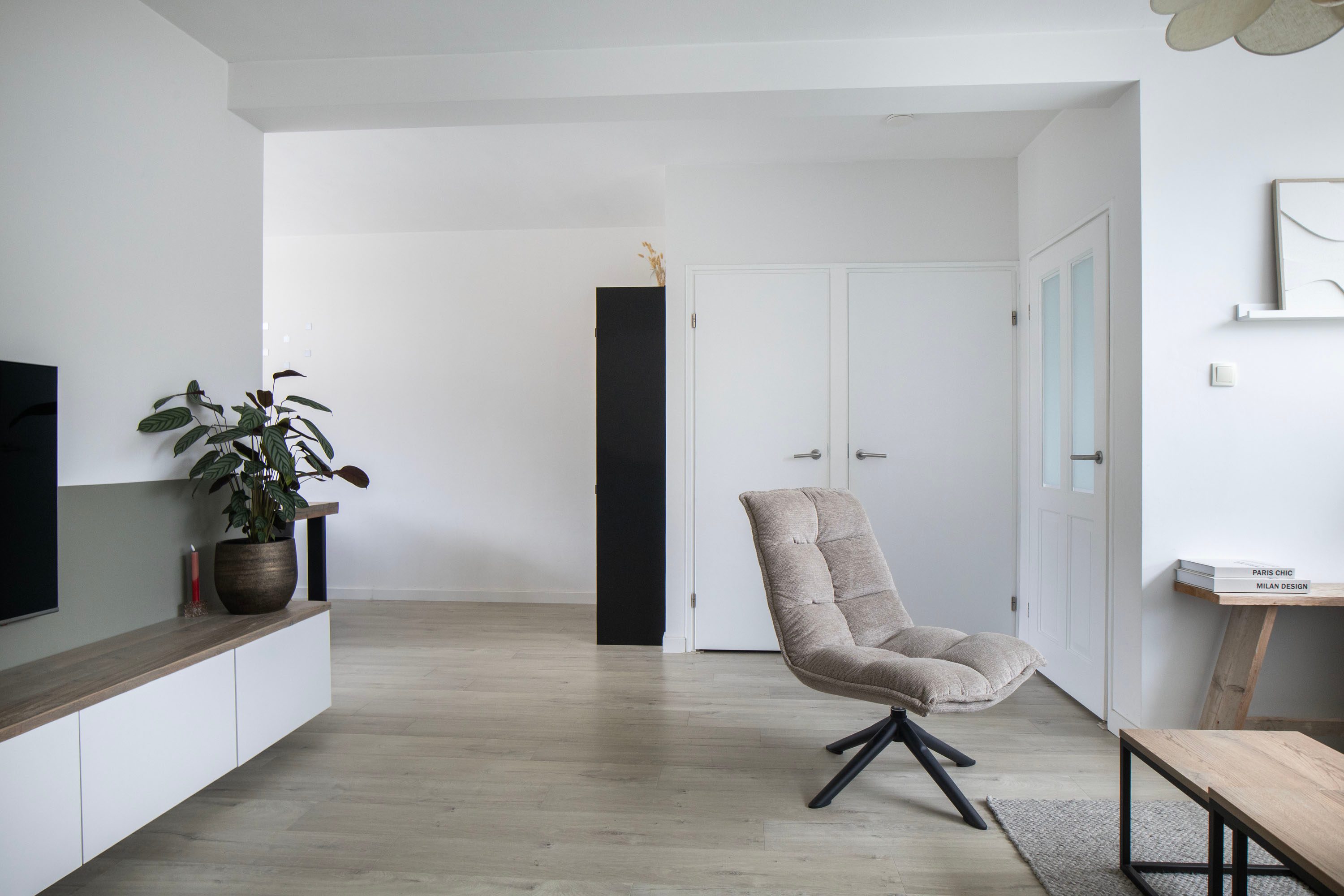 - Woonkamer met grote raampartijen en veel lichtinval