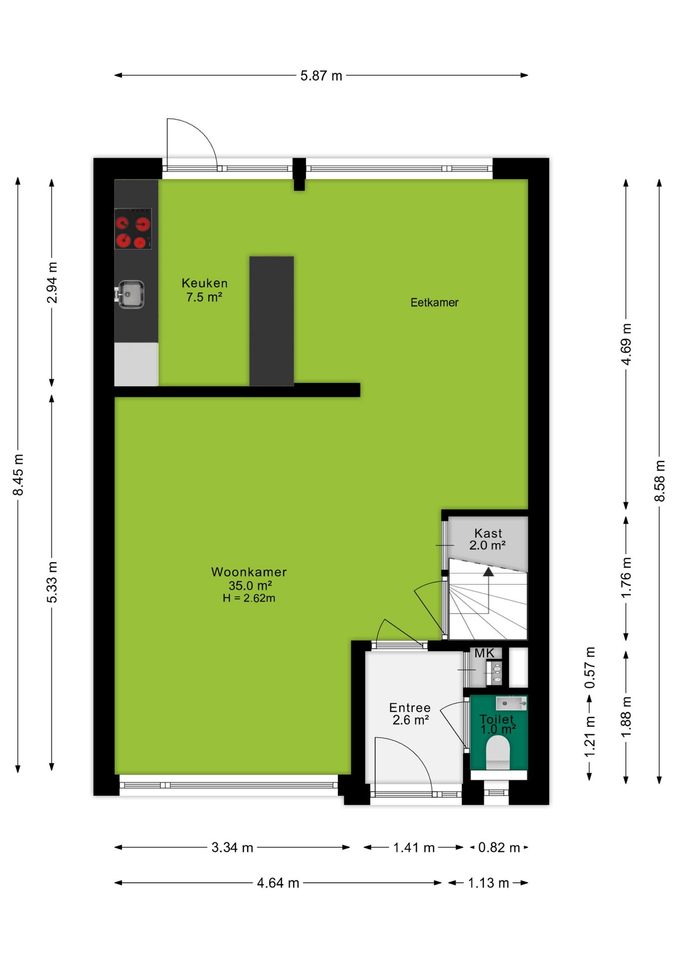 - Spouwmuurisolatie (2013), nageïsoleerde begane grondvloer en grotendeels nageïsoleerde kap