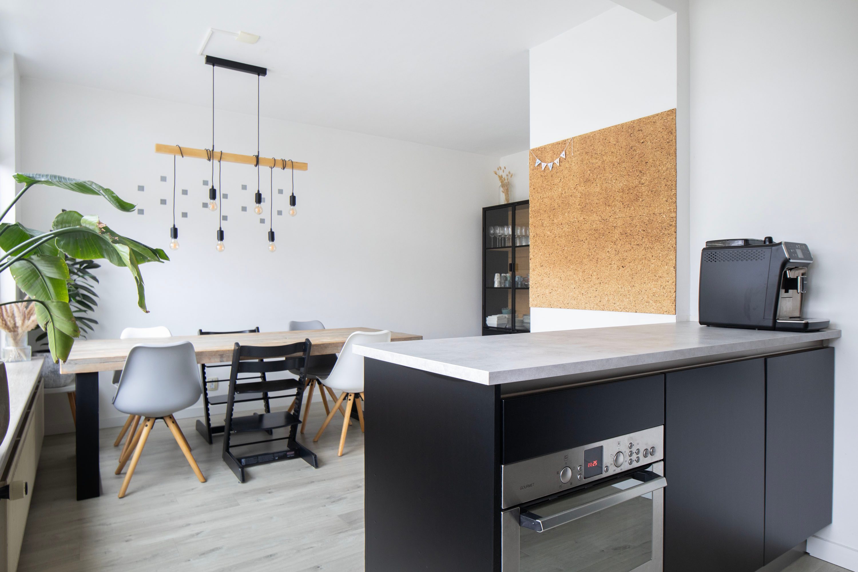 De halfopen keuken is modern uitgevoerd en geplaatst in 2006. De keuken is in 2022 gewrapt en voorzien van een nieuw aanrechtblad en afzuigkap, de keuken bestaat uit twee rechte opstellingen, waarvan één schiereiland en is voorzien van greeploze fronten en diverse Bosch inbouwapparatuur, waaronder een inductie kookplaat, vaatwasser, koelkast en combimagnetron. Daarnaast is de woonkamer voorzien van airco voor verkoeling en verwarming.
