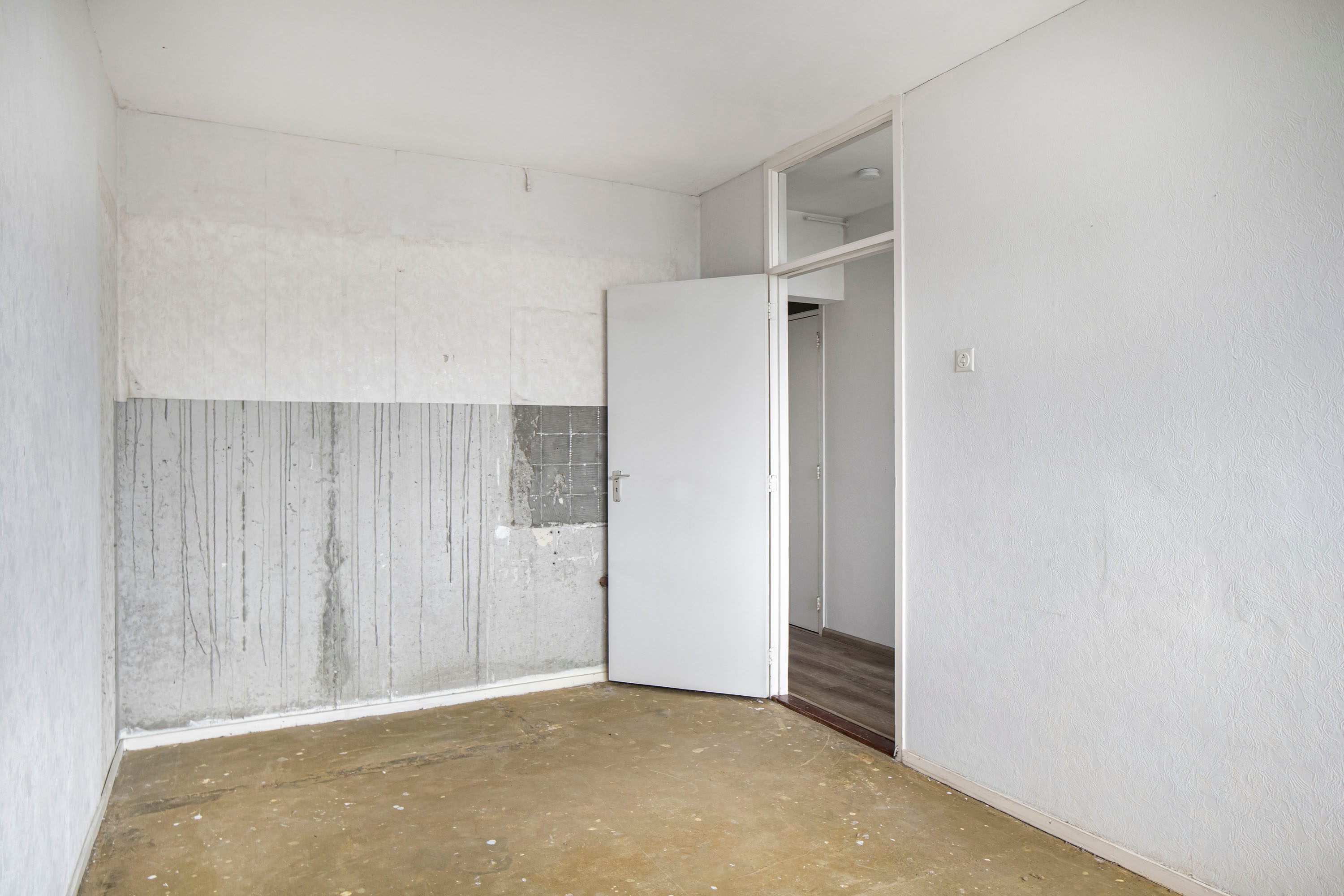 Vanuit de woonkamer (voorzien van HR+ glas) heb je toegang tot de keuken. Deze is eenvoudig uitgevoerd, maar biedt voldoende kastruimte en vormt daarmee een praktische basis.