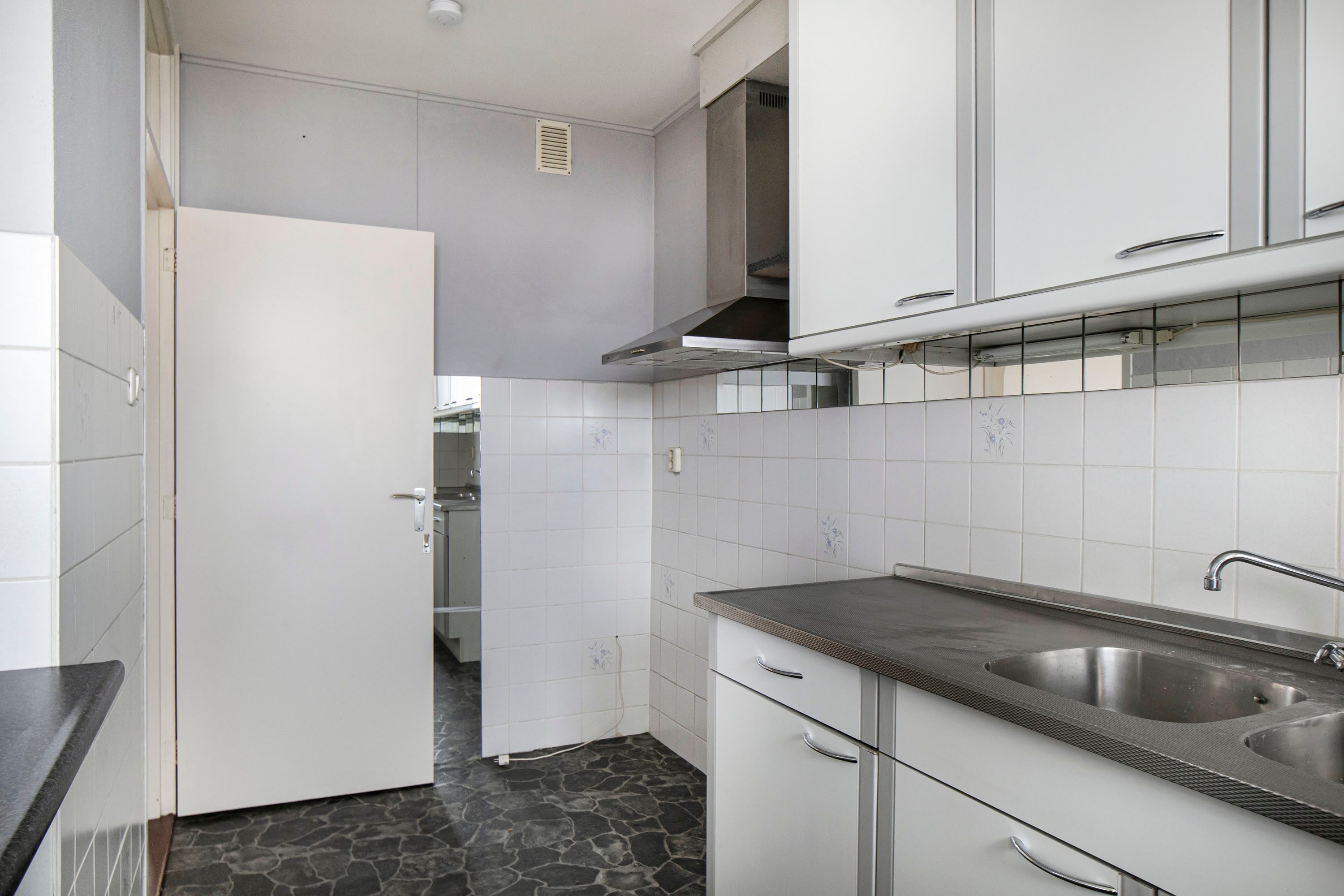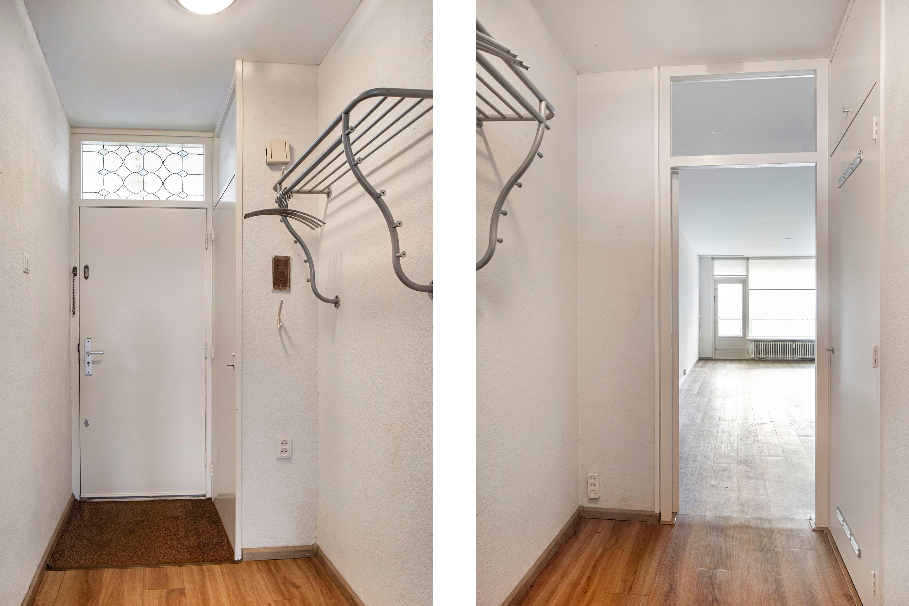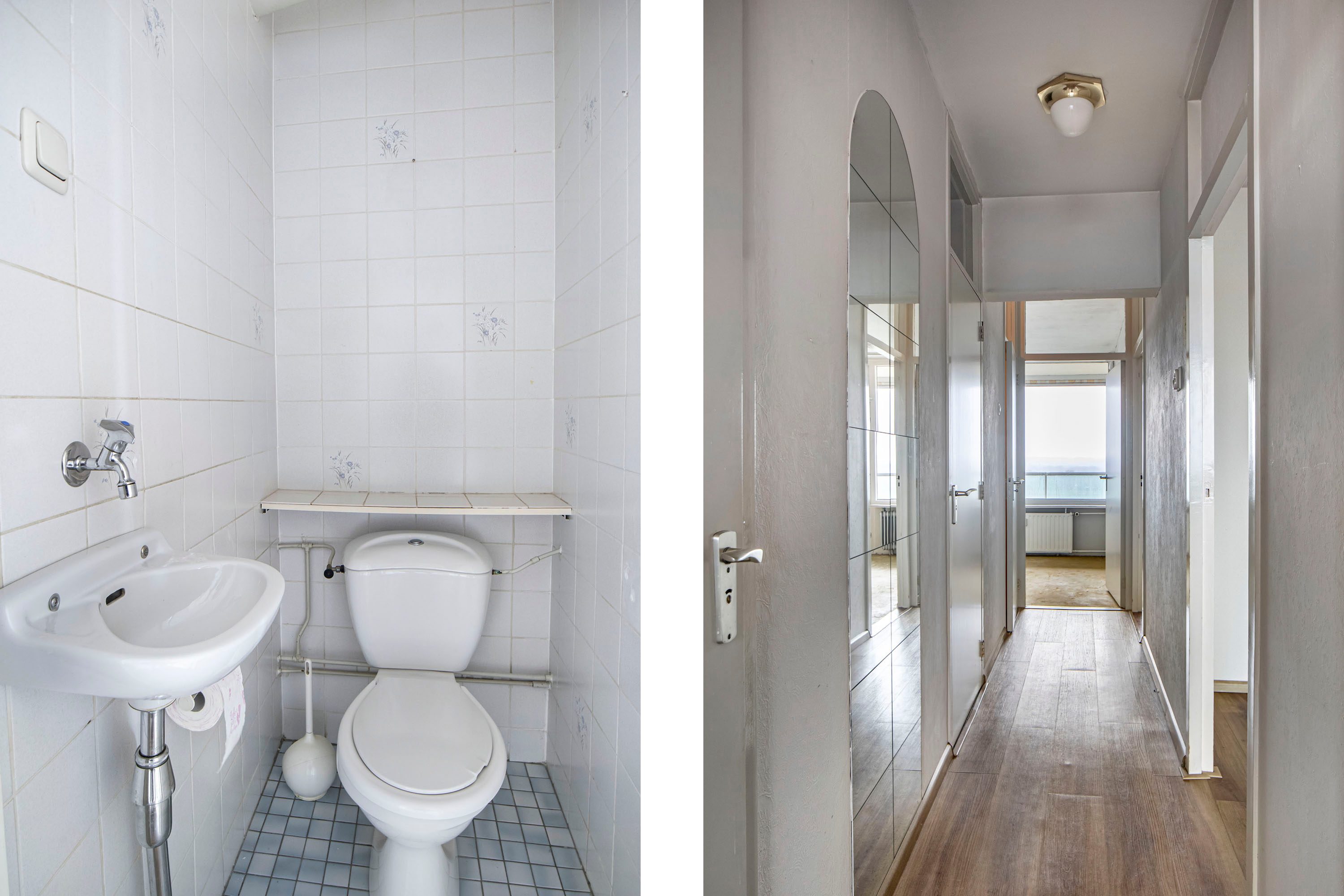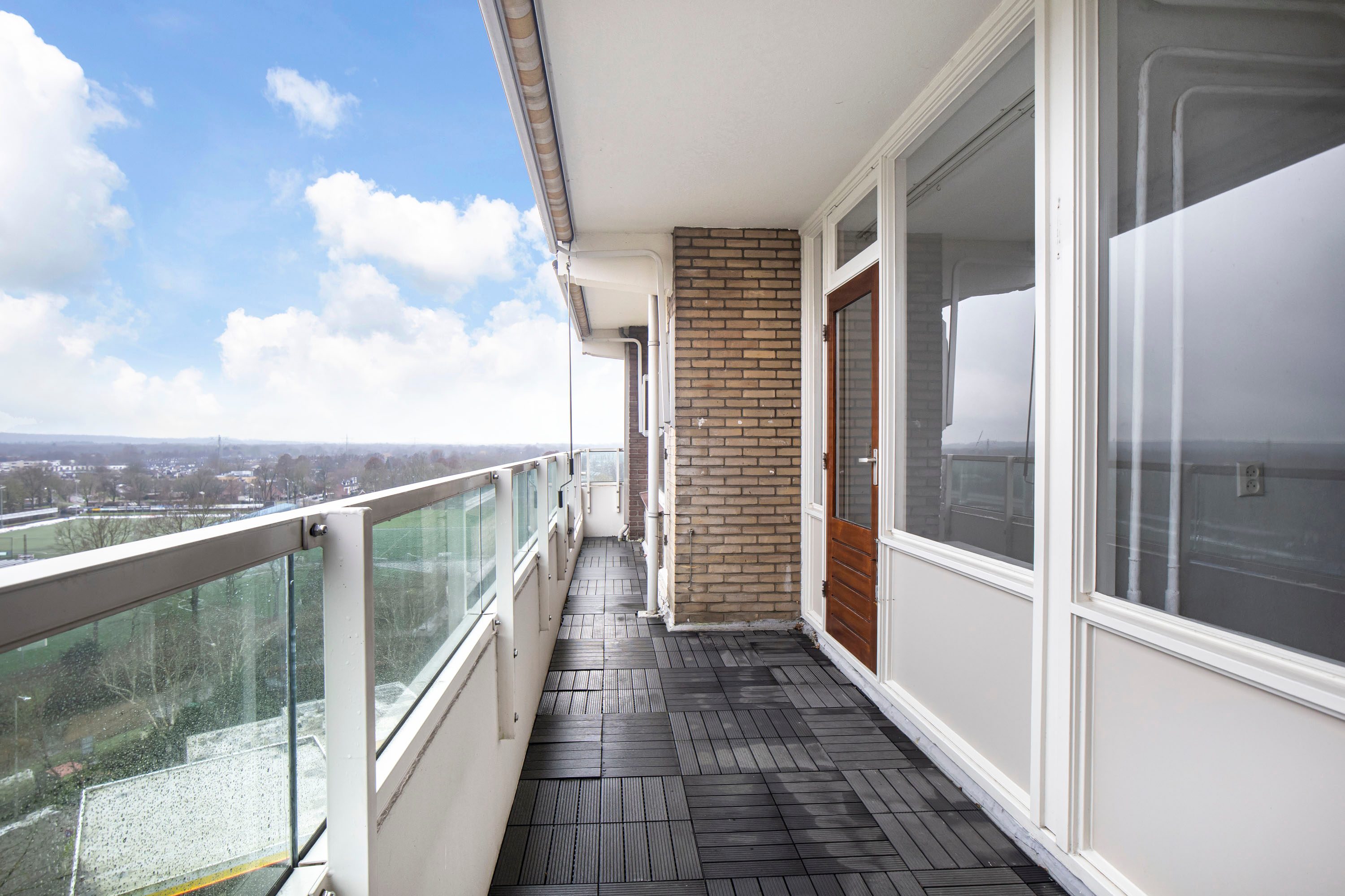 Via de entree kom je binnen in de hal met de meterkast en een vaste kastenwand. Vanuit hier loop je door naar de ruime woonkamer, waar je direct het vrije uitzicht en de prettige lichtinval ervaart. De woonkamer geeft toegang tot het balkon, gelegen op het zuidwesten, een heerlijke plek waar je een groot deel van de dag van de zon kunt genieten. Daarnaast is er in de woonkamer een vaste inbouwkast, handig voor extra bergruimte.