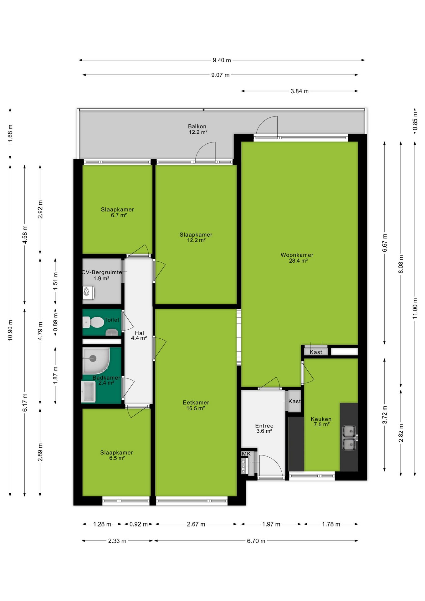 + Ruim 4-kamer hoekappartement