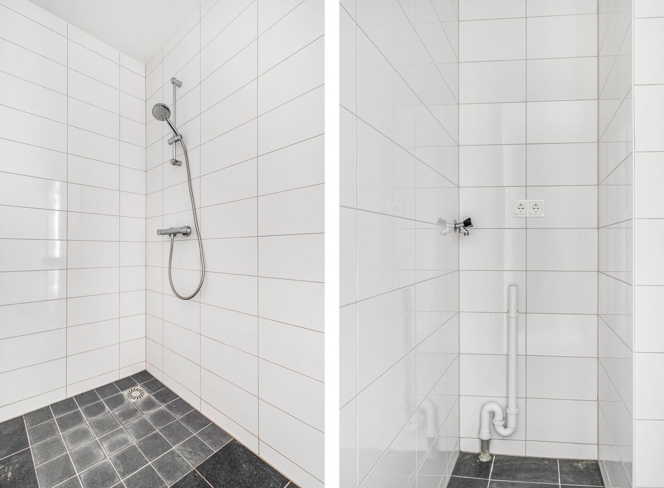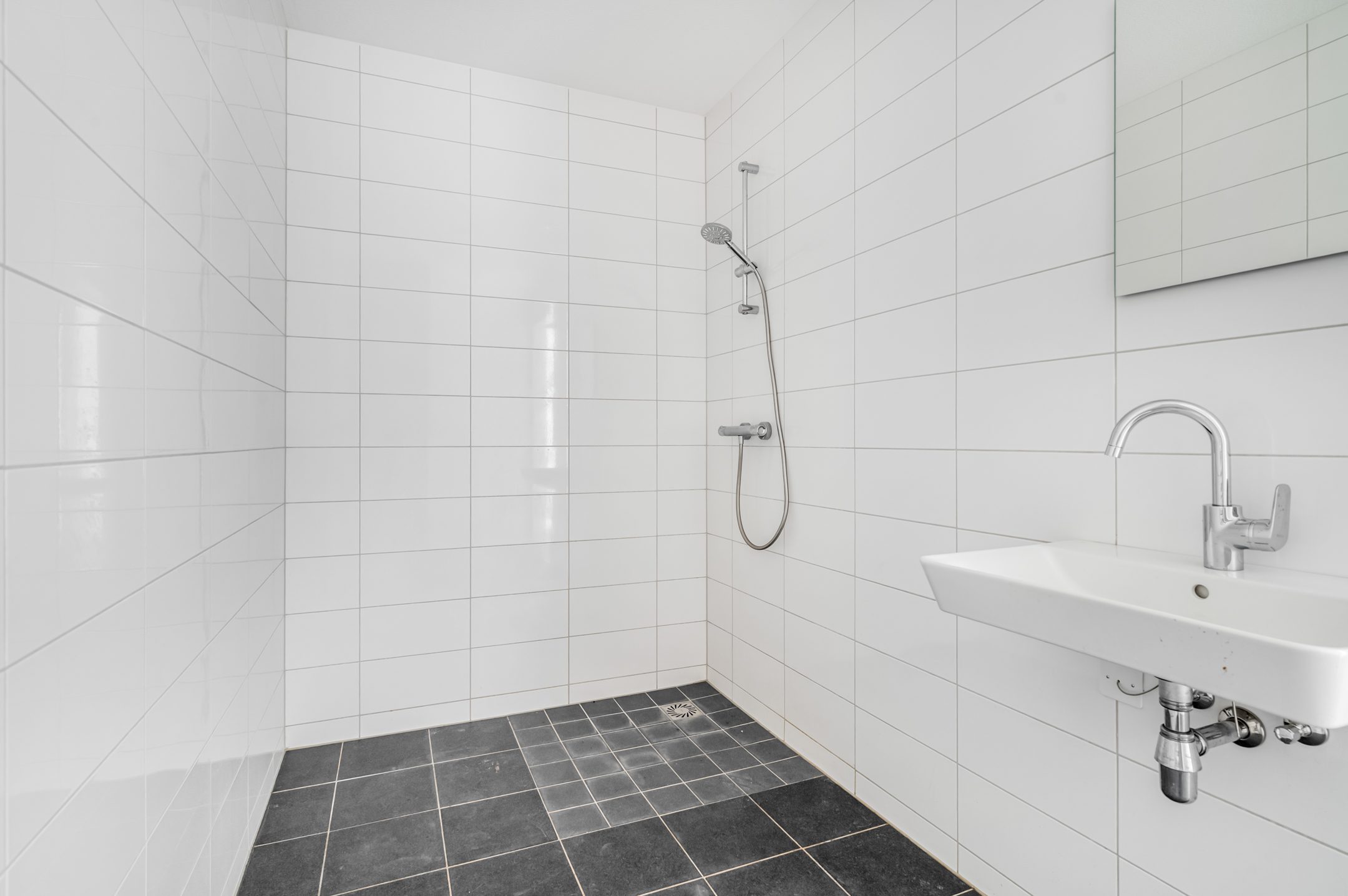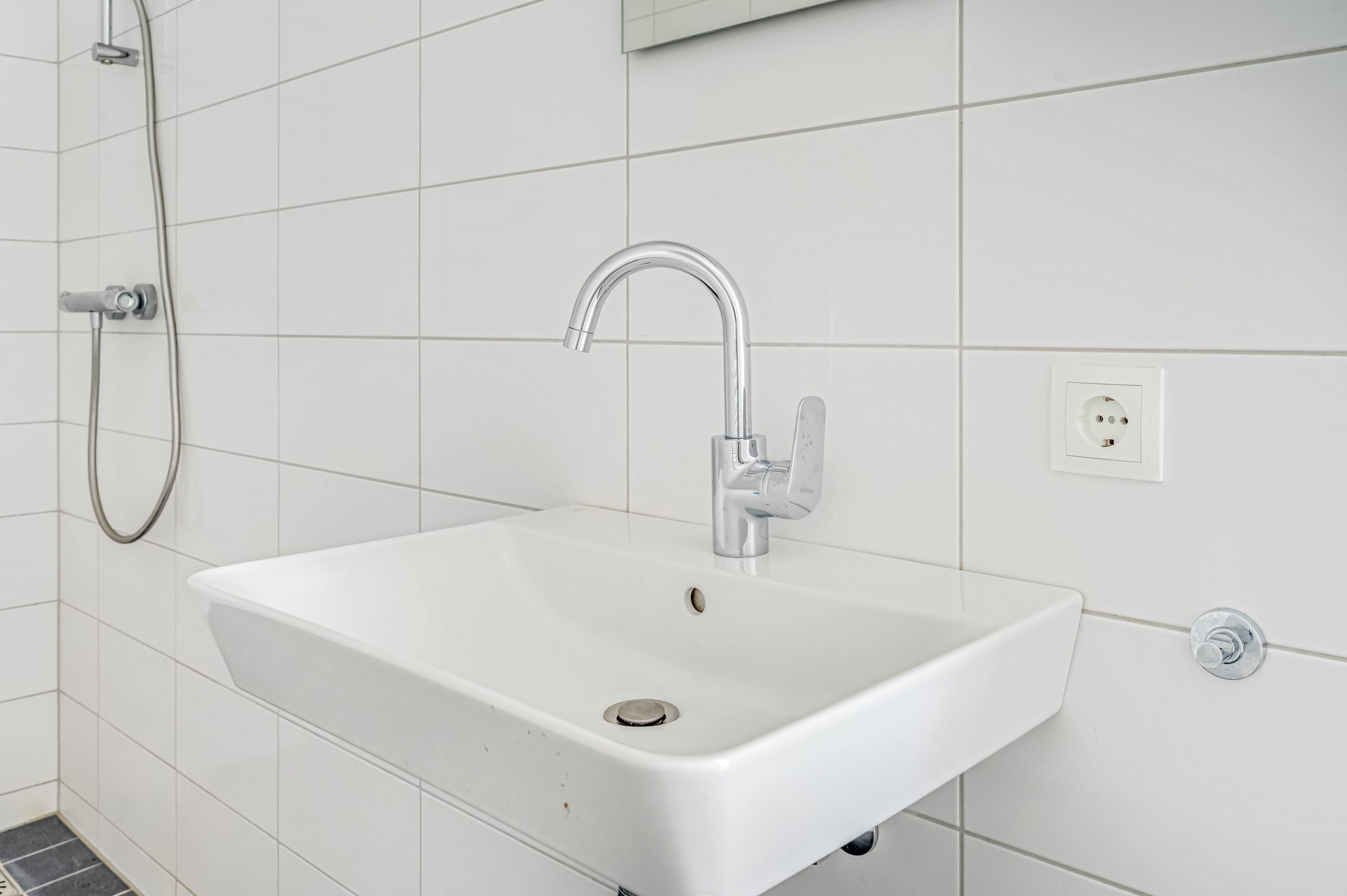 De twee slaapkamers hebben een fijne afmeting en zijn voorzien van voldoende daglicht. De badkamer is opgesteld in een lichte kleurstelling en is voorzien van een ruime inloopdouche, wastafel en wasmachine-aansluiting. Tegenover de badkamer bevindt zich de technische ruimte waar de warmtepomp staat opgesteld.