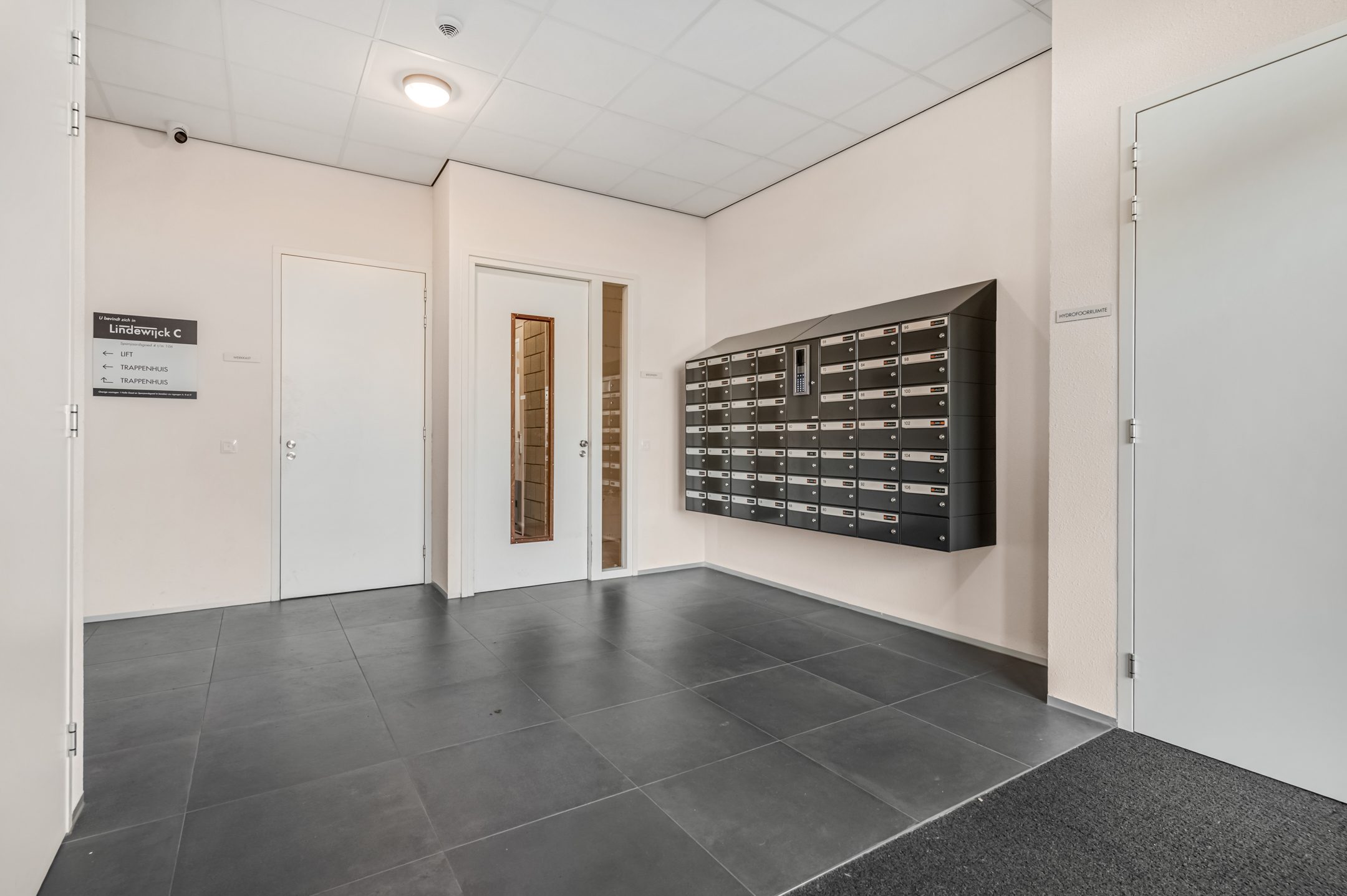 Via de centrale hal met entree, brievenbussen en bellentableau krijg je toegang tot de lift en het trappenhuis richting het appartement.