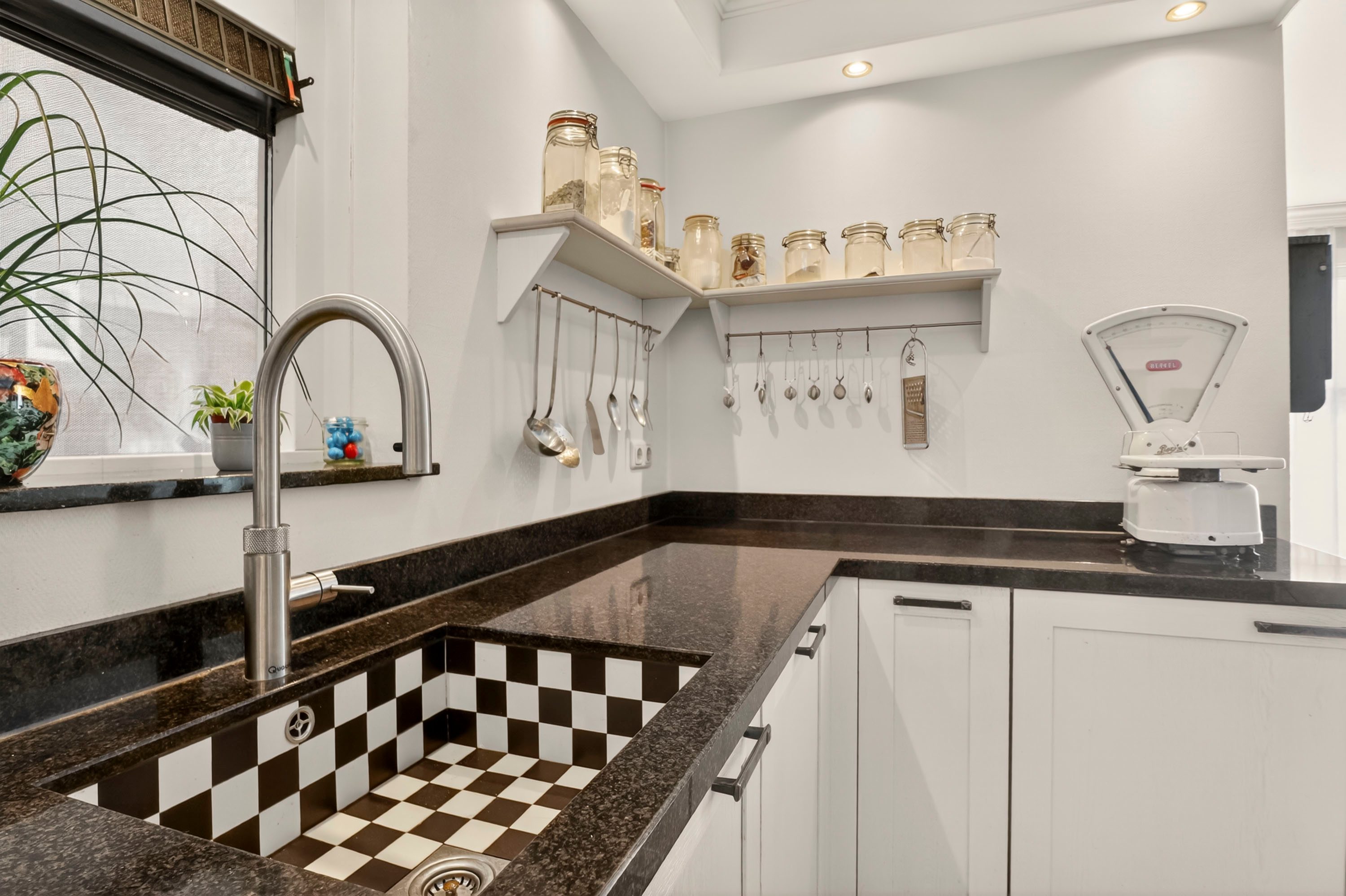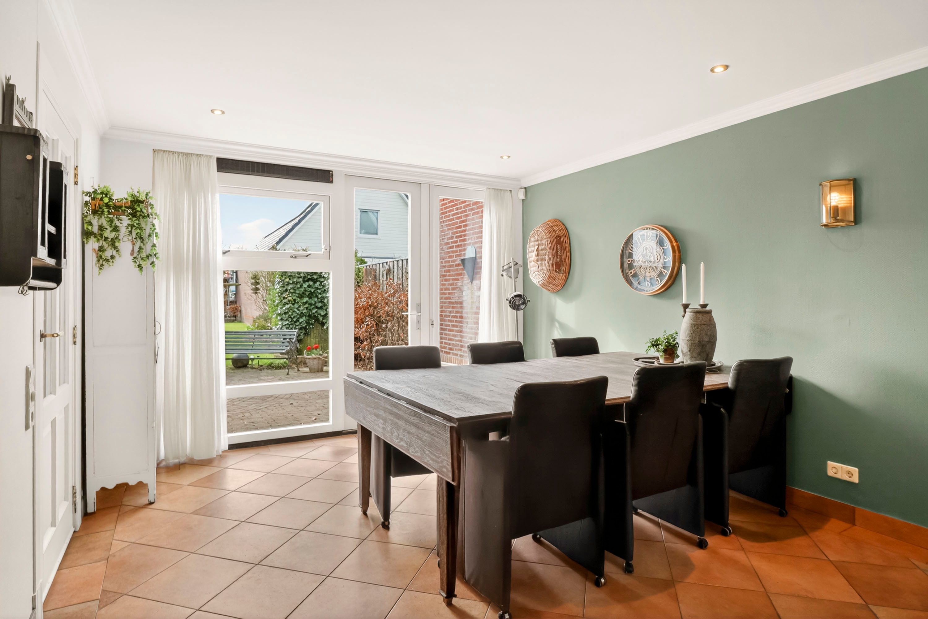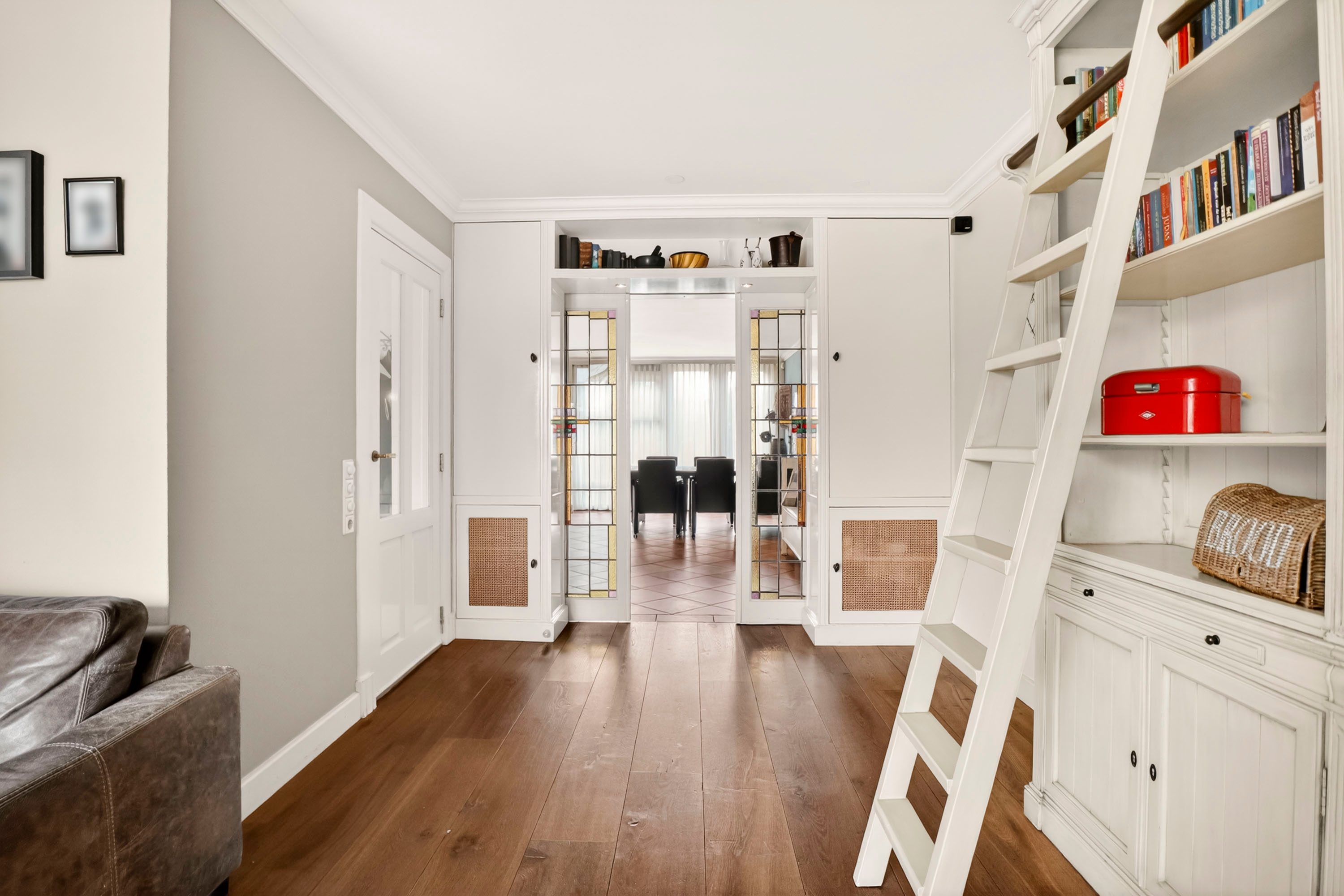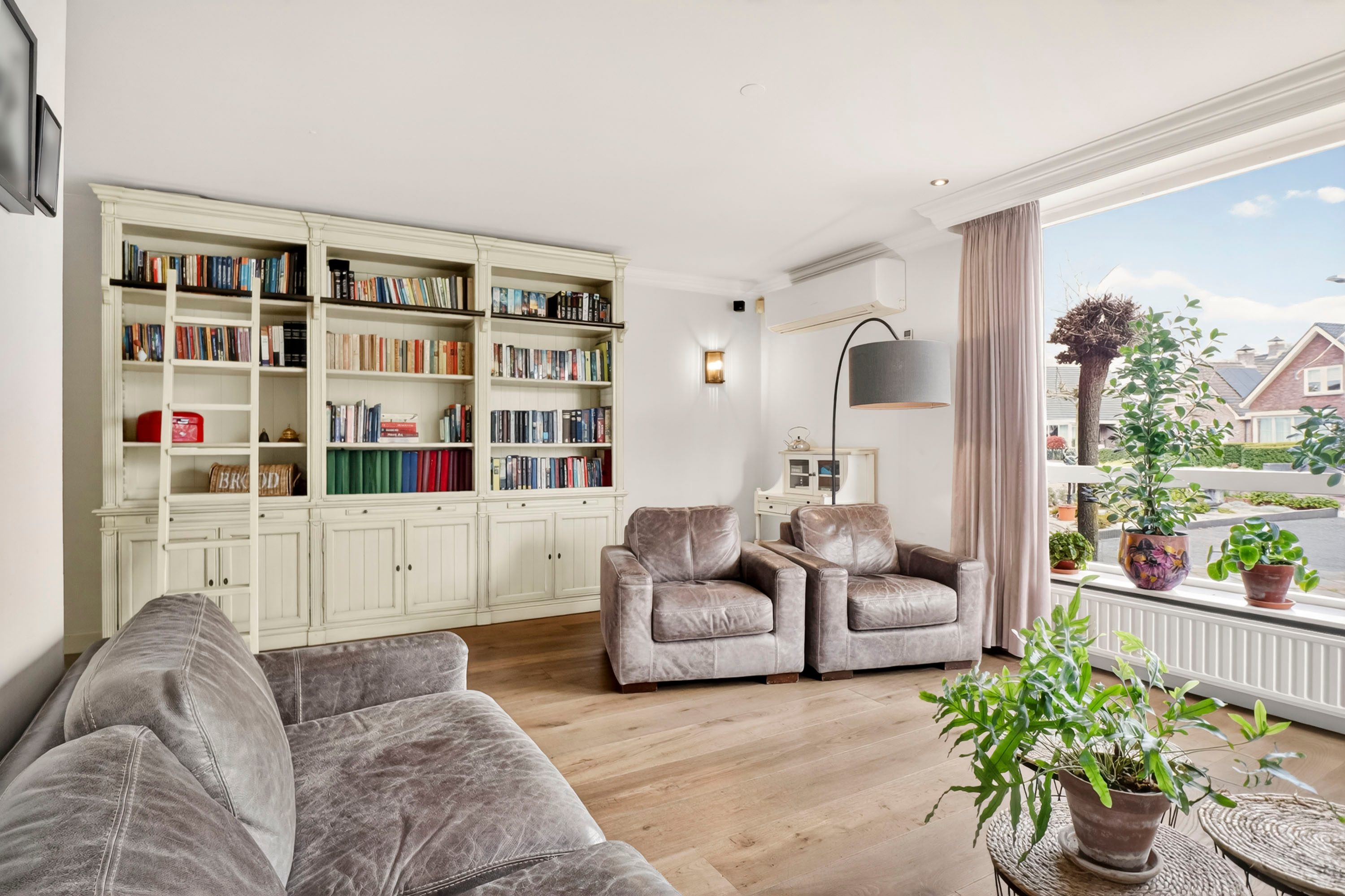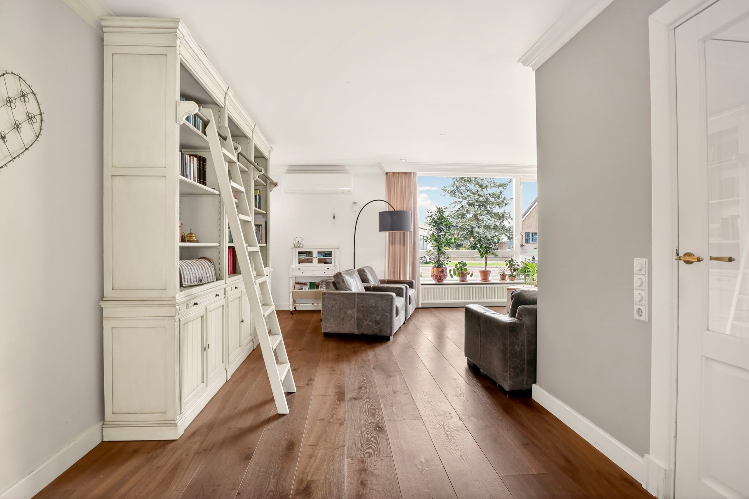 Door de ruime oprit kom je bij de entree. Je komt binnen in een lichte hal met de meterkast en trapopgang. De woonkamer aan de voorzijde straalt karakter uit dankzij de authentieke en-suite deuren. De straatgerichte zithoek is voorzien van een sfeer haard op gas en airconditioning voor de warme zomerdagen. Via de en-suite deuren bereik je de riante woonkeuken aan de achterzijde. Dit is de plek waar geleefd wordt. De robuuste inbouwkeuken is een droom voor elke kookliefhebber, uitgerust met een groot fornuis voorzien van vijf gaspitten, twee ovens, grill en een bakplaat. Uiteraard zijn ook een vaatwasser, koelkast en afzuigkap aanwezig. Door de uitbouw op de begane grond is er volop ruimte voor een grote eettafel.