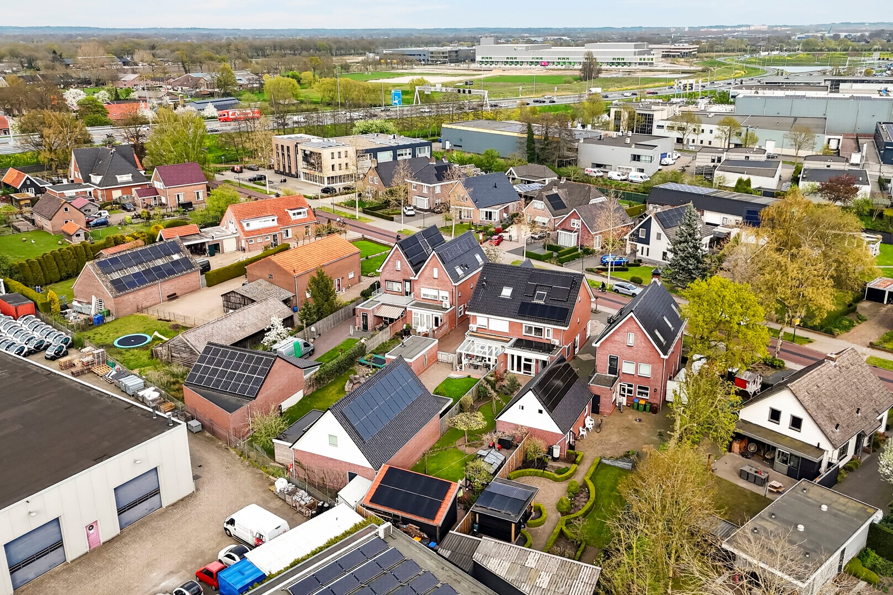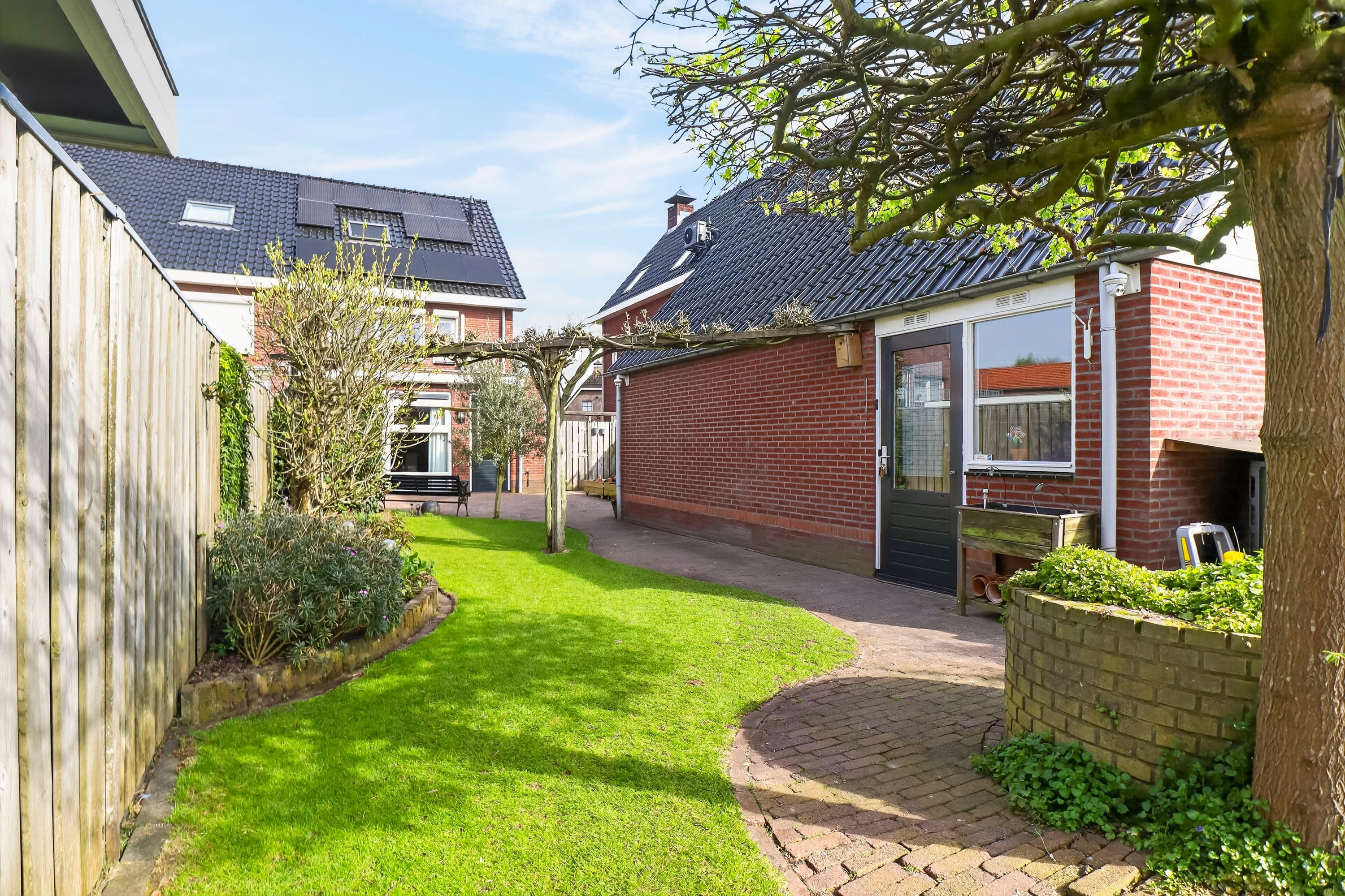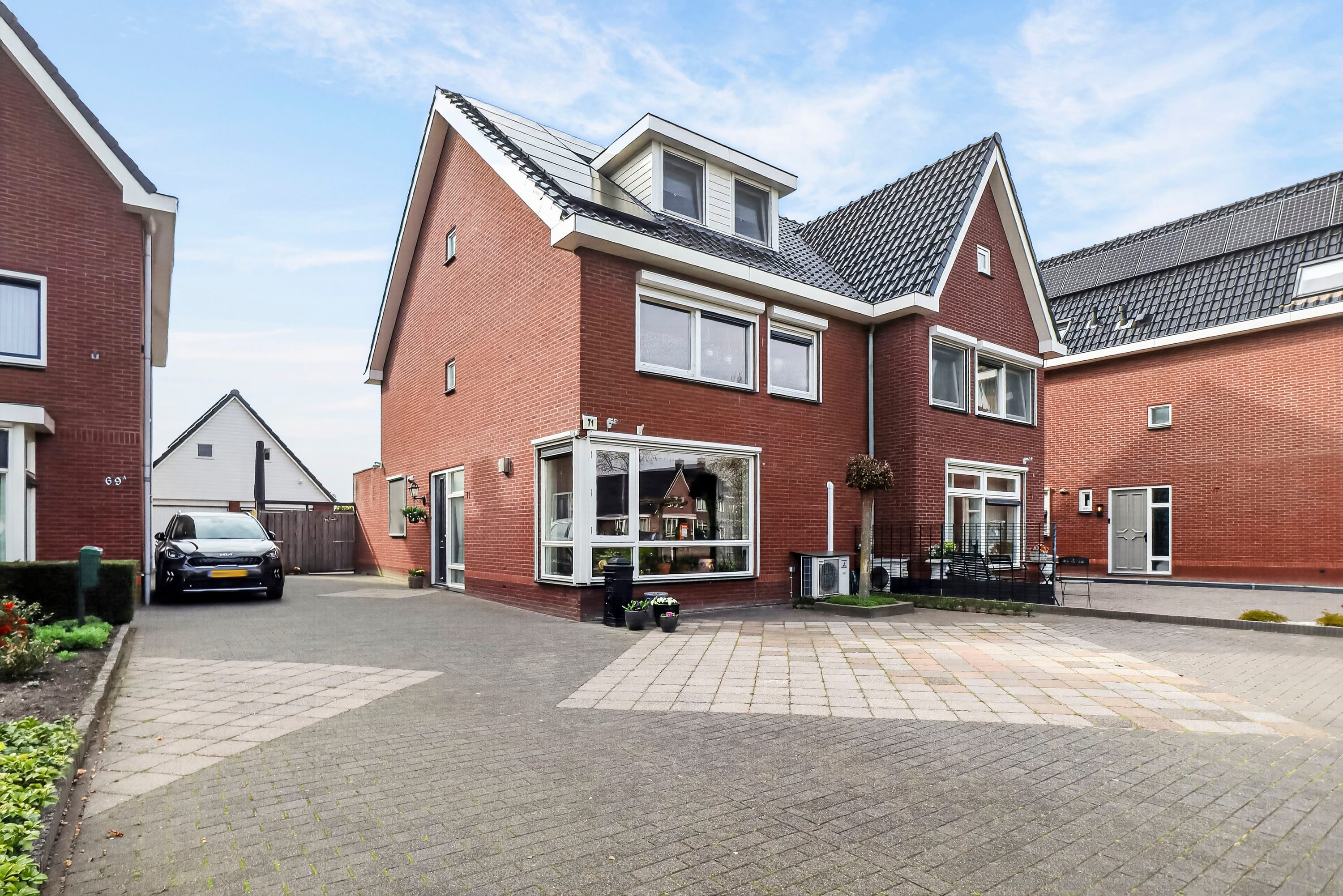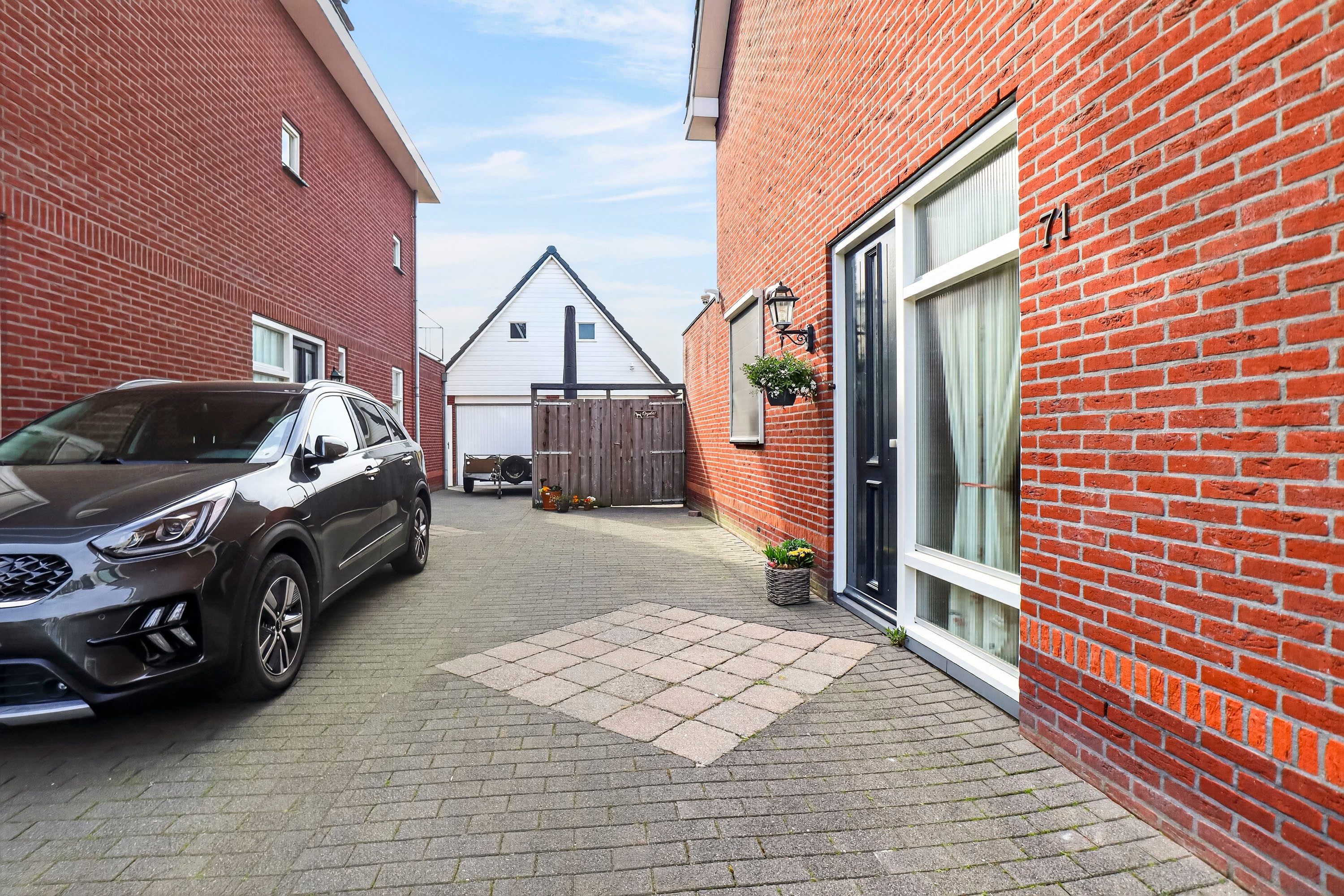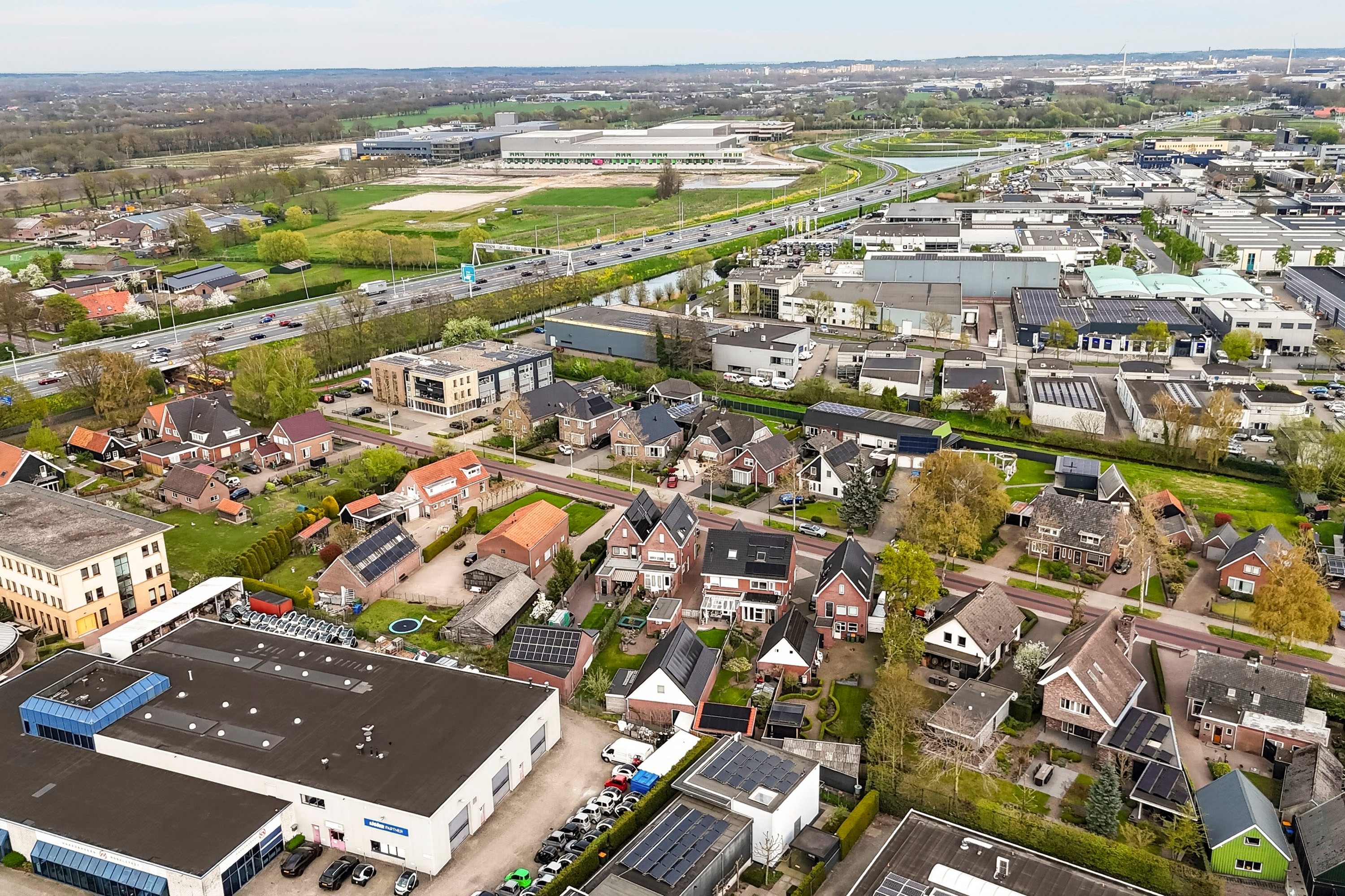 De stenen garage is voorzien van een elektrische kanteldeur en een ruime bergzolder die via een vaste trap bereikbaar is — ideaal als extra hobbyruimte of opslag. Op de eigen oprit is plek voor meerdere auto's.