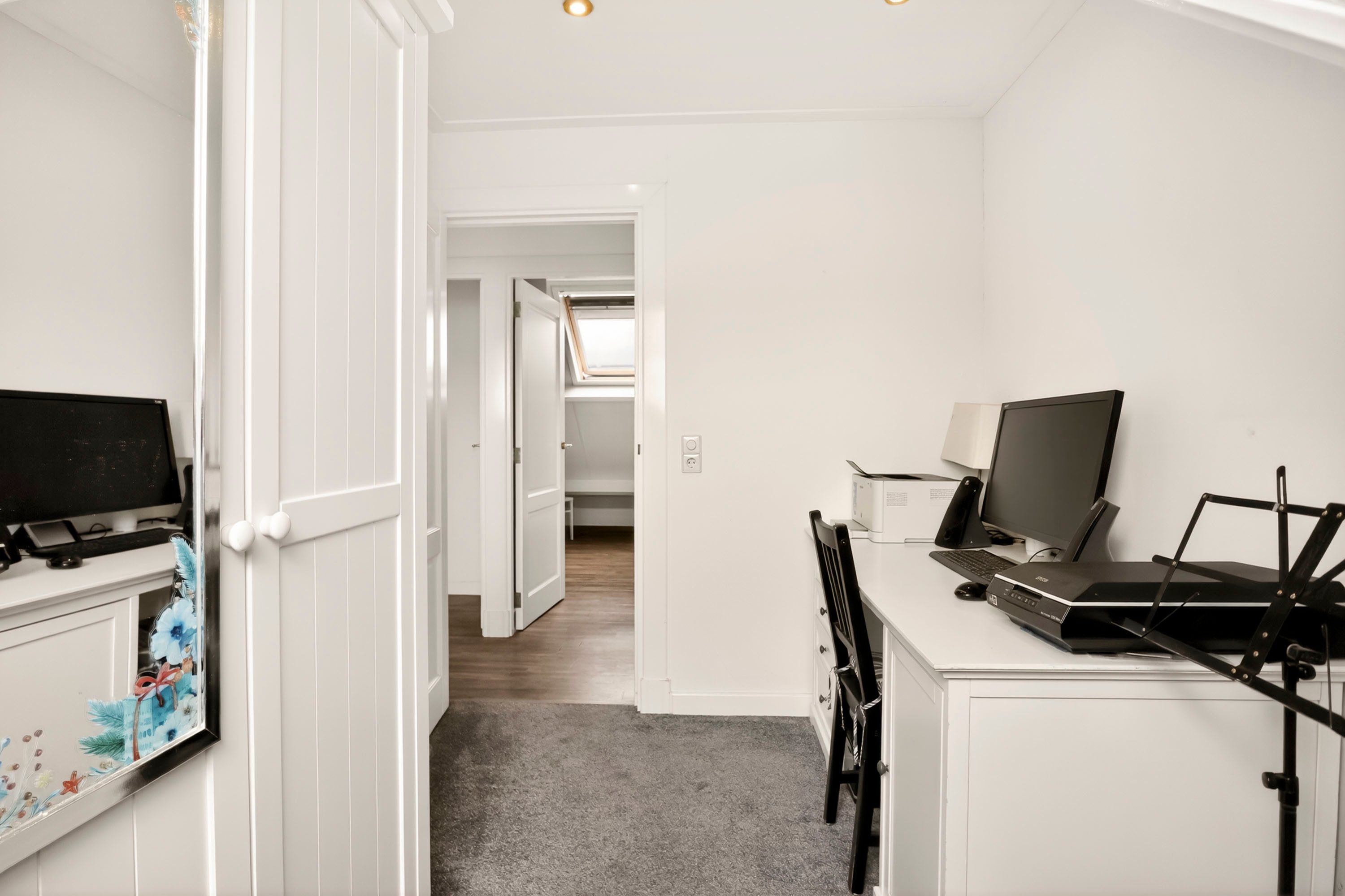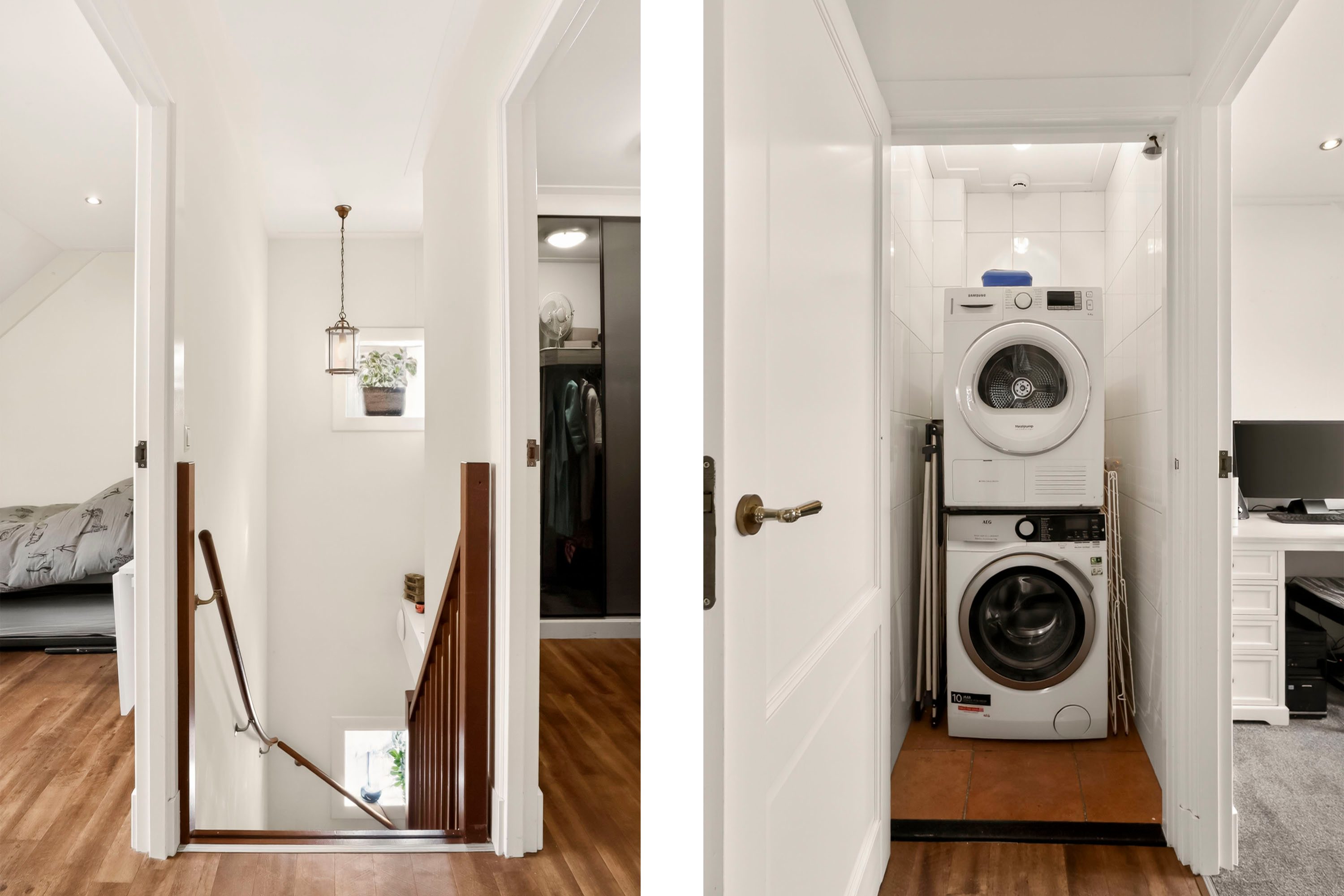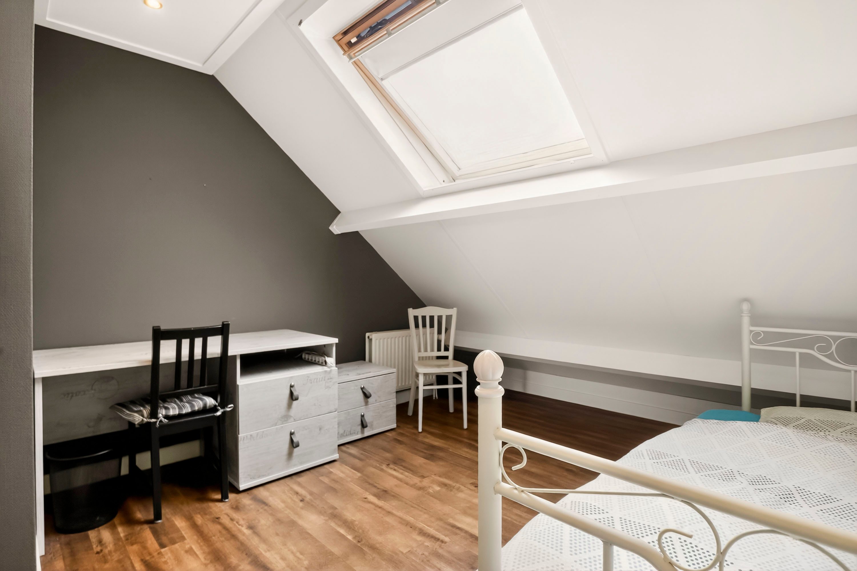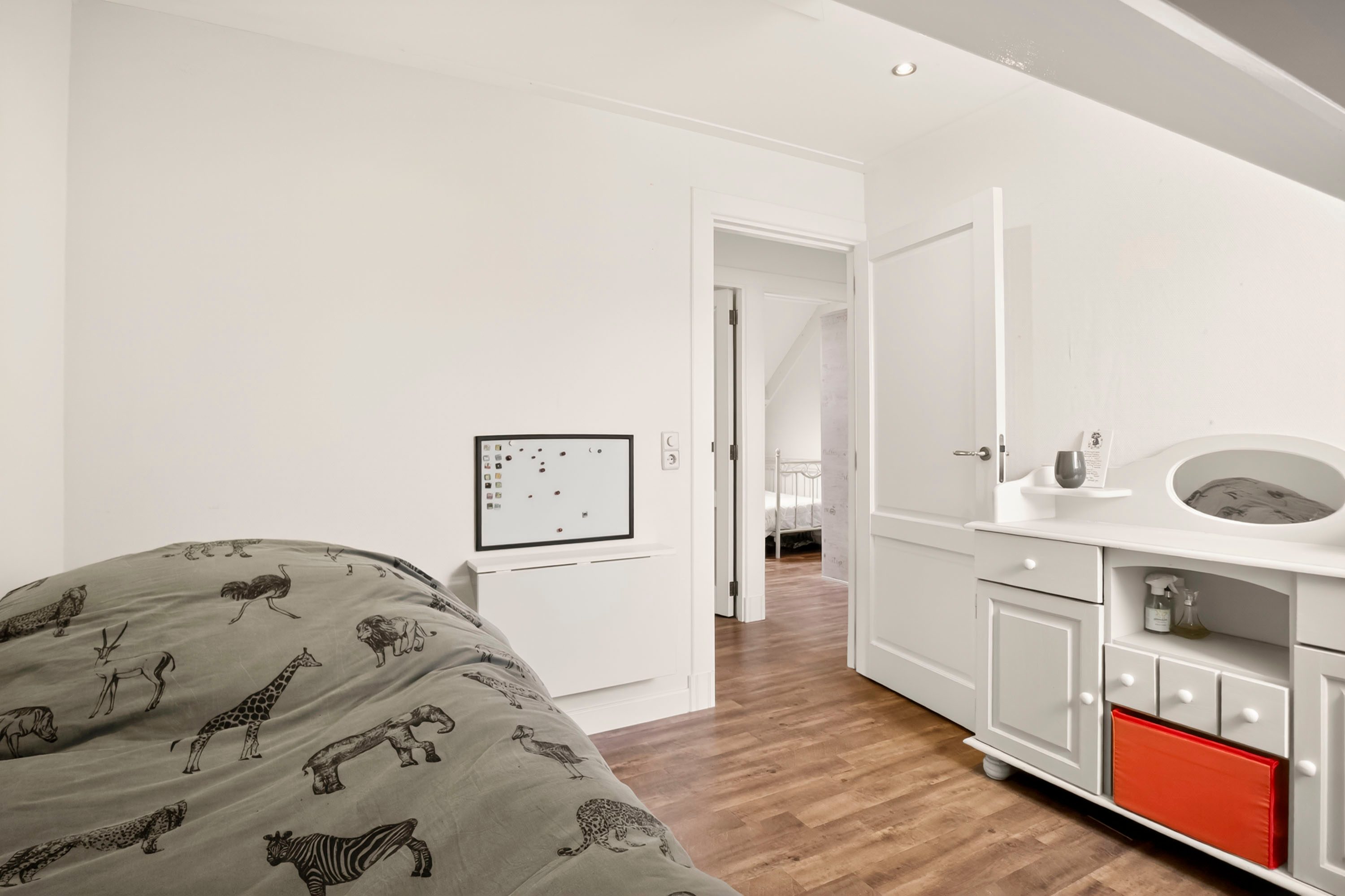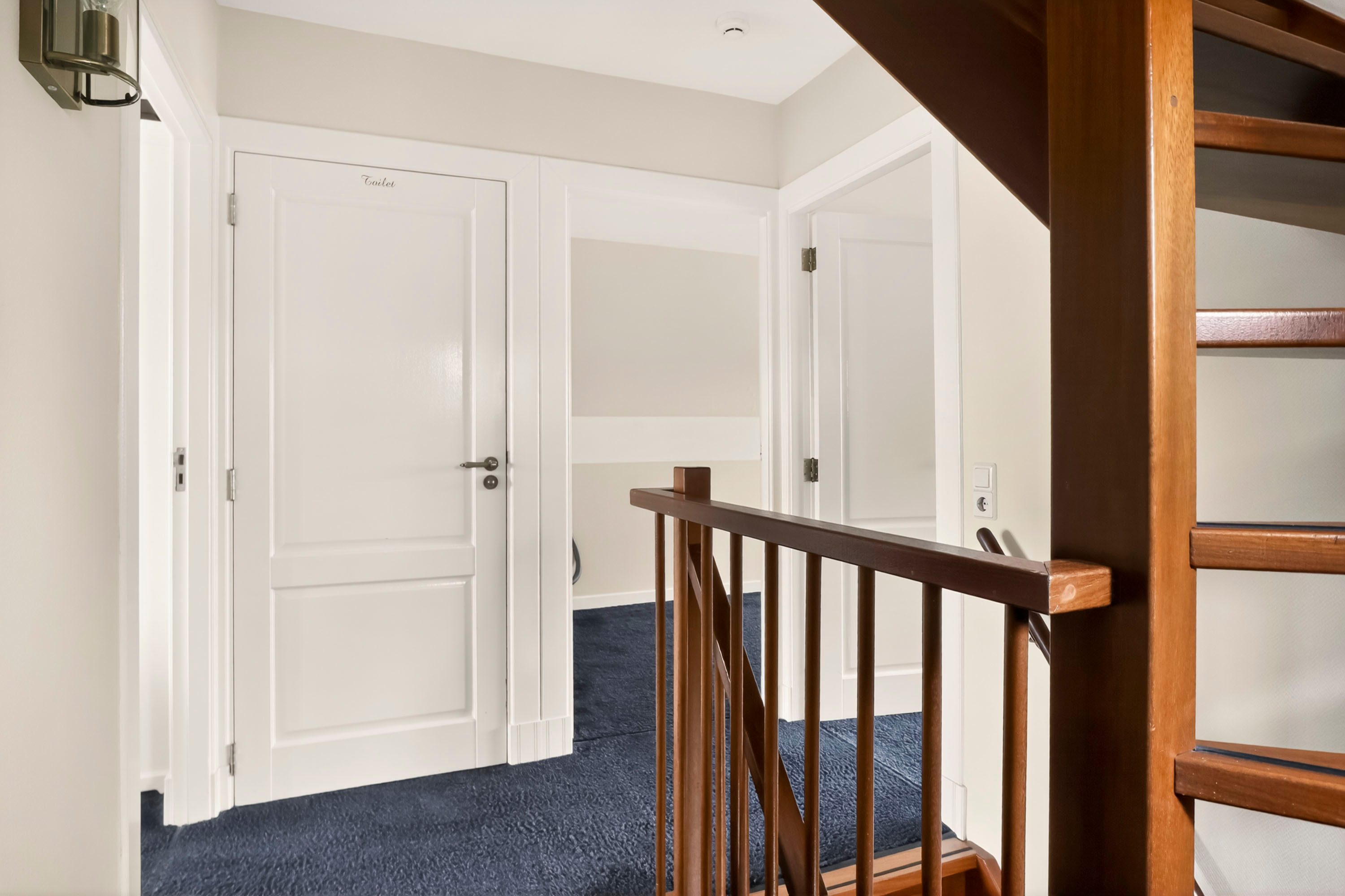 Door middel van de vaste trap kom je op de eerste verdieping. De overloop op de eerste verdieping biedt toegang tot drie royale slaapkamers. Elke kamer is prettig licht en biedt meer dan genoeg ruimte voor een volwaardig bed en een kastenwand. De badkamer is een plek waar je echt tot rust komt; deze is zeer compleet uitgevoerd met zowel een heerlijk ligbad als een aparte inloopdouche. Met het dubbele wastafelmeubel is er voor iedereen genoeg ruimte tijdens de drukke ochtendspits. Erg praktisch: op deze verdieping bevindt zich een separaat toilet, wel zo prettig voor de privacy in de badkamer.