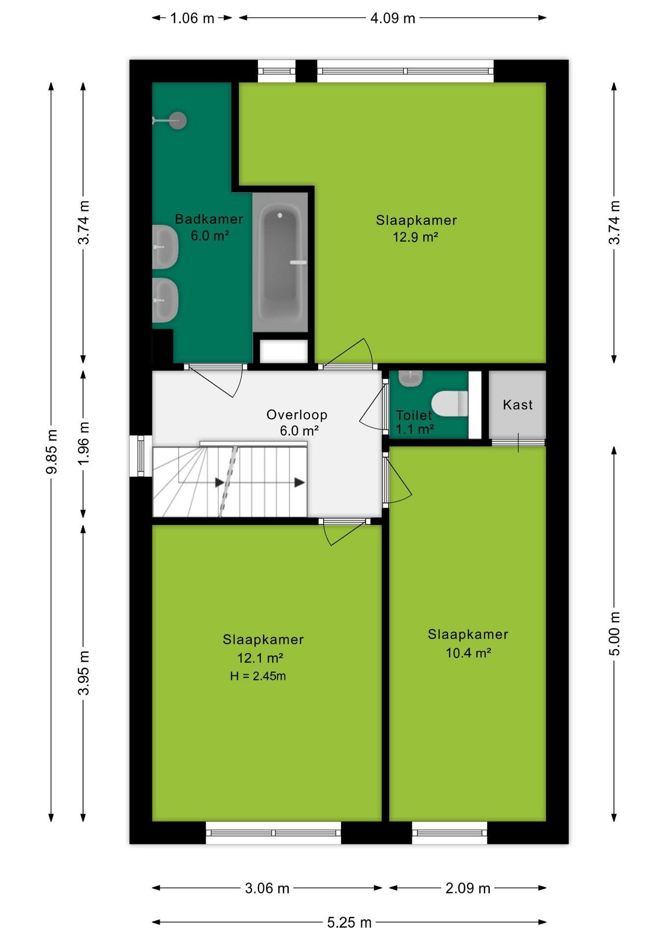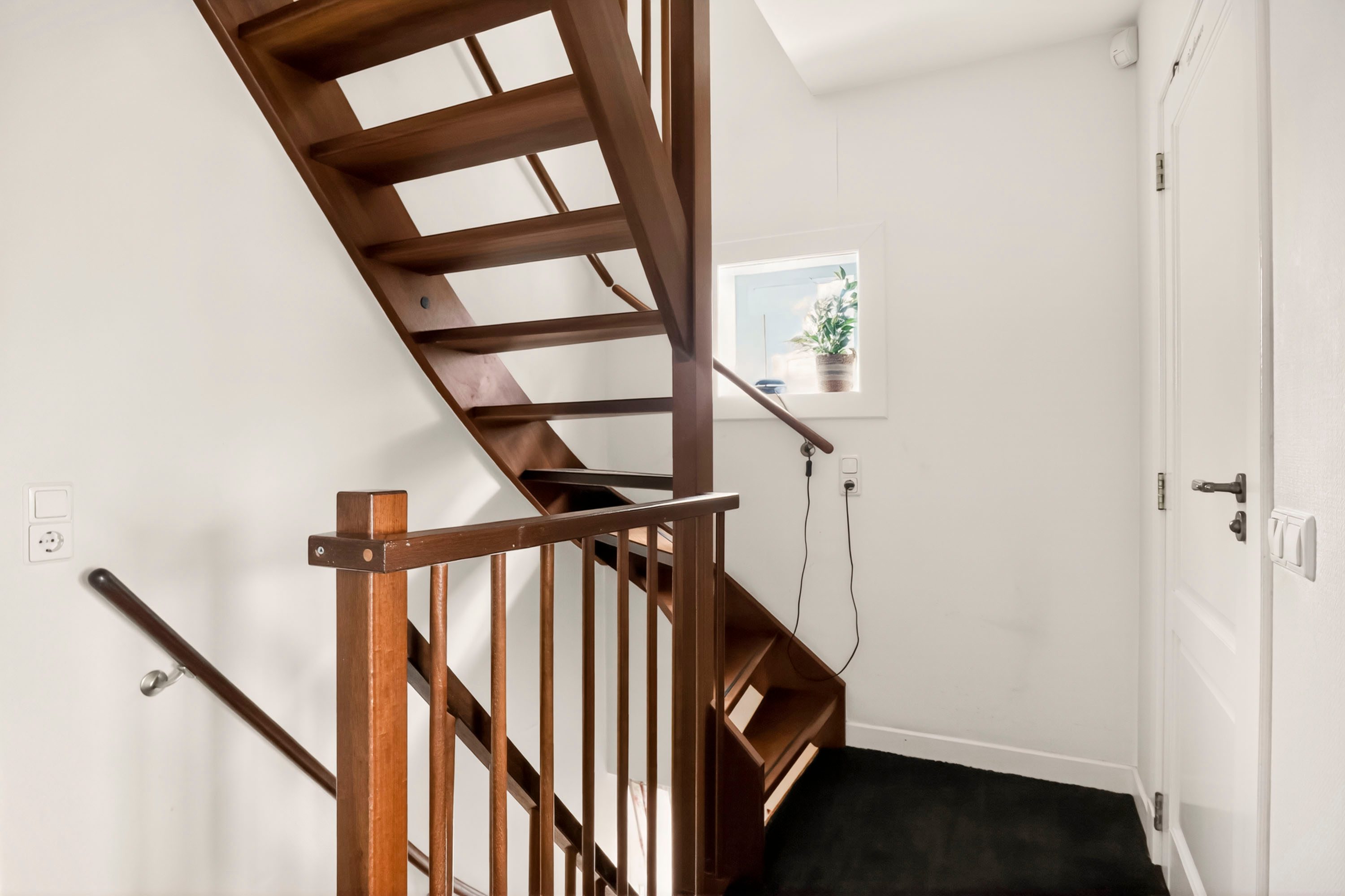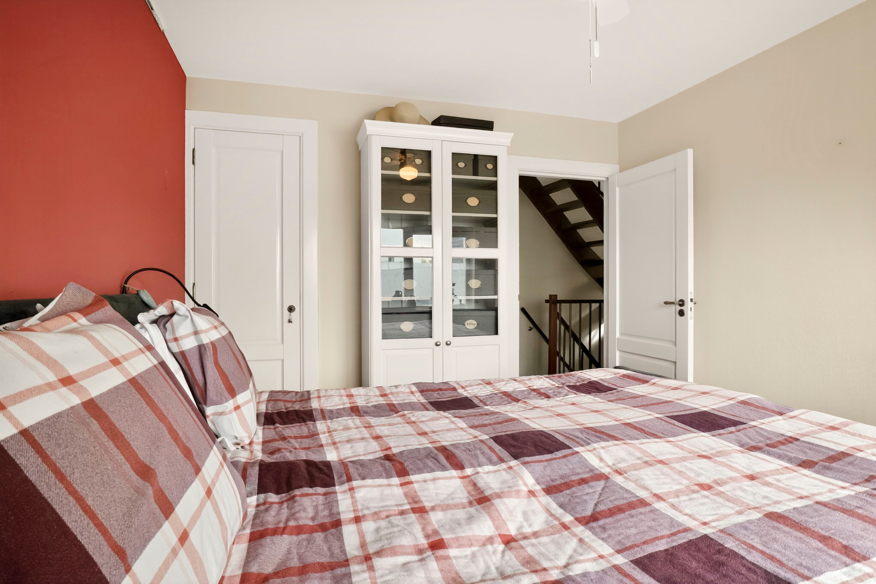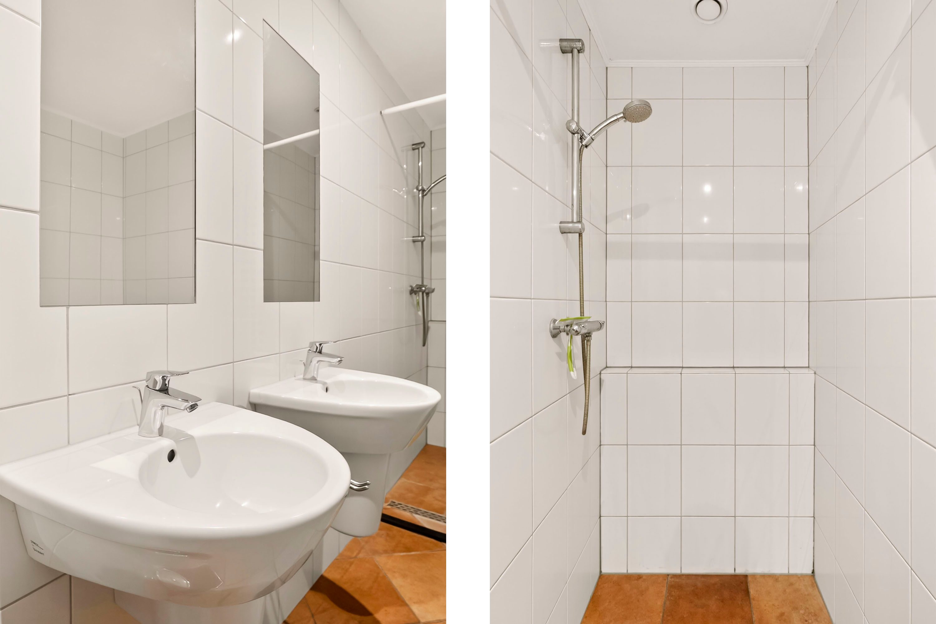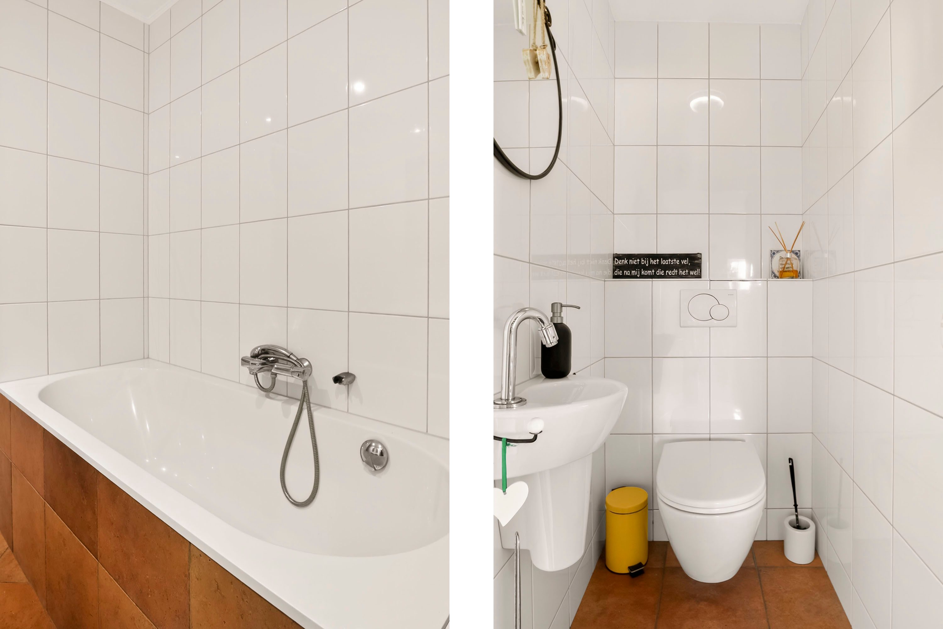 Door middel van de vaste trap kom je op de eerste verdieping. De overloop op de eerste verdieping biedt toegang tot drie royale slaapkamers. Elke kamer is prettig licht en biedt meer dan genoeg ruimte voor een volwaardig bed en een kastenwand. De badkamer is een plek waar je echt tot rust komt; deze is zeer compleet uitgevoerd met zowel een heerlijk ligbad als een aparte inloopdouche. Met het dubbele wastafelmeubel is er voor iedereen genoeg ruimte tijdens de drukke ochtendspits. Erg praktisch: op deze verdieping bevindt zich een separaat toilet, wel zo prettig voor de privacy in de badkamer.