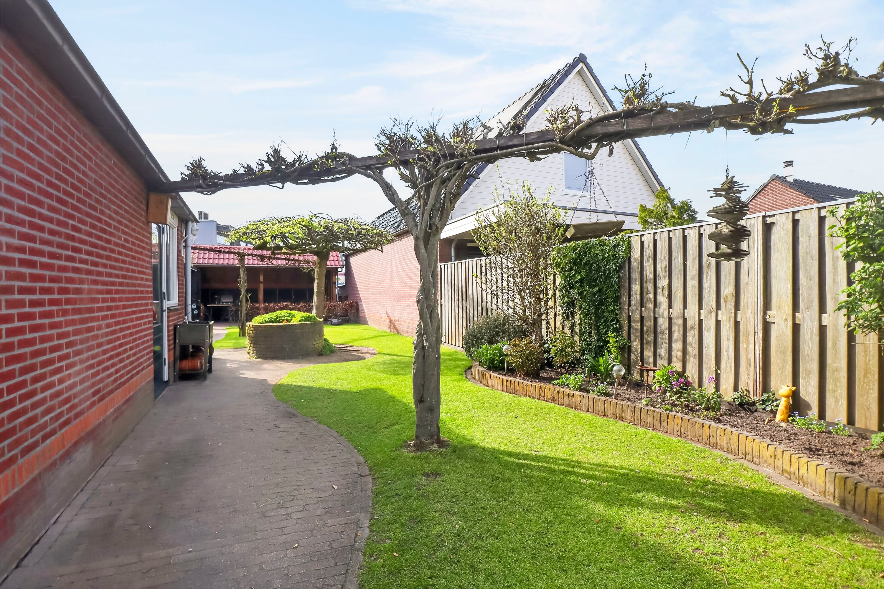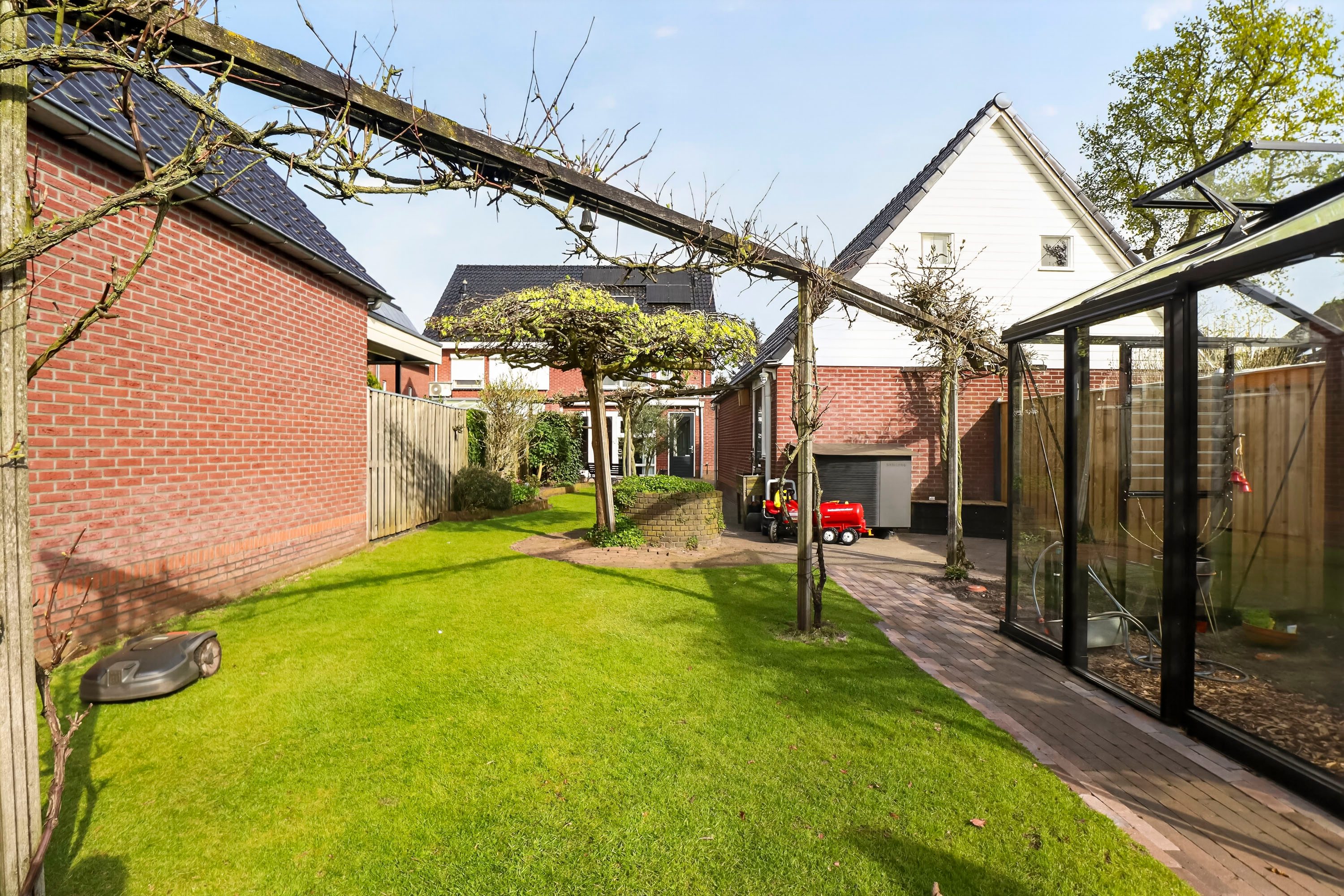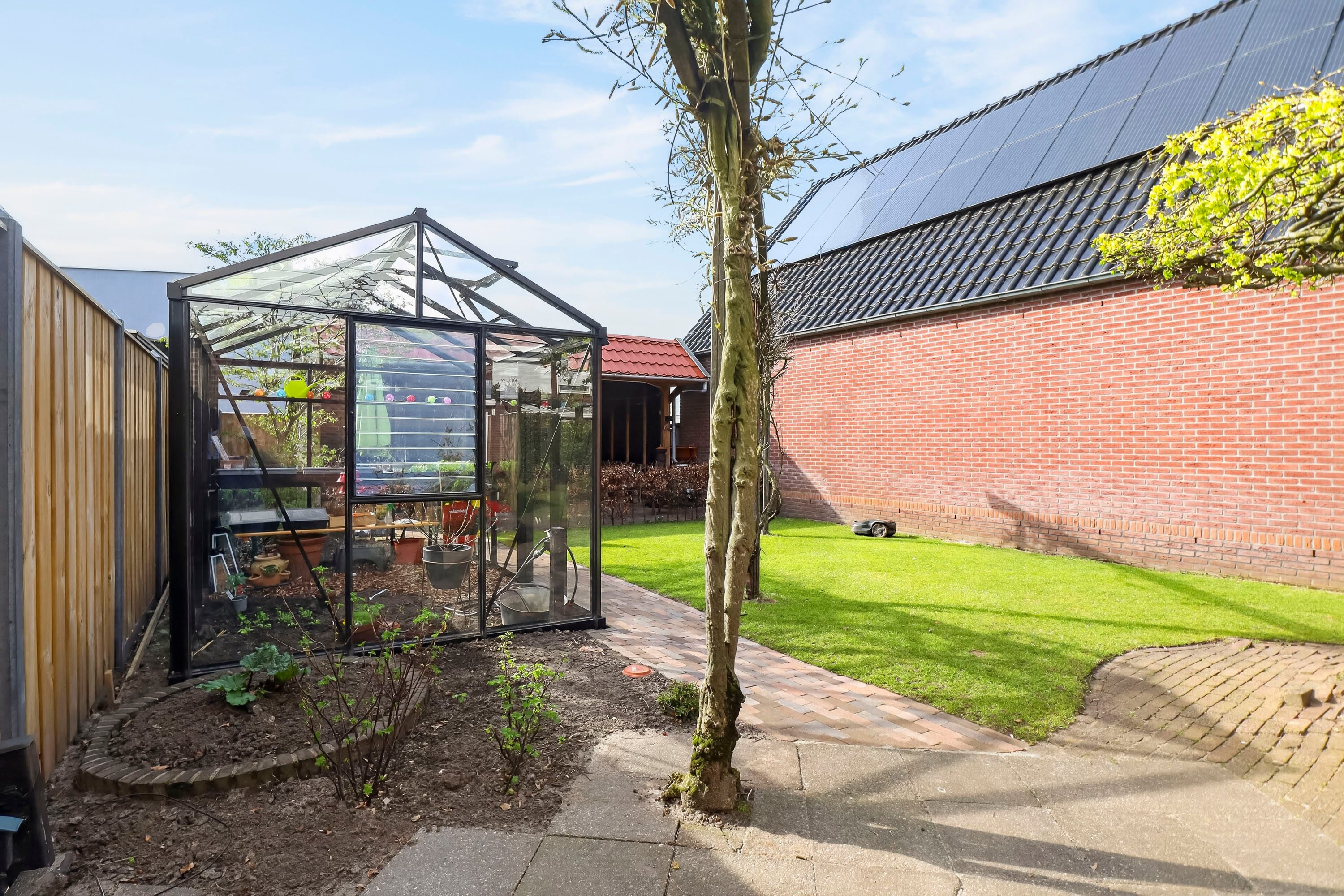 De tuin is een paradijs voor de buitenliefhebber. Gelegen op het zonnige zuidwesten en verzorgd aangelegd met een gazon, diverse beplantingen en een eigen beregeningsinstallatie met bron. De absolute blikvanger is de luxe veranda waar je tot laat in de avond heerlijk beschut kunt zitten. Voor de tuinliefhebber is er zelfs een eigen plantenkas.