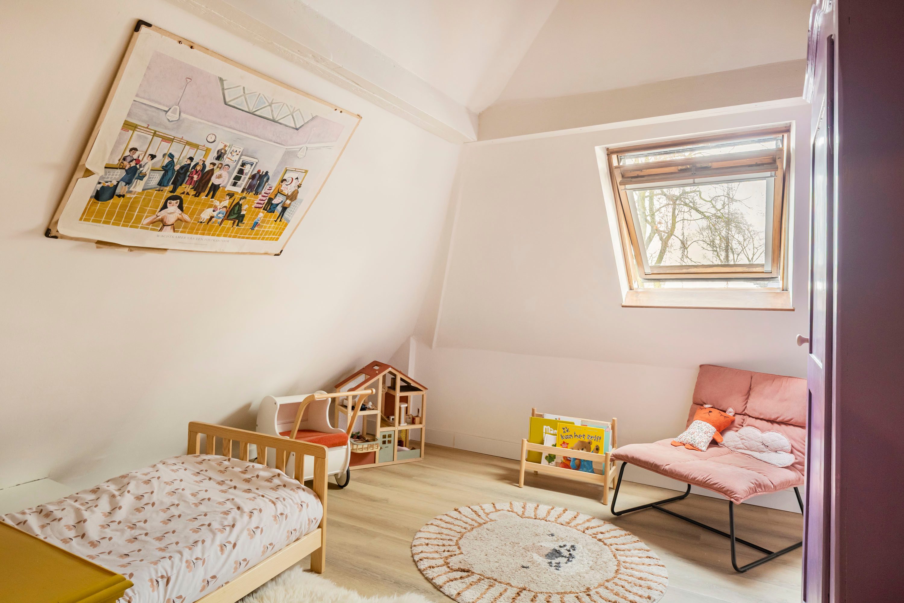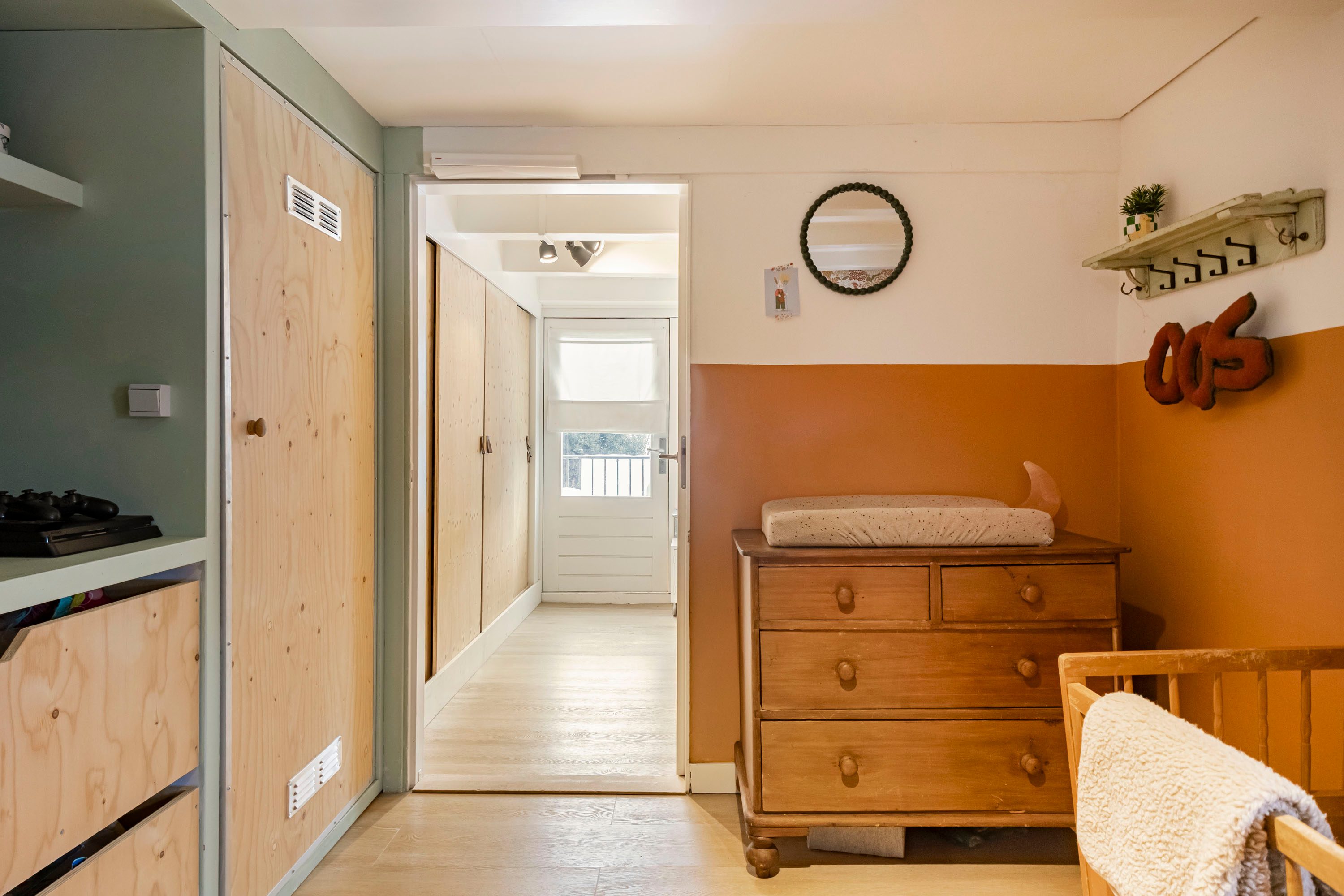 Via een vaste trap bereik je de tweede verdieping, waar zich nog twee slaapkamers bevinden van respectievelijk 4,5 m² en 6,3 m². De kleinste kamer is voorzien van een dakkapel (vernieuwd in 2023), terwijl de grotere kamer beschikt over een dakraam. Daarnaast bevindt zich op deze verdieping een in 2023 vernieuwde/gemoderniseerde badkamer van 3,1 m², die is voorzien van elektrische vloerverwarming en uitgevoerd in een speelse kleurstelling. De badkamer beschikt over een wastafelmeubel, inloopdouche, ligbad en toilet, wat zorgt voor optimaal comfort.