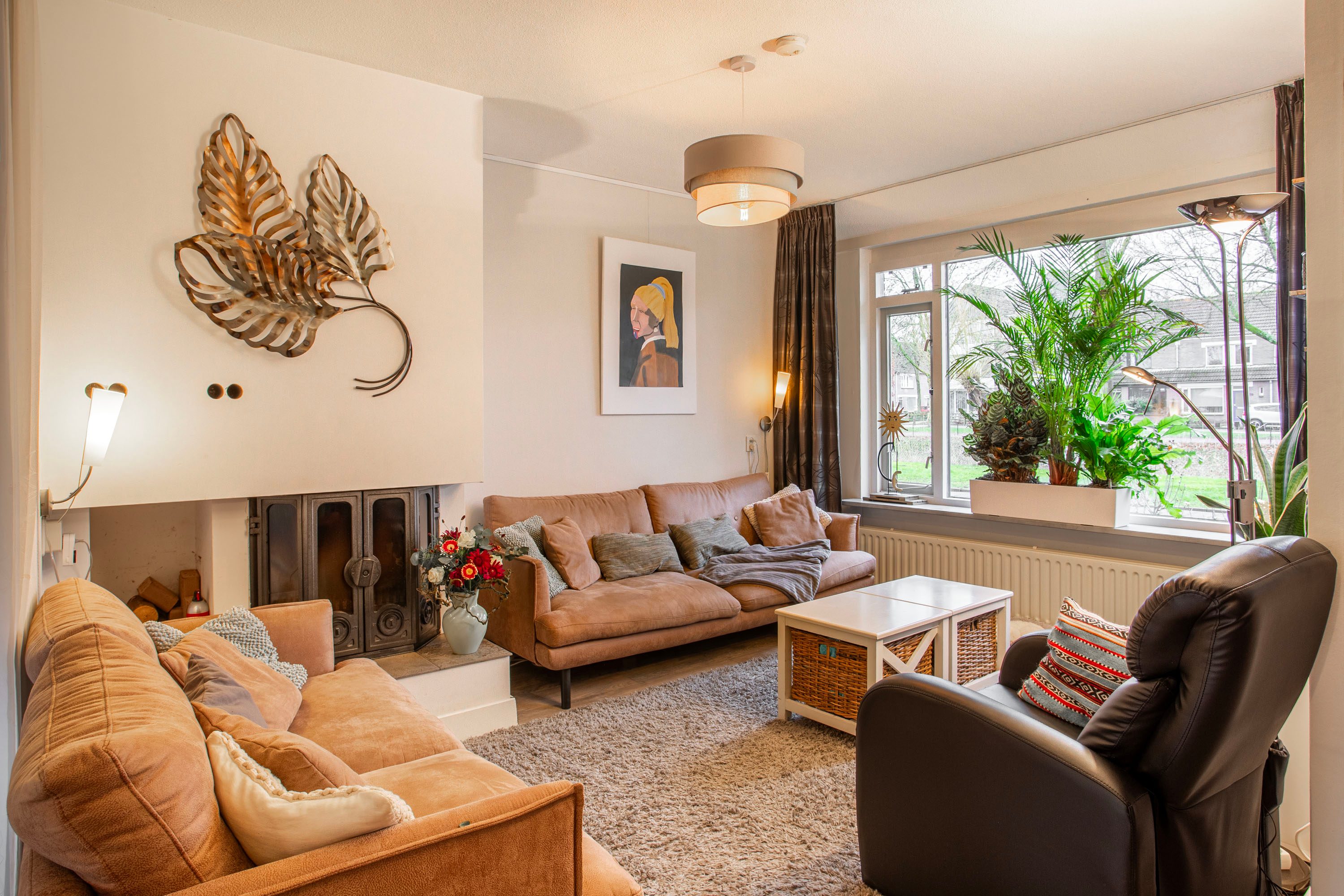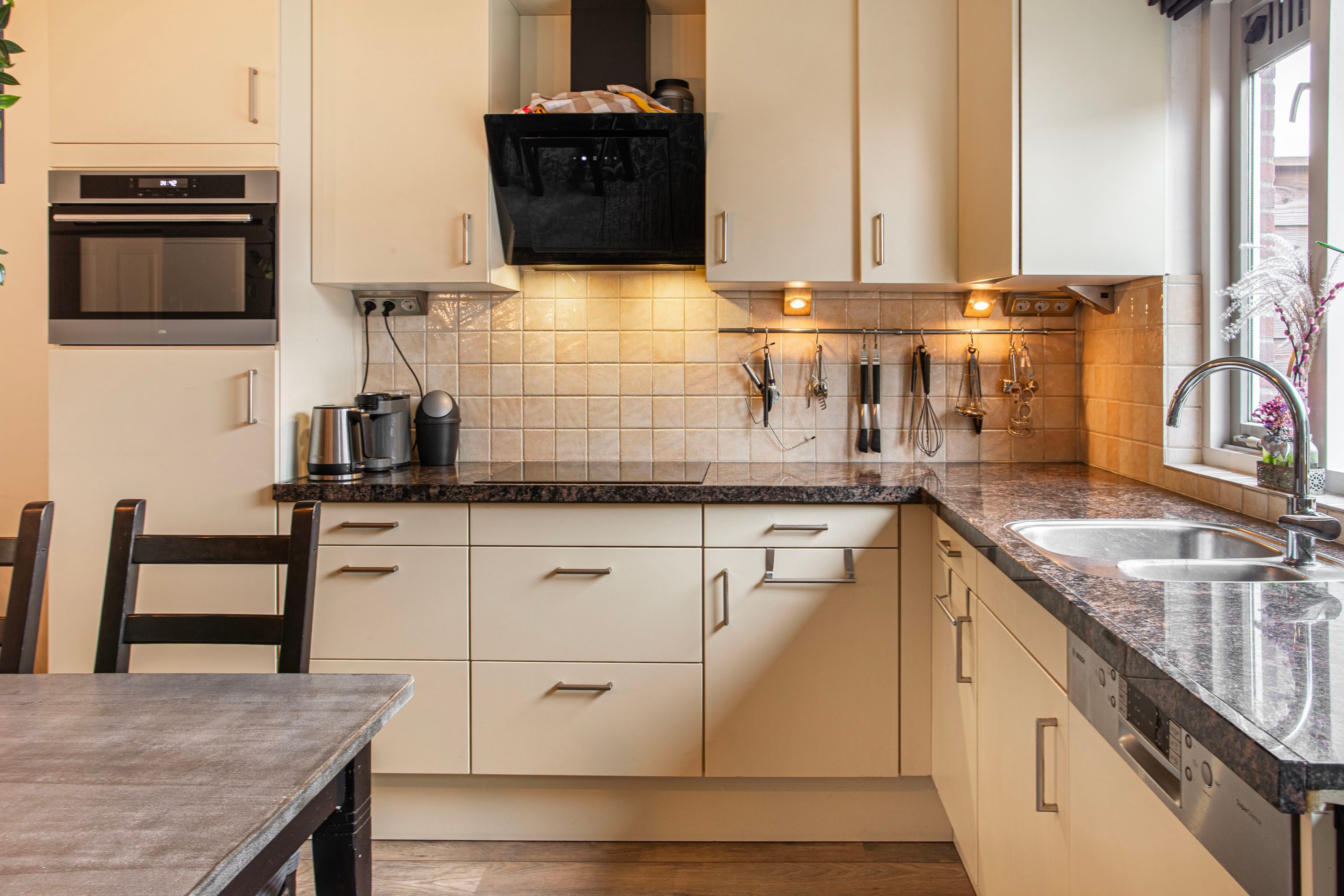 Via de hal en entree met meterkast is de woonkamer te bereiken. De woonkamer heeft een afmeting van maar liefst ca. 32m², is voorzien van heerlijk veel lichtinval, een sfeervolle hoog rendements haard en laminaatvloer. Door de ruime indeling is er plek genoeg voor een grote eettafel en ontstaat er een gezellige verbinding tussen de woonkamer en de keuken. De keuken heeft een lichte kleurstelling en beschikt over diverse inbouwapparatuur: een inductiekookplaat, afzuigkap, combi-oven/ magnetron, close-in boiler, koel-vriescombinatie en vaatwasser.