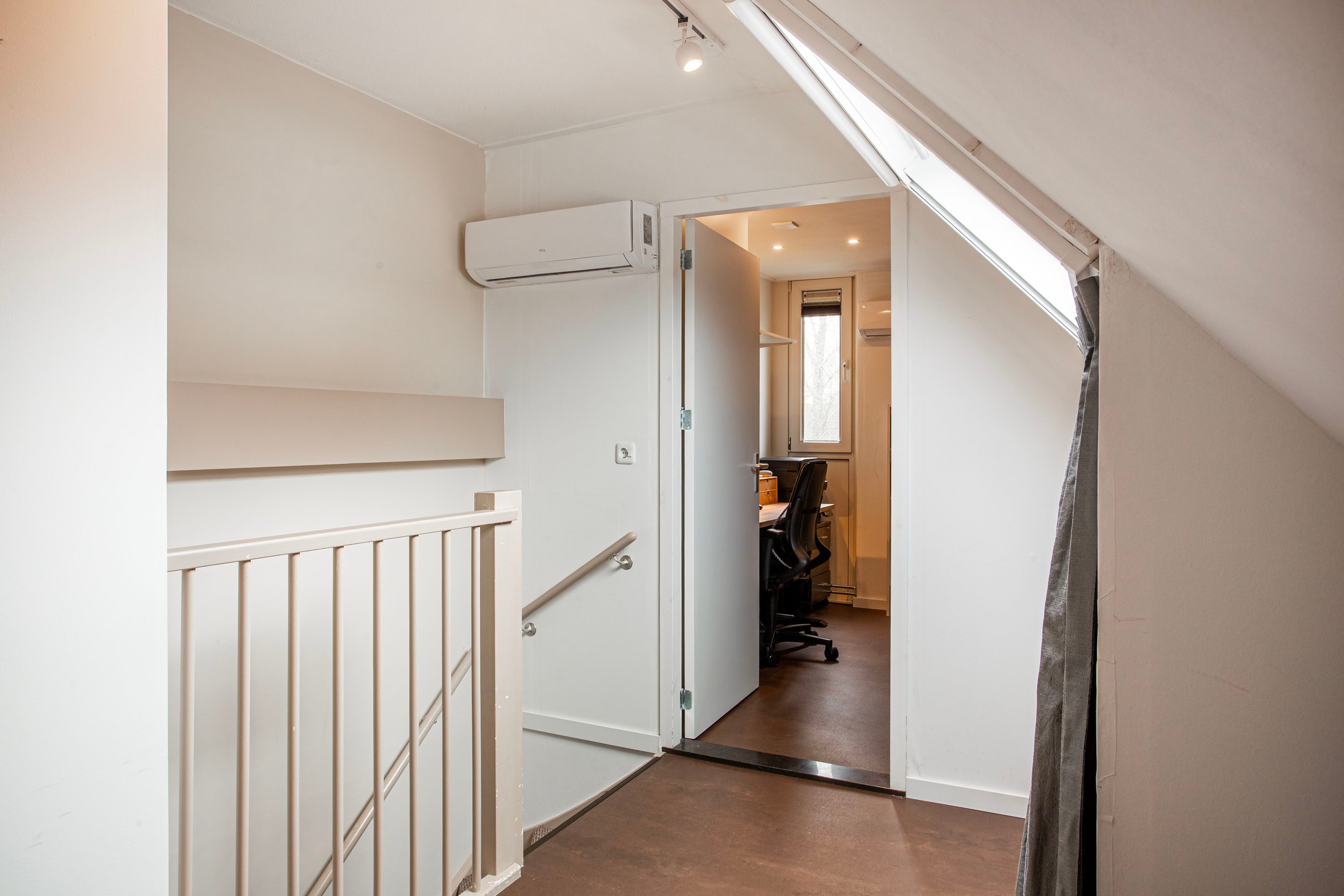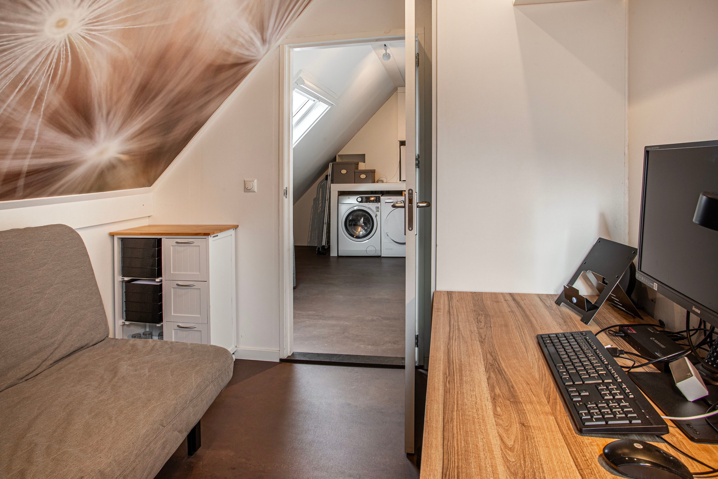 Via de overloop met witgoedaansluiting is de 4e (slaap)kamer te bereiken. Deze kamer heeft nog een afmeting van ca. 7m² en is multifunctioneel te gebruiken. Mede door de airco is het hier extra aangenaam.