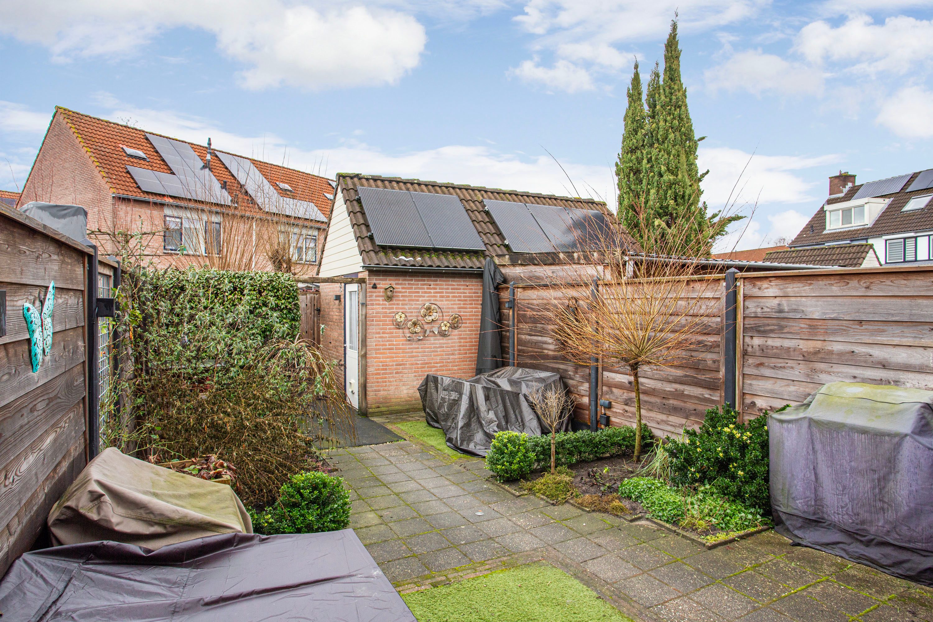 De tuin heeft een zeer prettige indeling en er zijn gemakkelijk meerdere terrasjes of speelplekjes te creëren. Door de goede diepte is er altijd wel een plek in de zon of de schaduw te vinden. Aan de achterzijde van de tuin bevindt zich een handig schuurtje en een achterom.