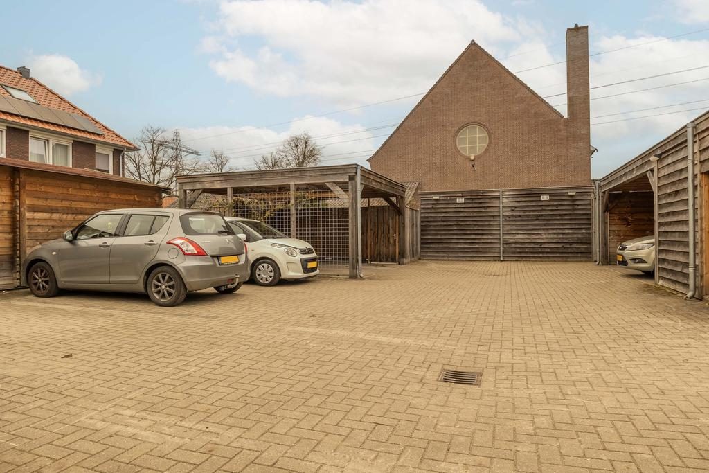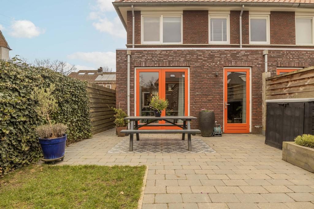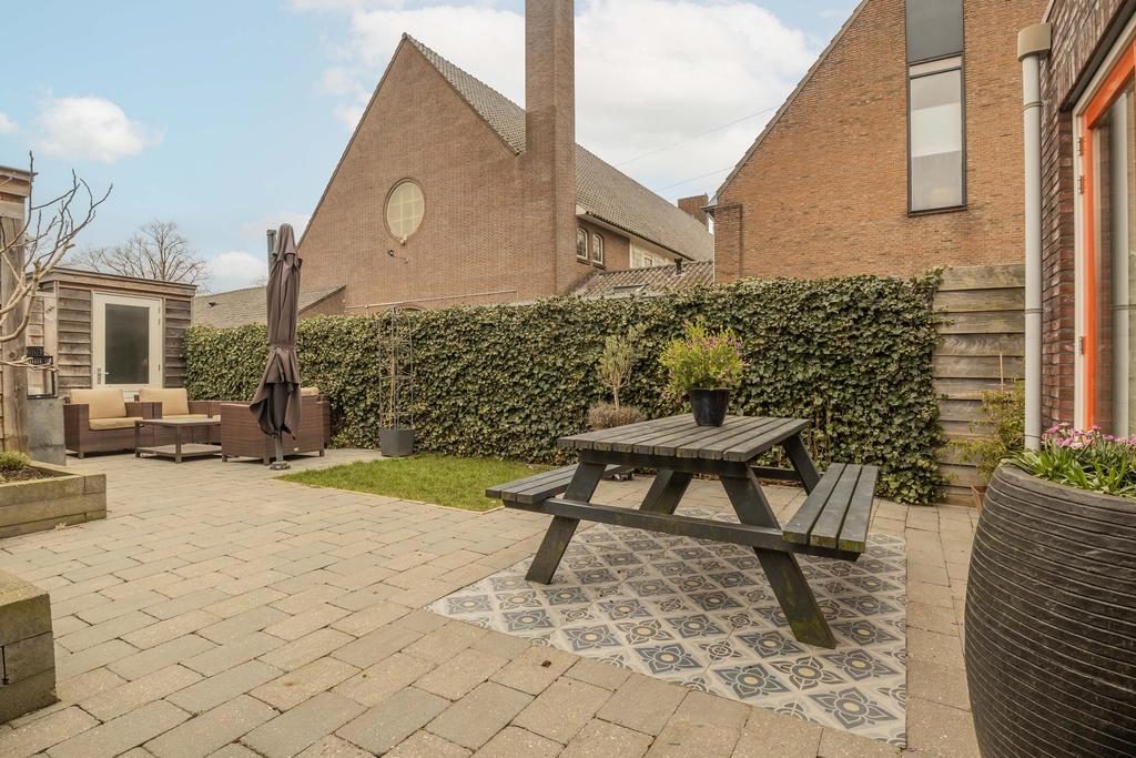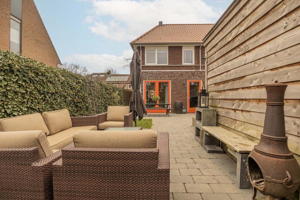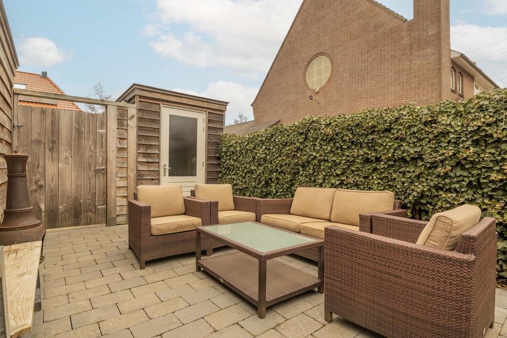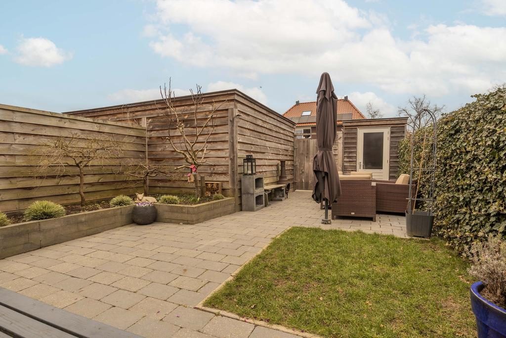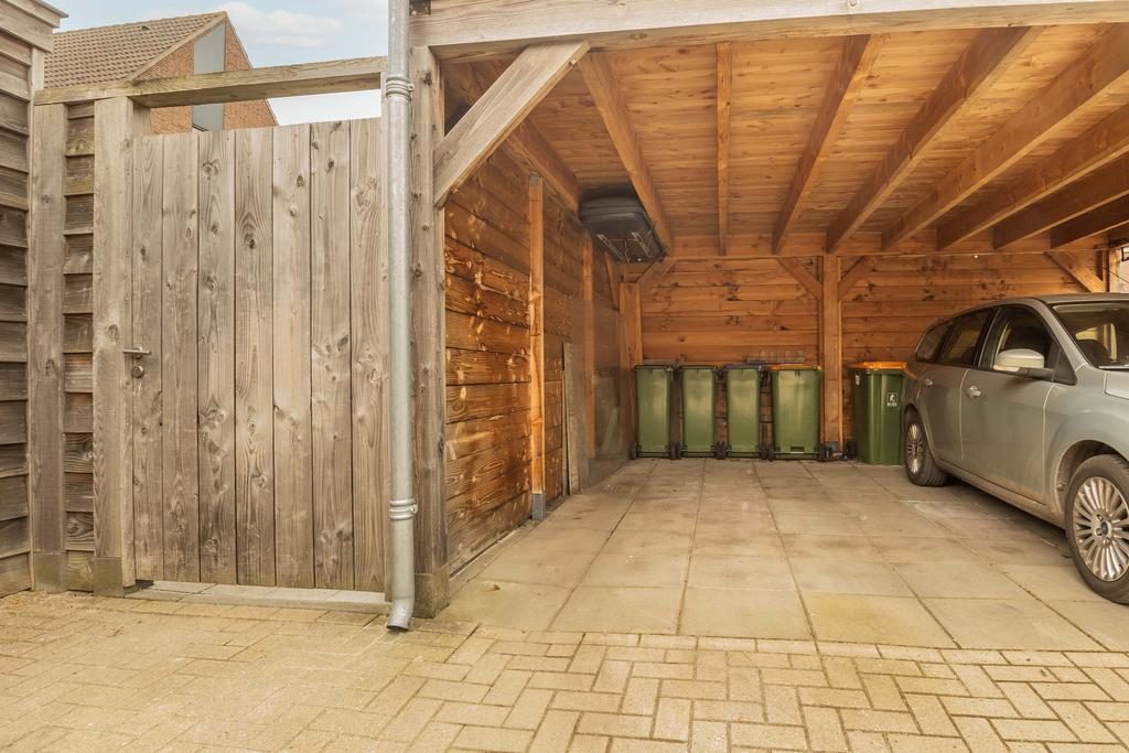 De achtertuin is gesitueerd op het westen, is verzorgd aangelegd en biedt meer dan voldoende ruimte voor meerdere zitplekken. Uiteraard is er ook aan groen gedacht. De borders zijn voorzien van diverse soorten beplanting, de schutting is voorzien van een klimop en er ligt gras. De woning is aan de achterzijde voorzien van een buitenkraan. Aan de achterzijde staat een houten berging en een carport voor het parkeren van je eigen auto op eigen terrein. Achter de woning is een rustig hofje met extra parkeergelegenheid waar alleen aanwonenden komen. Een ideale plek waar kinderen rustig kunnen spelen. Ook via de voortuin is de achtertuin te bereiken, via een pad langs het huis en een af te sluiten poort.