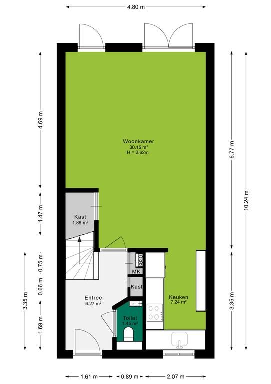 - Openslaande tuindeuren met een extra loopdeur naar de achtertuin