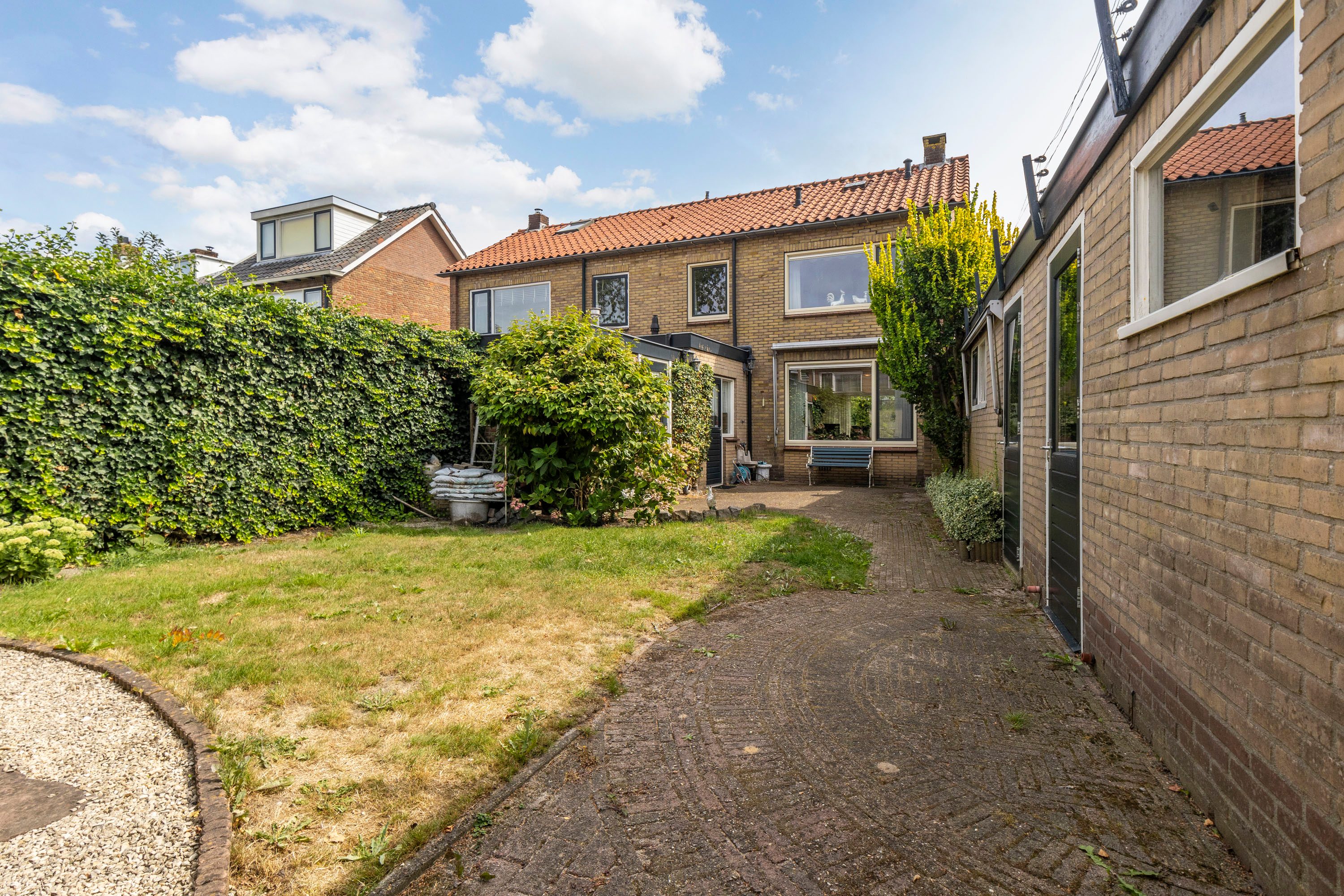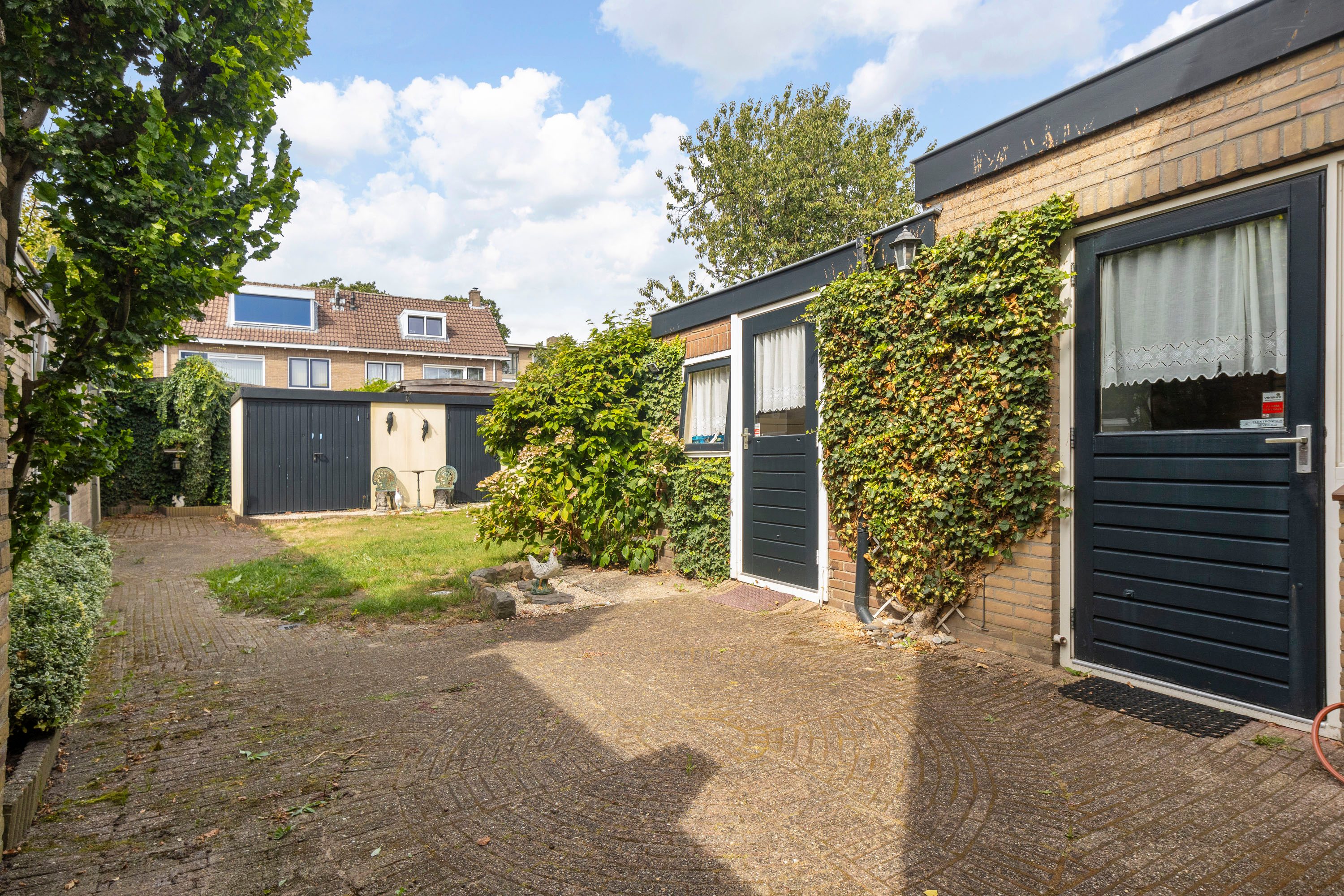 Een riante diepe en brede achtertuin en gelegen op het westen. Een ideale combinatie om van vele zonuren te genieten. Er is tevens meer dan voldoende ruimte voor kinderen om heerlijk te spelen. De tuin verleent toegang tot de garage en meerdere bijgebouwen/bergingen—ideaal voor extra opslag of het uitoefenen van een hobby.