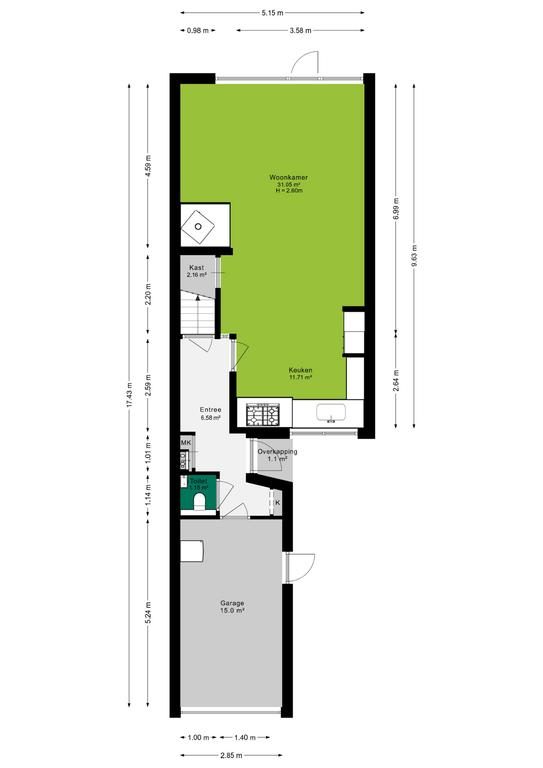 - Garage van 15 m².