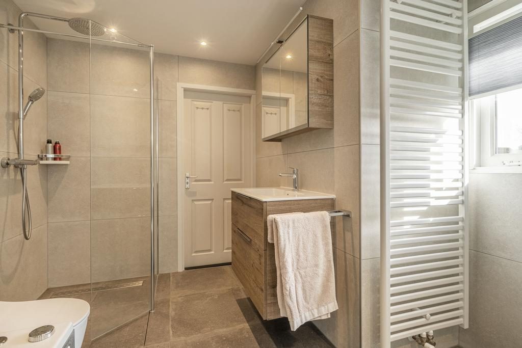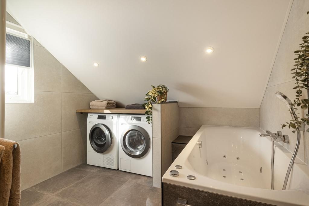 De badkamer is de absolute eyecatcher van het huis. In september 2024 volledig vernieuwd waarbij niet is bezuinigd op kwaliteit of luxe. Zo is de ruime badkamer o.a. voorzien van een 2e toilet, een inloopdouche met regendouchekop, een wastafelmeubel met enkele wastafel en een ligbad met whirlpool. Tevens bevinden zich in de badkamer aansluitingen voor de wasmachine en droger.