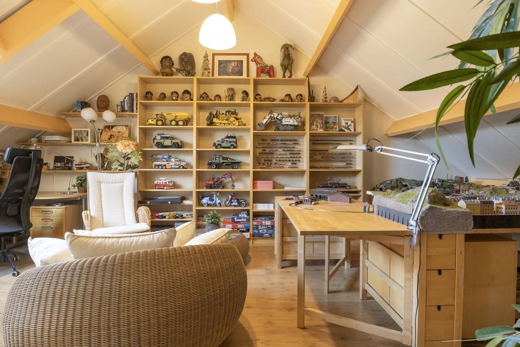 Een vaste houten trap brengt je naar de 2e verdieping. Ook hier ervaren we de enorme ruimte die in het huis zit. De 2e verdieping is opgedeeld in een berging met daarin de CV-ketel, een kast en een riante 4e slaapkamer van ruim 29 m². Mocht je een extra slaapkamer nodig hebben dan is deze verdieping uiteraard eenvoudig aan te passen zodat er een 5e slaapkamer ontstaat.