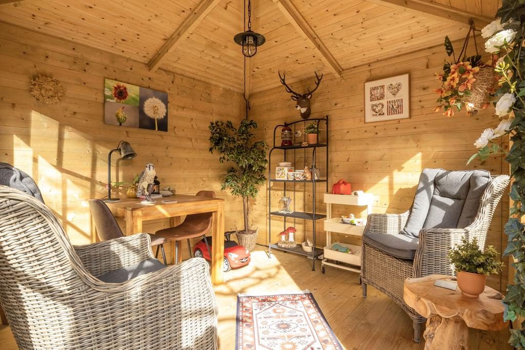 In de tuin zijn tevens twee vrijstaande houten bijgebouwen waarbij de ene dient als schuur/berging en de andere als een tuinhuisje waar je heerlijk in kunt zitten.