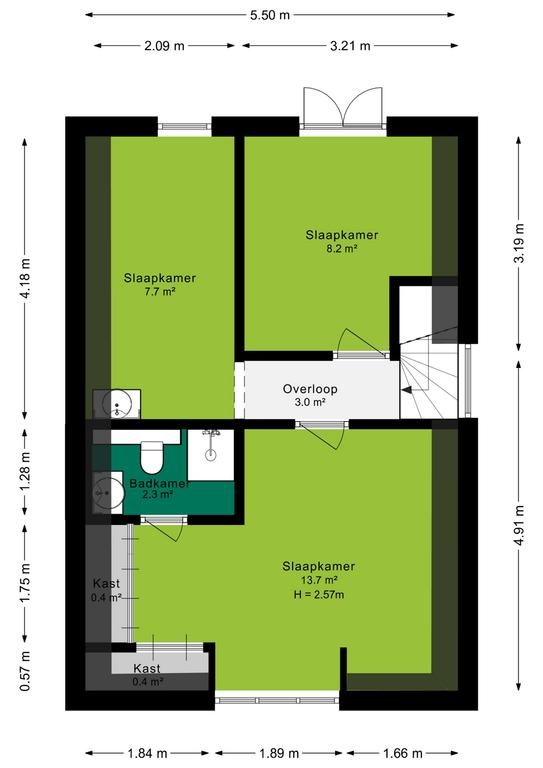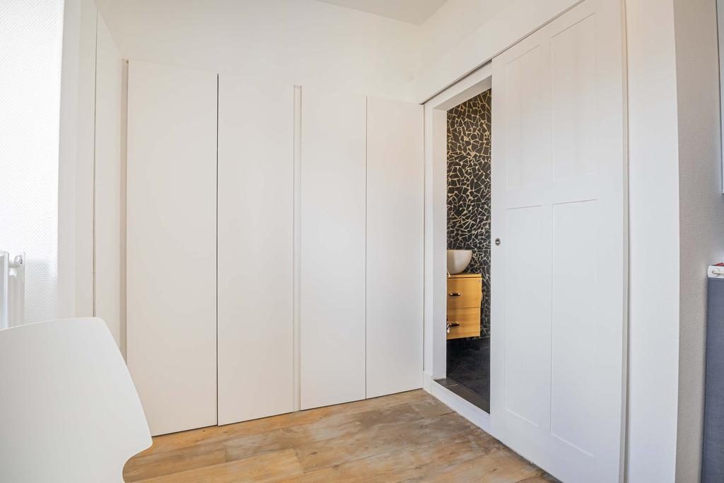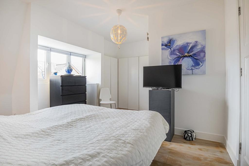 Via de stijlvolle open trap kom je op de eerste verdieping. Vanaf de overloop heb je toegang tot drie ruime slaapkamers. De slaapkamer aan de voorkant van de woning is extra praktisch en sfeervol met twee ingebouwde kasten én een directe verbinding naar de badkamer.