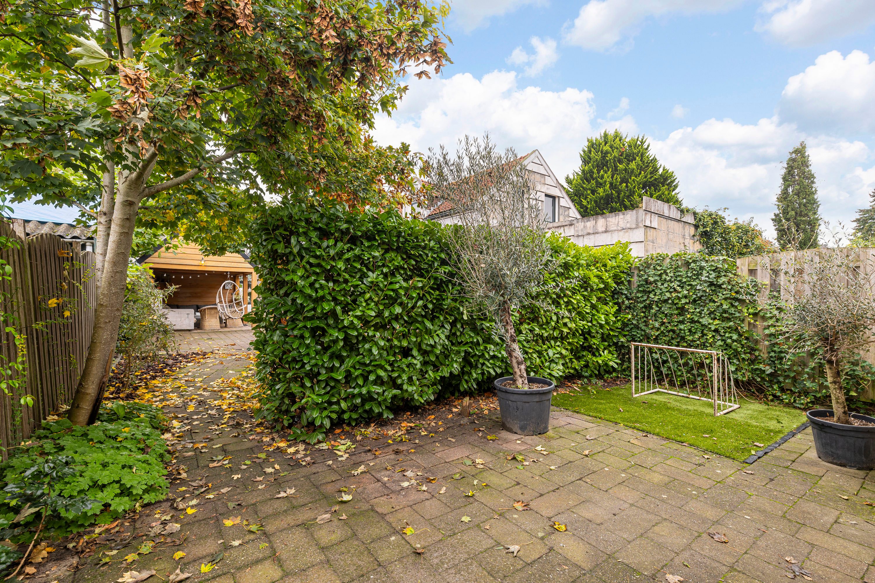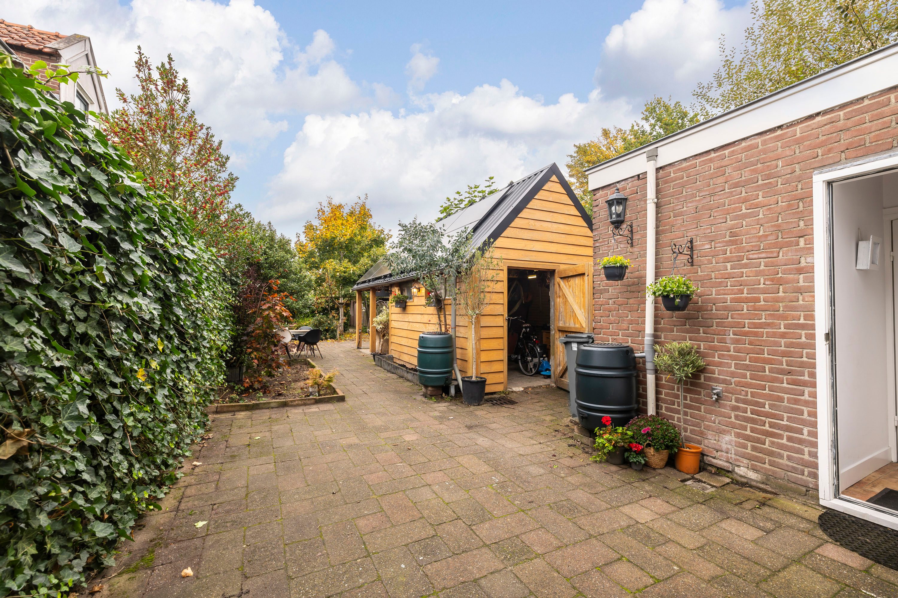 De ruime, opvallende achtertuin van 221 m² welke gelegen ligt op het westen biedt volop mogelijkheden voor meerdere zithoeken en een speelhoek voor de kinderen. Daarnaast is er een praktische berging van 11,7 m² aanwezig, ideaal voor het opbergen van gereedschap of fietsen. Aangrenzend aan de berging is er een veranda. De tuin is zowel via de woning zelf als via een aparte zijingang eenvoudig te bereiken. Ook is er een achteruitgang aan de parkeerplaats aan de Blekerij.