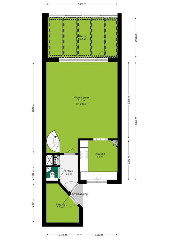 Woonkamer 31.5 m²