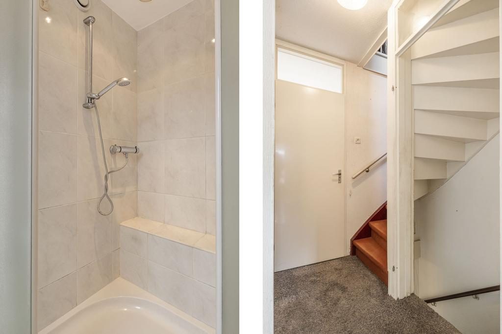 Op de eerste verdieping tref je drie prettig ingedeelde slaapkamers met voldoende daglicht dankzij de raampartijen. De badkamer heeft alle essentiële voorzieningen en kan met wat liefde veranderd worden in een ontspannende plek.