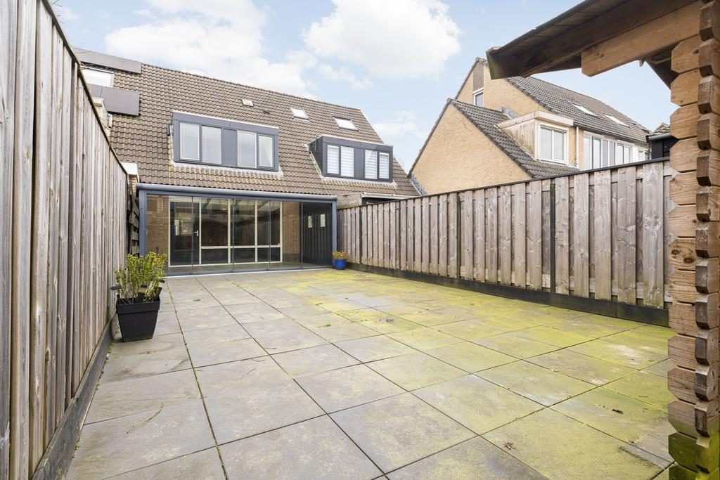 Een groot pluspunt van dit huis is de verrassend diepe en zonnige achtertuin op het westen, waar je tot in de late uurtjes kunt genieten van de zon. De bestaande aangebouwde overkapping met glazen schuifdeuren biedt een prachtige overgang van binnen naar buiten en zorgt voor een fijne leefruimte in elk seizoen.