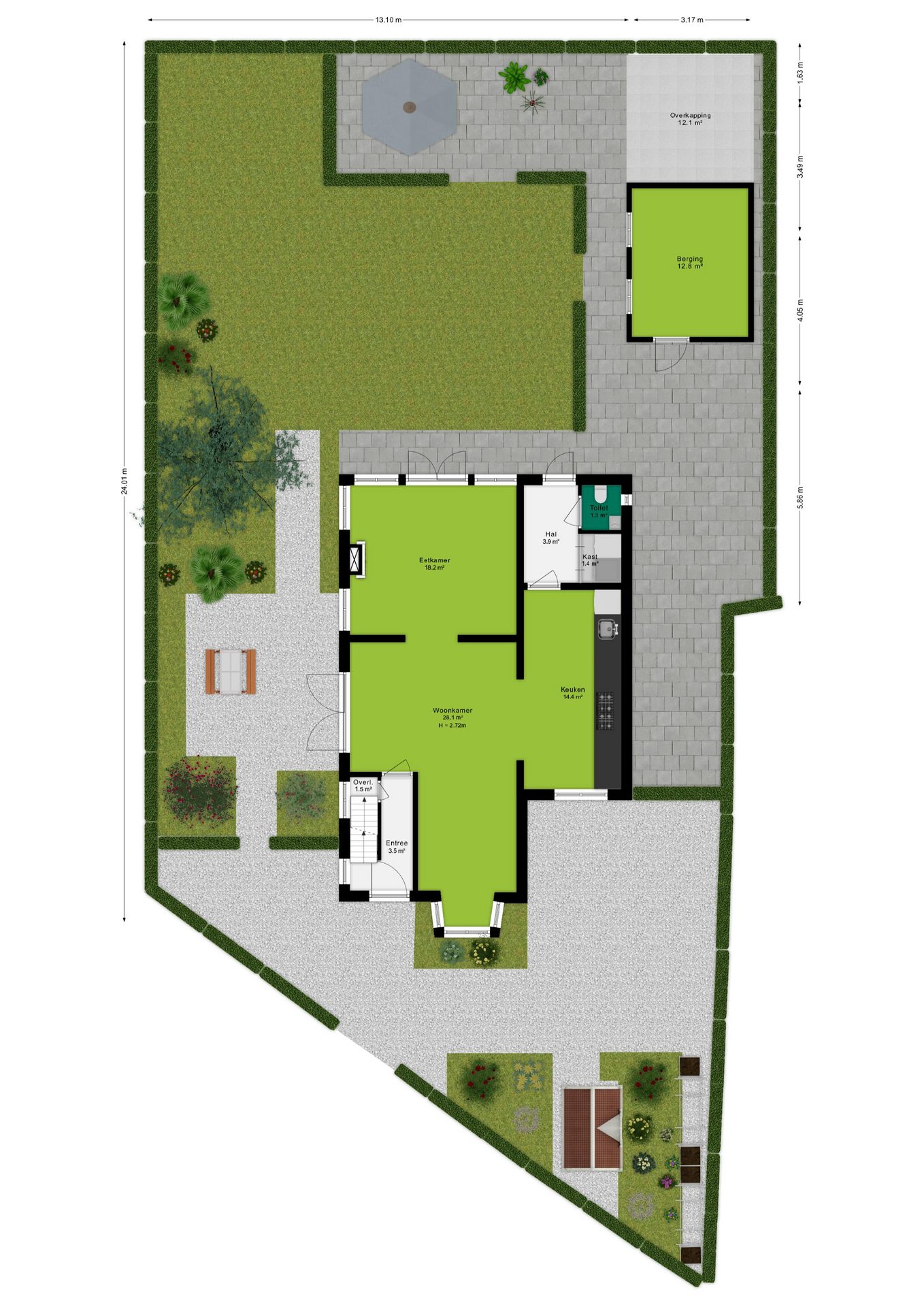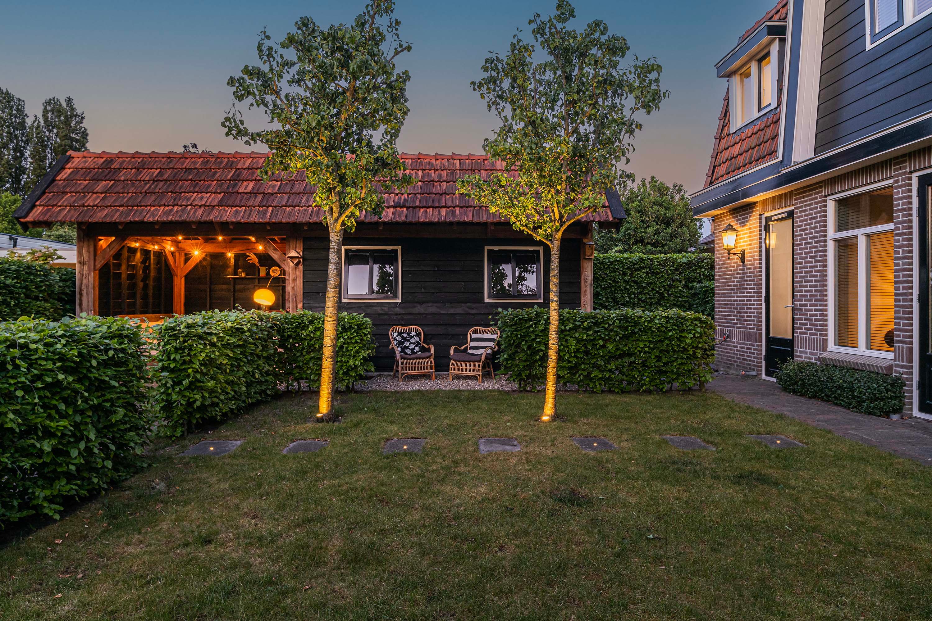 De woning staat op een perceel van 467 m² en wordt omringd door een mooie, ruime tuin. Er zijn meerdere gezellige zitplekjes waar je kunt genieten van de zon, zowel in de achtertuin als aan de zijkanten van het huis. In de achtertuin vind je een fijne veranda en een praktische berging met genoeg opbergruimte. Het is de perfecte plek om tot rust te komen en te genieten van het mooie weer!