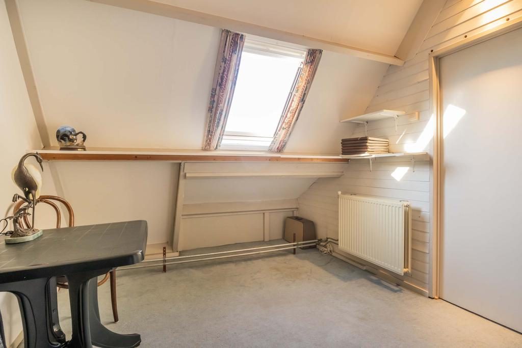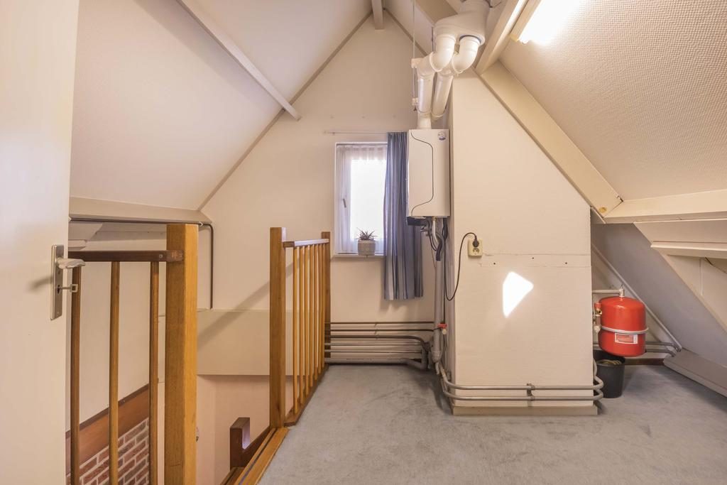 Via een vaste trap bereik je de zolderverdieping. Op de overloop is de CV-ketel (2020) geplaatst. Daarnaast vind je hier nog een extra (slaap)kamer, voorzien van een dakraam dat zorgt voor aangename lichtinval. Deze ruimte biedt veelzijdige mogelijkheden, of je nu een extra slaapkamer, een hobbyruimte of opslag nodig hebt.