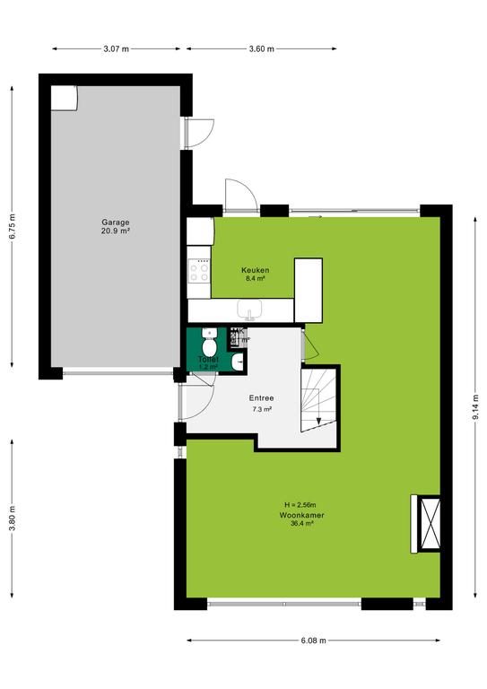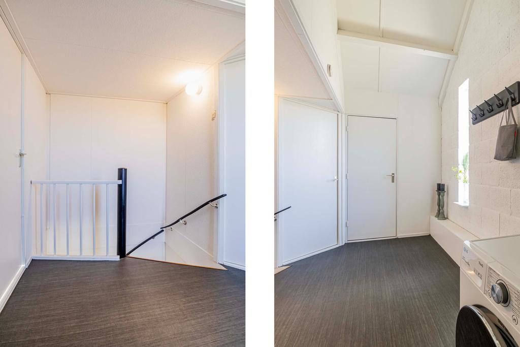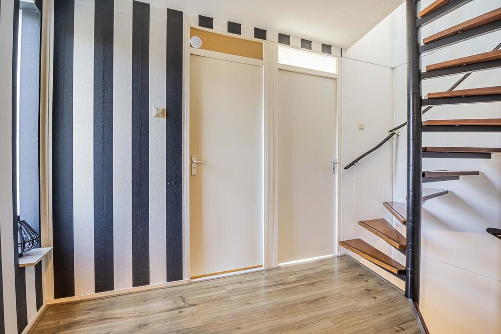 Vanuit de schuifpui en de deur is er toegang naar de achtertuin. Via de entree hal, met meterkast en toilet, bereik je de trapopgang naar de verdieping.
