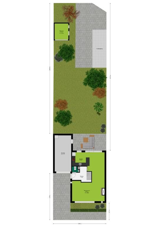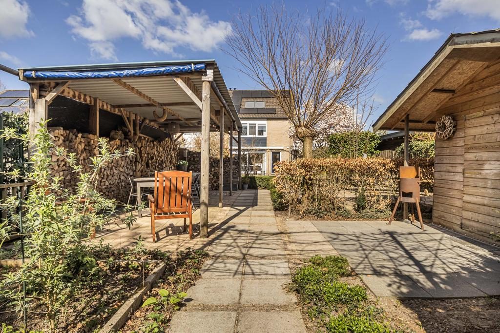Wat een heerlijke diepe tuin! Hier sta je echt versteld van. De tuin is ook nog eens gelegen op het zonnige zuiden en door de indeling is er altijd wel een plekje in de zon of in de schaduw te vinden. De tuin biedt ruimte genoeg voor een gezellig terras, speelplekjes of groenstroken. Hier kom je helemaal tot rust en kan je echt van het buitenleven genieten. Met de beschikking van een overkapping, houten berging en een stenen garage is er genoeg ruimte voor tuingereedschap en het opbergen van de tuinkussens.