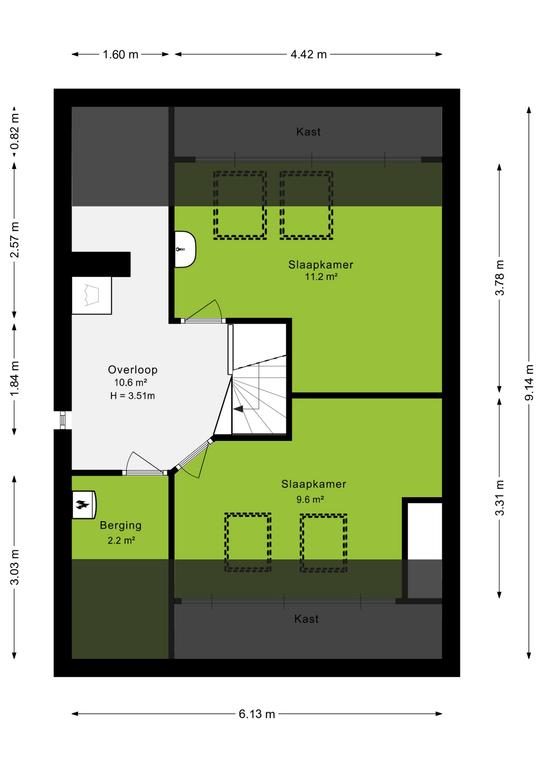 Via de vaste trap is de 2e verdieping bereikbaar. Deze verdieping telt de 4e en 5e slaapkamer. De kamers hebben een afmeting van circa 11m² en 10m² en zijn voorzien van een nette vloer en voldoende lichtinval door de aanwezige dakramen. Door deze ruime indeling kan de 2e verdieping multifunctioneel gebruikt worden, te denken valt aan een werkruimte, sportplek of slaapkamer. Verder bevindt zich op de ruime overloop de witgoedaansluiting en is hier ook veel opbergruimte.