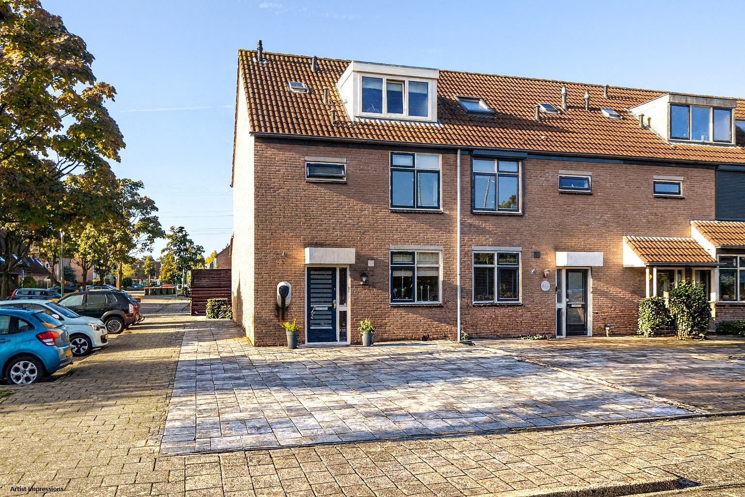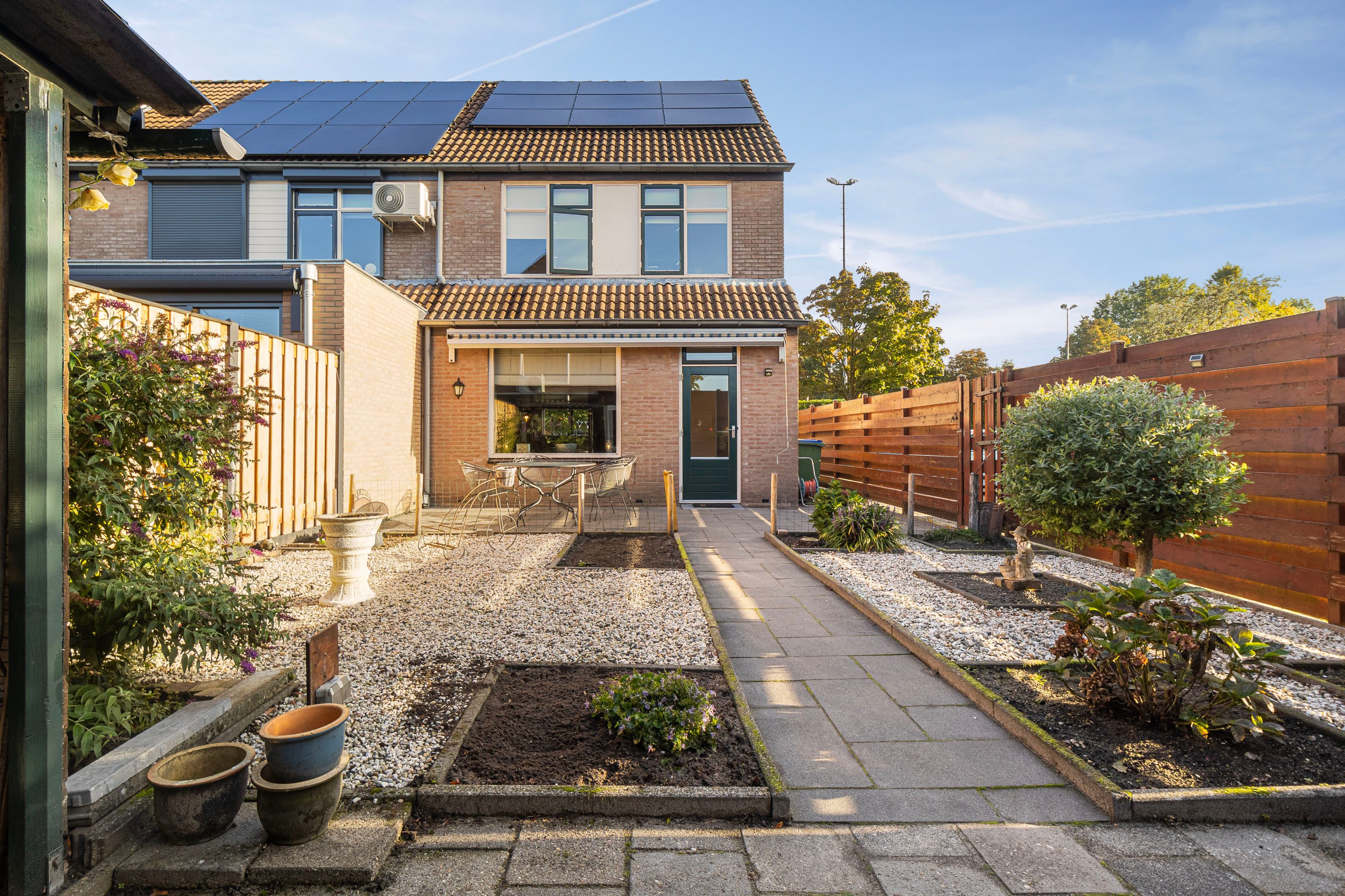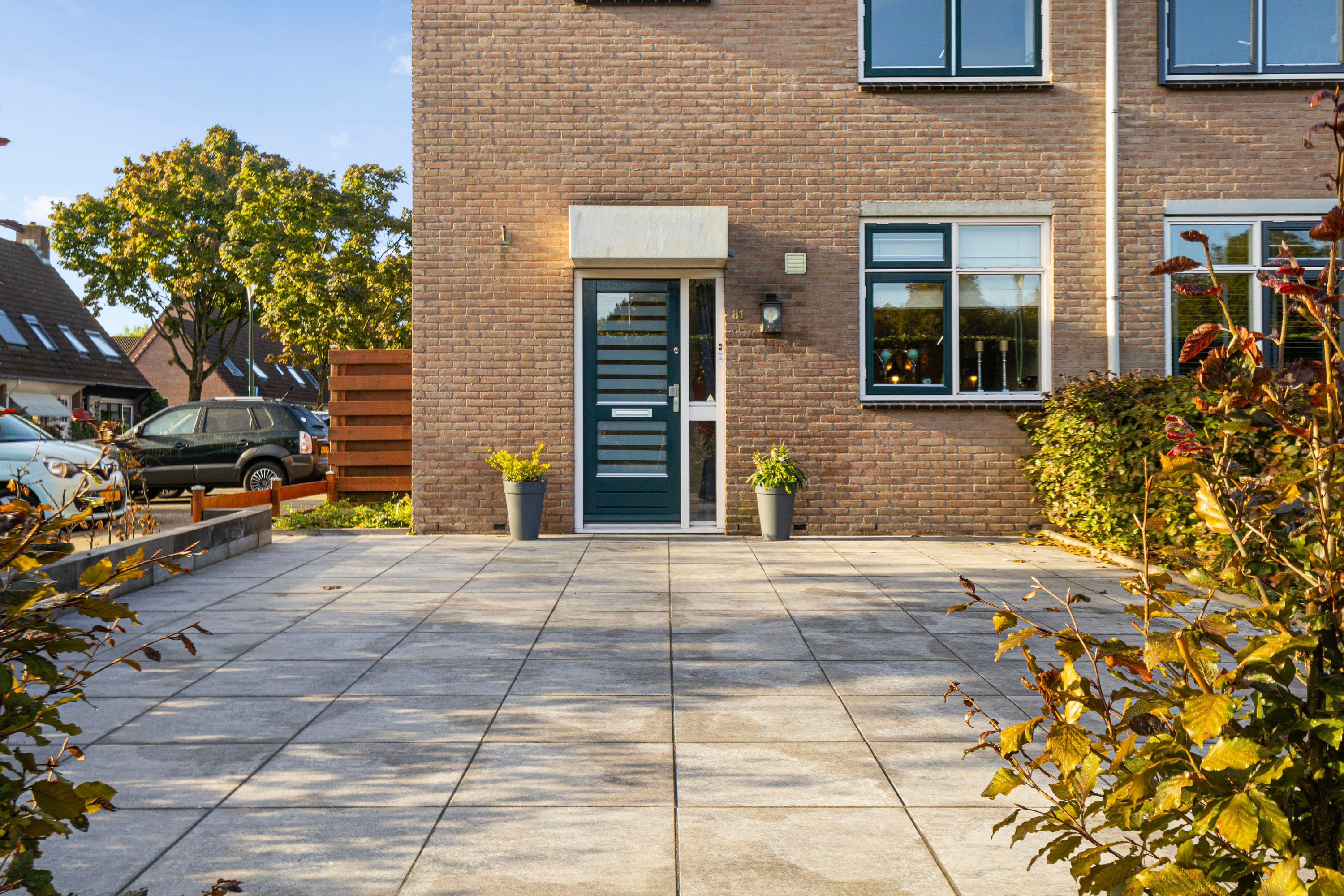 De voortuin is tevens geschikt voor het parkeren van 2 auto's op eigen terrein. Ideaal mocht je een elektrische auto thuis willen laden.