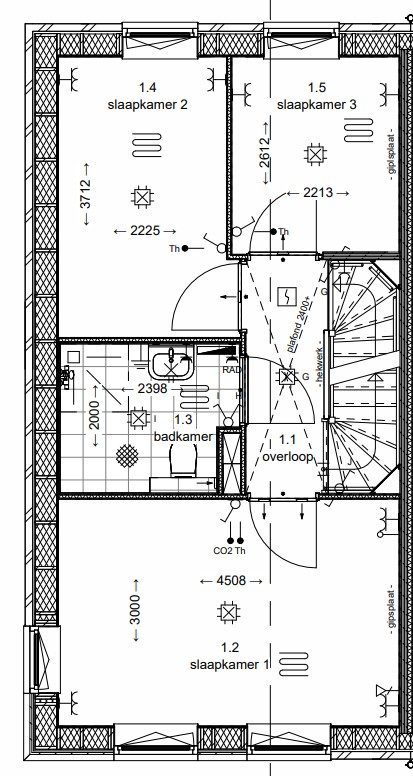 Ruime overloop met toegang tot drie volwaardige slaapkamers en de complete badkamer. De badkamer is voorzien van modern tegelwerk en sanitair, met o.a. een regendouche, toilet en wastafel.