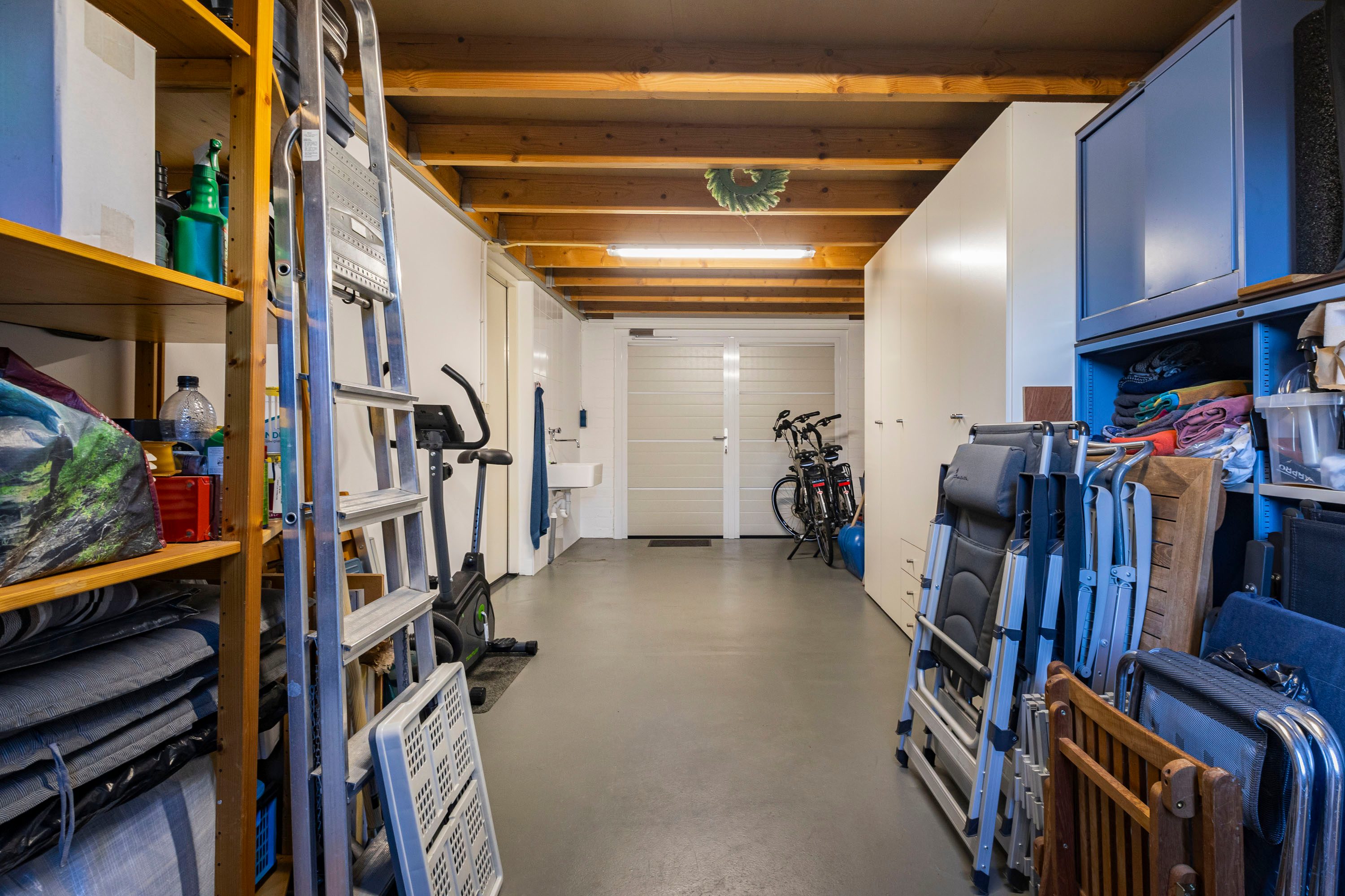 - Grote (23 m2) inpandig bereikbare garage met uitstortgootsteen en Hormann geïsoleerde dubbele deuren.