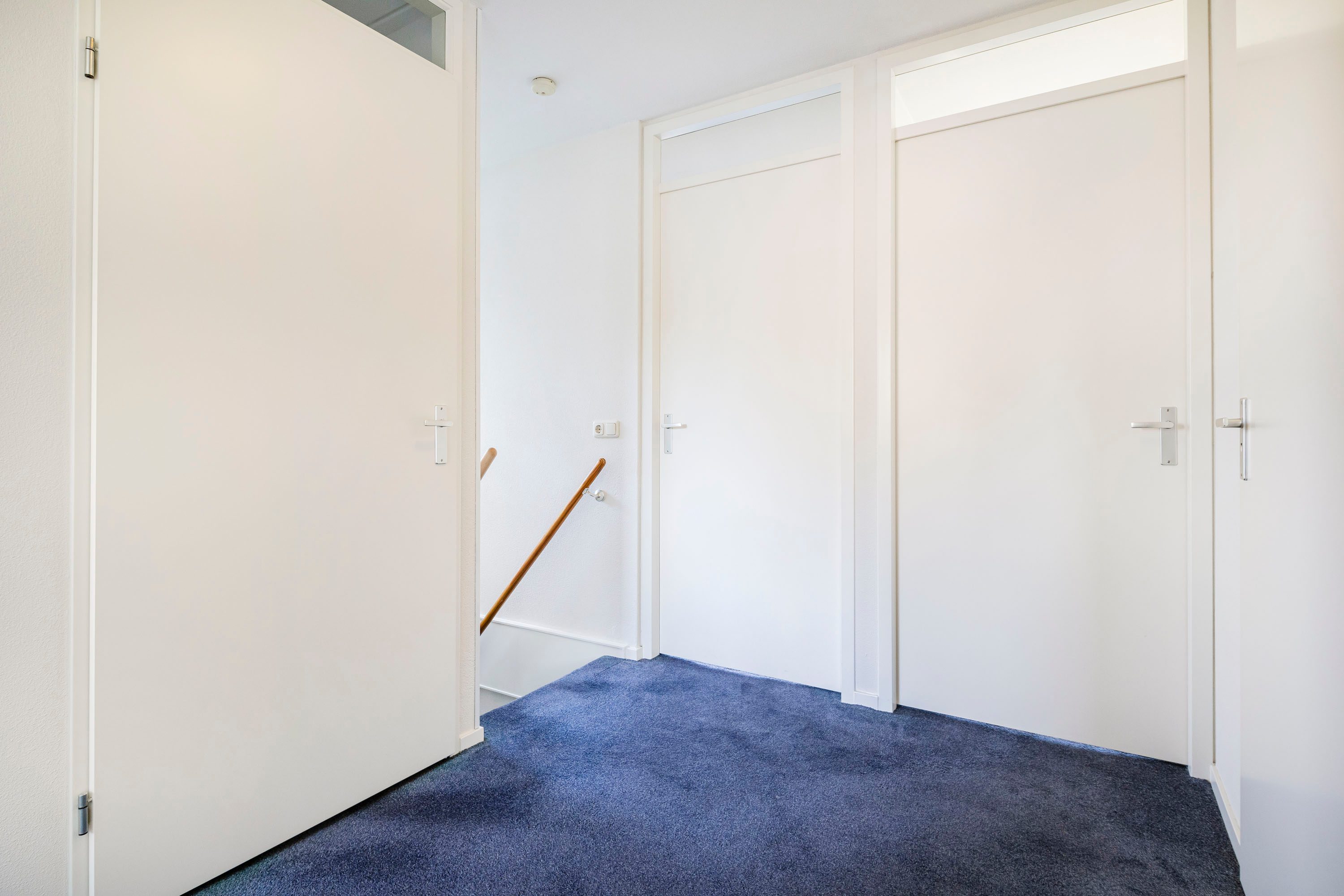 Via de vaste trap kom je bij de ruime overloop met daglichtinval. Vanaf hier rechtstreeks toegang tot alle ruimtes. Zoals de vier mooie slaapkamers. Twee aan de voorzijde van de woning en twee (de grootste) aan de achterzijde van het woonhuis. Voorts is er een ruime badkamer welke volledig is betegeld en voorzien van een ligbad, wastafel in meubel en een spiegelkast, separate douchecabine en een toilet. Verder is er op de deze verdieping nog een ruime inloopkast met de aansluiting voor de wasmachine en wasdroger en tevens is hier de opstelling van de HR cv-installatie en mechanische ventilatie-unit. De gehele bovenverdieping is voorzien van een zachte, in blauwe kleurstelling uitgevoerde tapijtvloer.