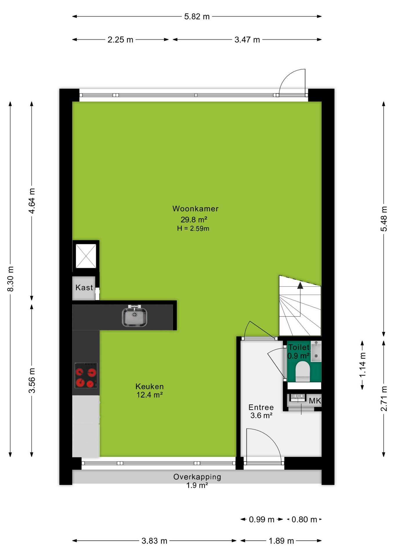 Deze informatie is door ons met de nodige zorgvuldigheid samengesteld. Onzerzijds wordt echter geen enkele aansprakelijkheid aanvaard voor enige onvolledigheid, onjuistheid of anderszins, dan wel de gevolgen daarvan. Alle opgegeven maten en oppervlakten zijn indicatief.