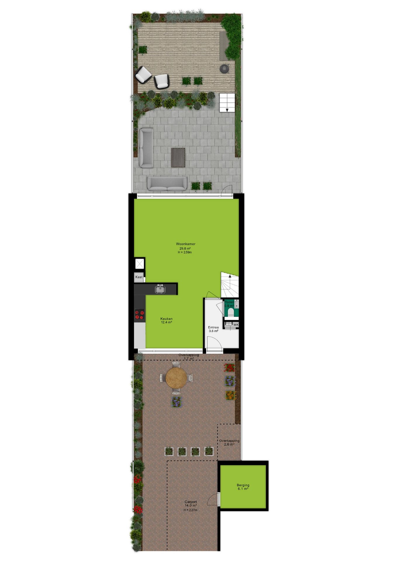 • Eigen oprit met carport